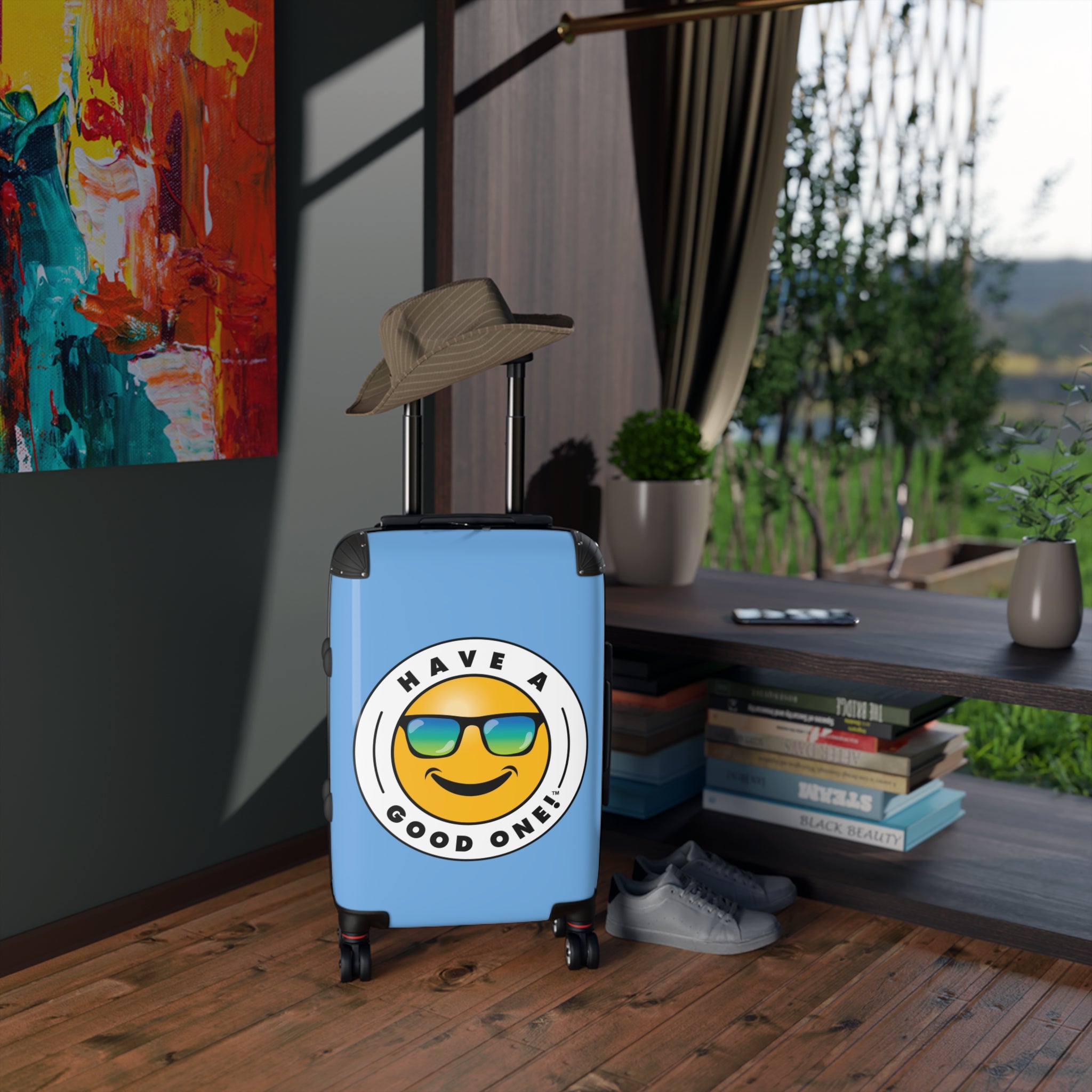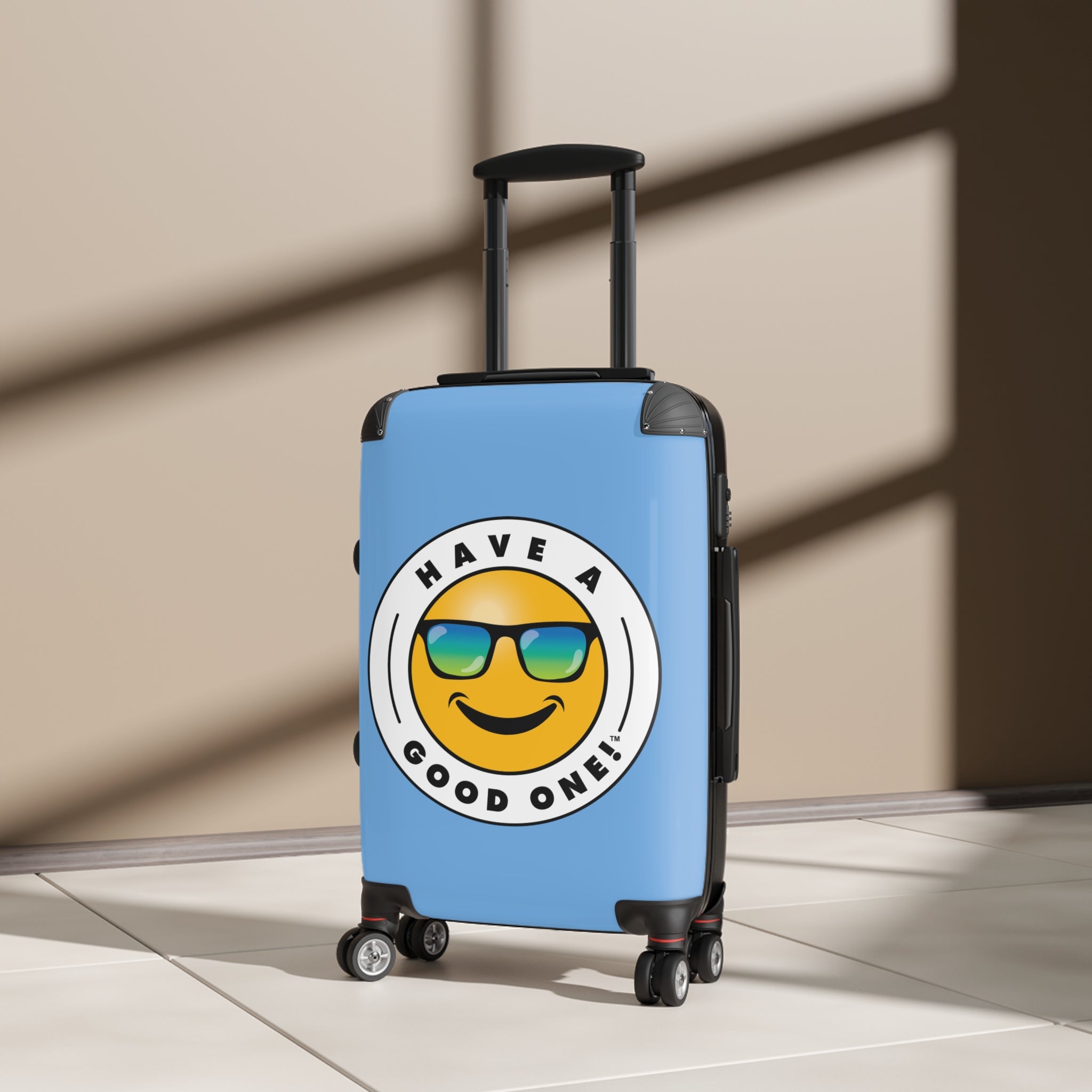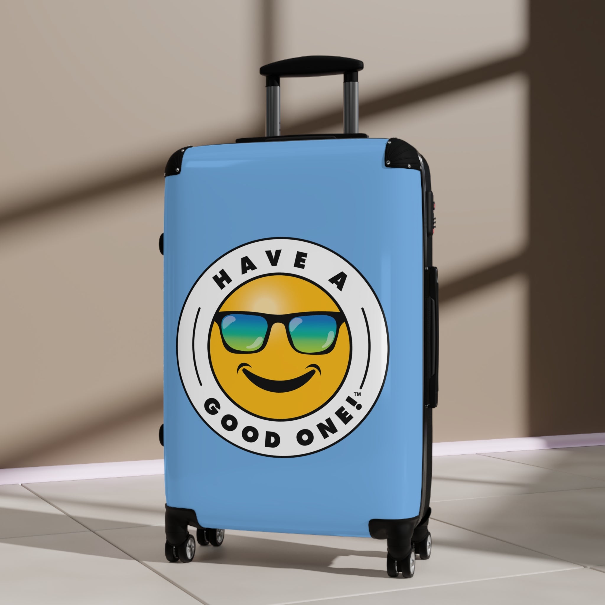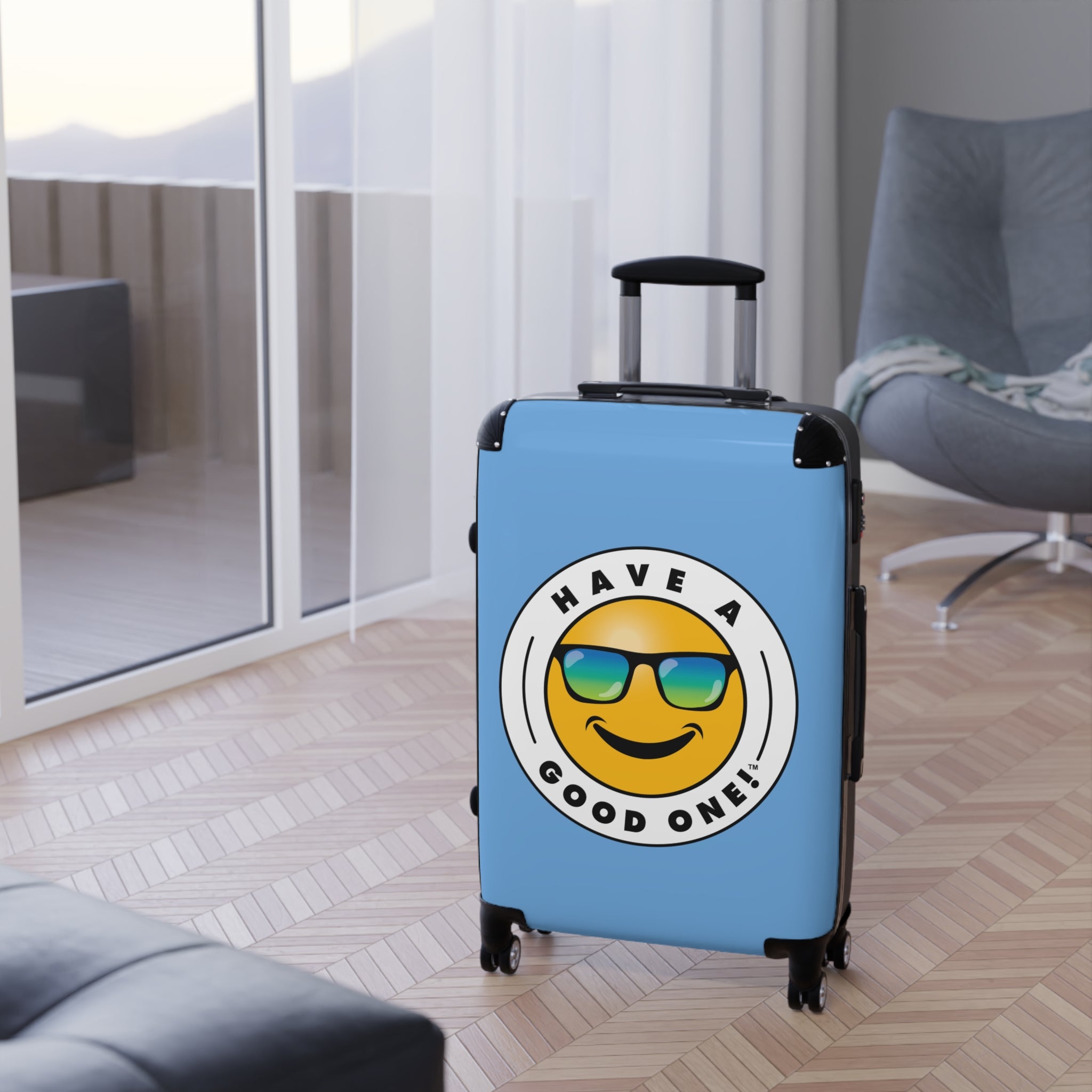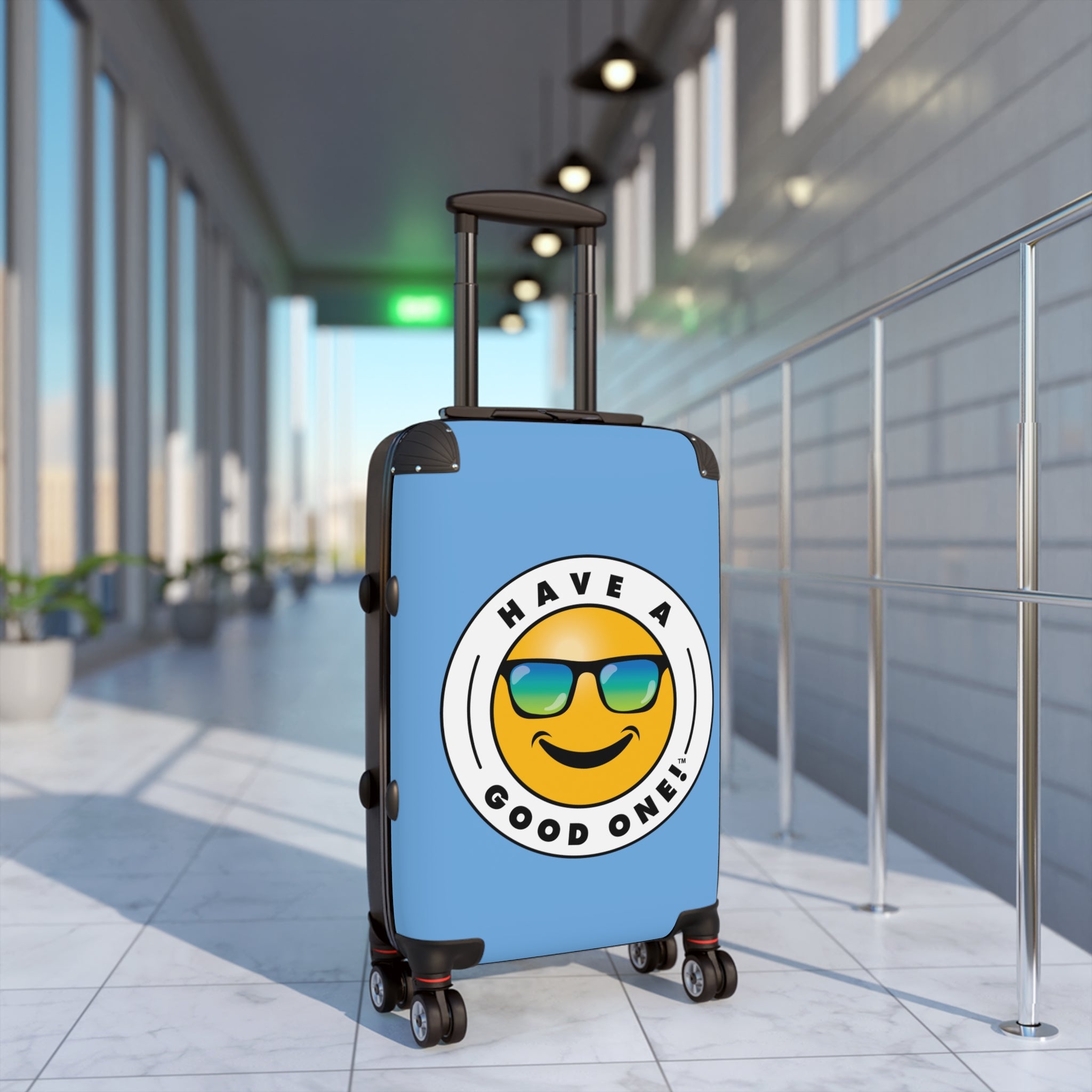 Grab N’ Go Have A Good One! Suitcases - Light Blue Color With Blue Green Have A Good One! Logo
