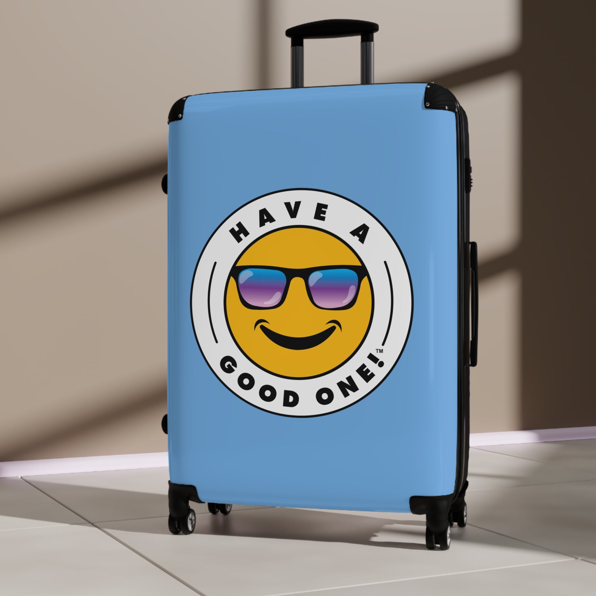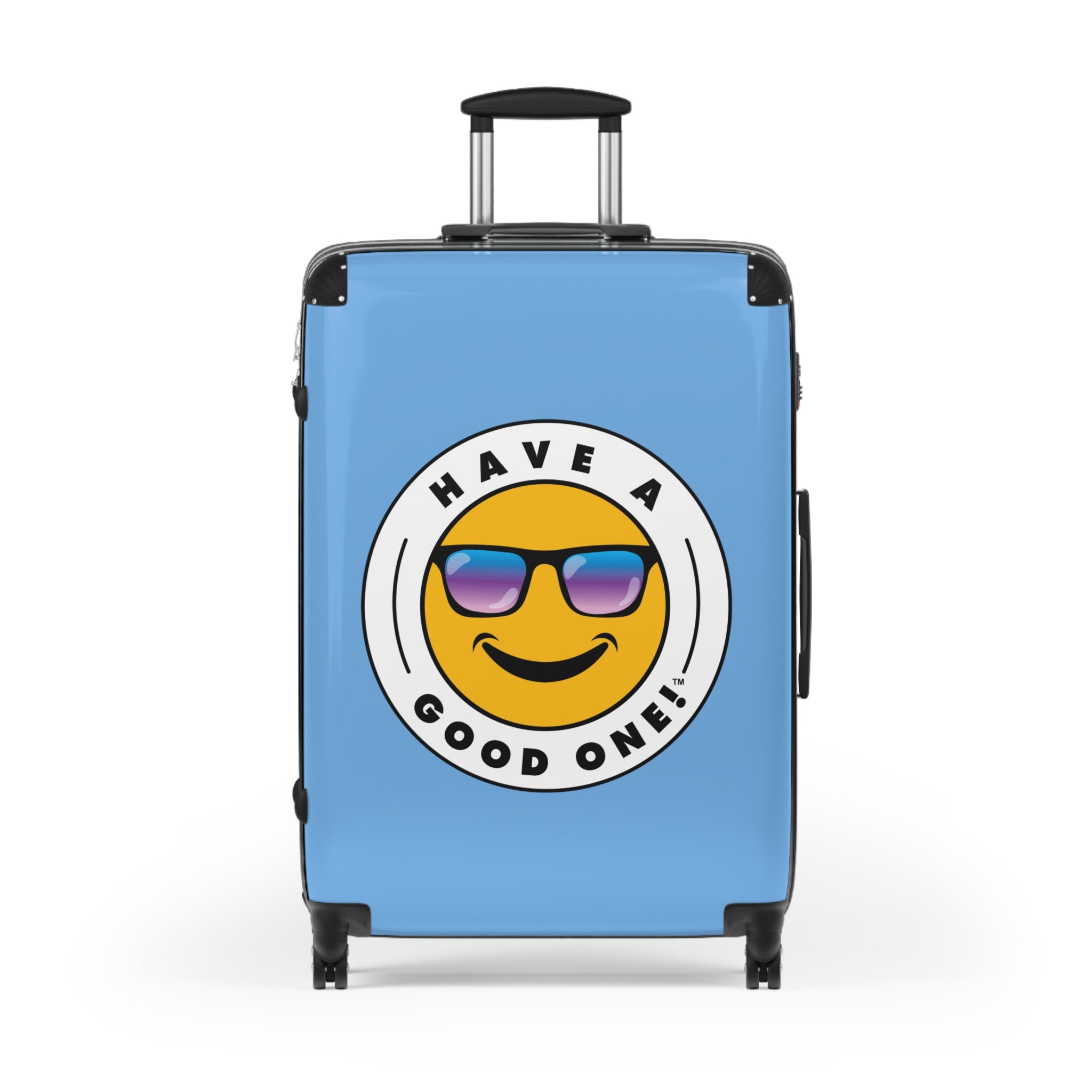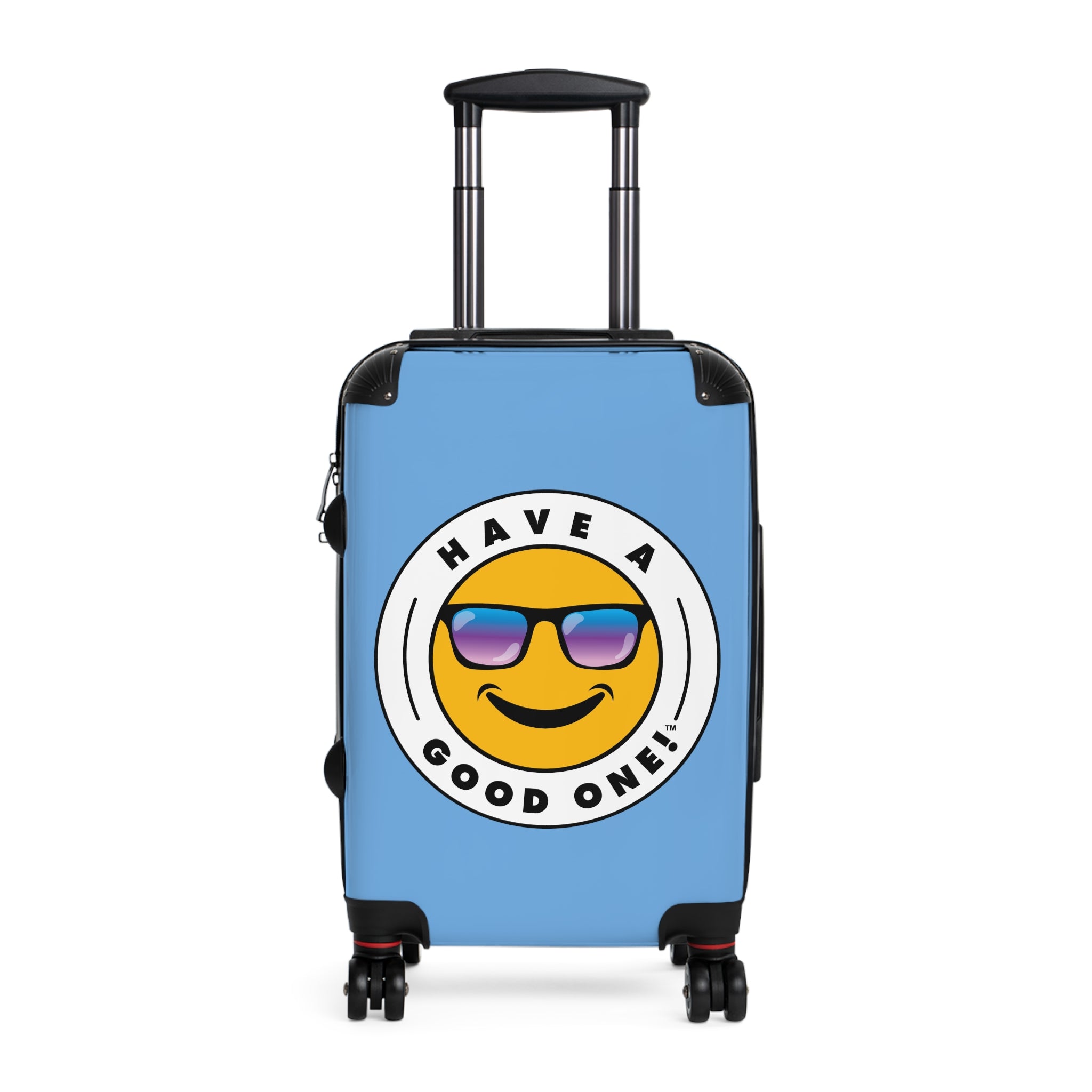 Grab N’ Go Have A Good One suitcases for those who want to have fun on their trip from the moment they start packing! Traveling is best done in style and our suitcases will help anyone do exactly that. Available in three different sizes to accommodate your needs. They come with 360 degree swivel wheels, a safety lock and an adjustable handle for carefree movement through airports and cities. There are inner pockets that are perfect for smaller items. Made from durable and lightweight materials that provide impact, scratch and temperature resistance. You can even extend the storage space by opening the top of the suitcase. This luggage will make any traveler smile from ear to ear as you head off on your vacation. We know you will Have A Good One wherever your trip takes you!