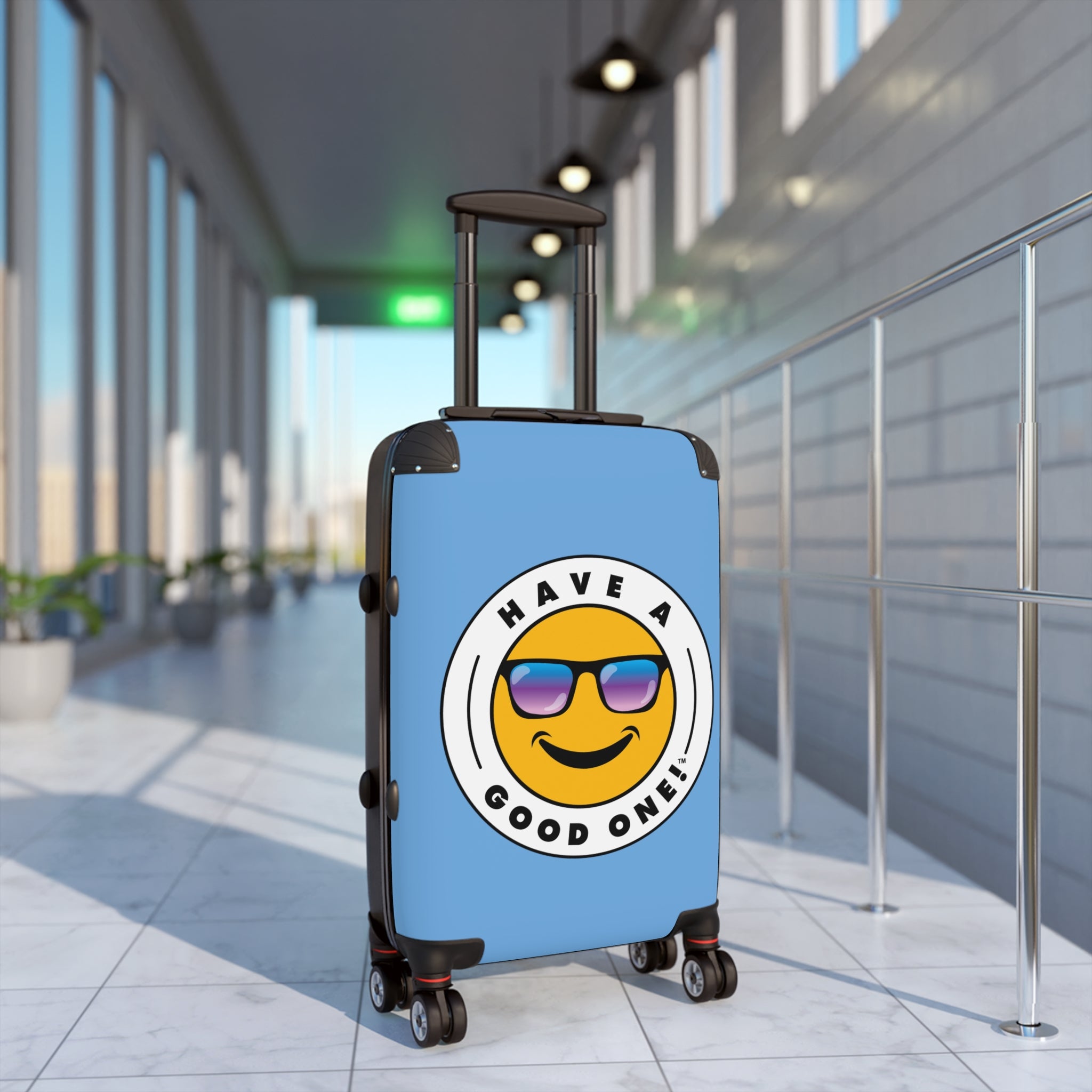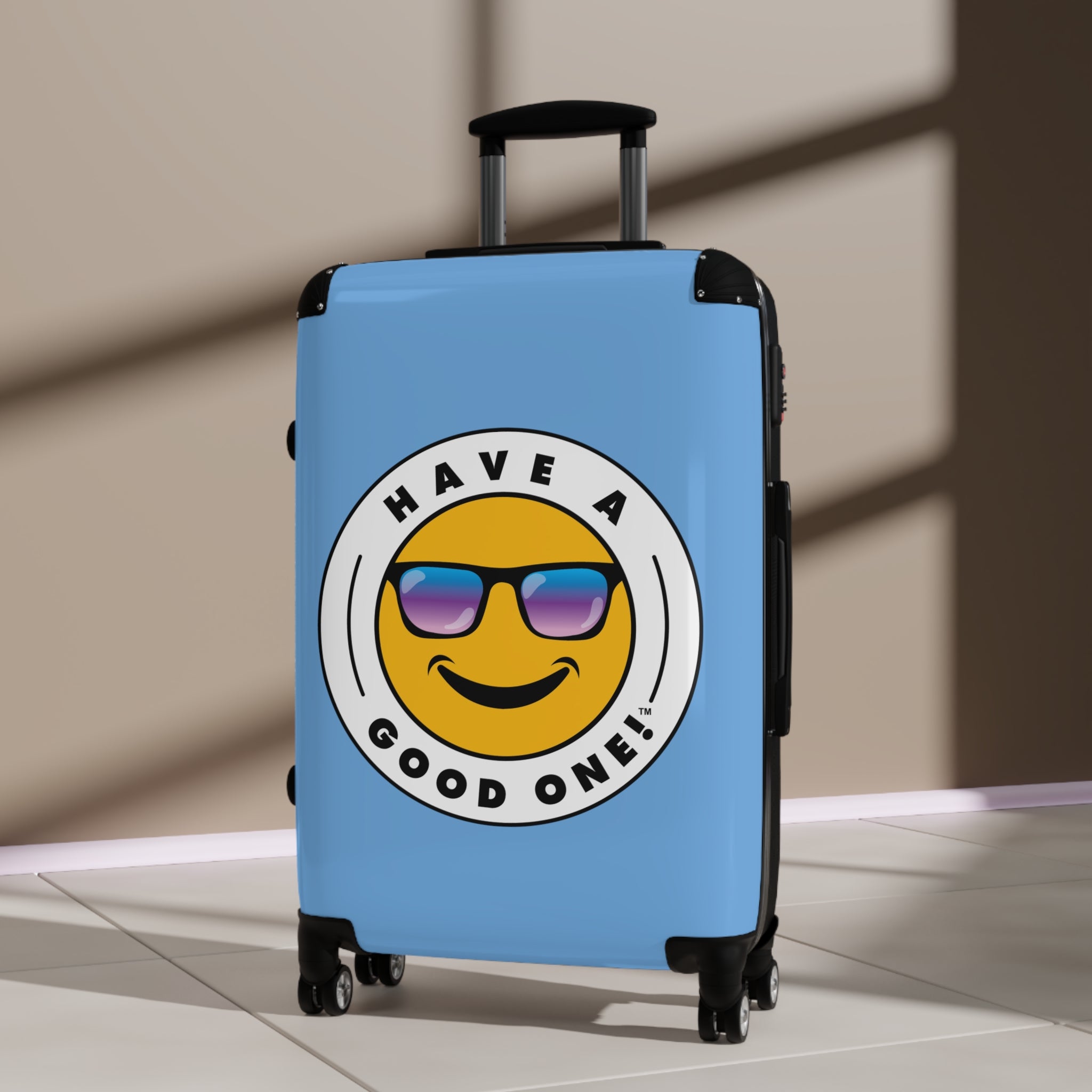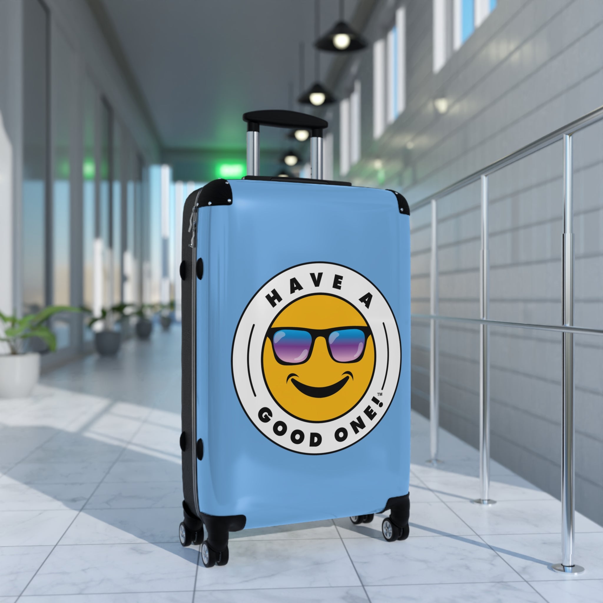 Grab N’ Go Have A Good One suitcases for those who want to have fun on their trip from the moment they start packing! Traveling is best done in style and our suitcases will help anyone do exactly that. Available in three different sizes to accommodate your needs. They come with 360 degree swivel wheels, a safety lock and an adjustable handle for carefree movement through airports and cities. There are inner pockets that are perfect for smaller items. Made from durable and lightweight materials that provide impact, scratch and temperature resistance. You can even extend the storage space by opening the top of the suitcase. This luggage will make any traveler smile from ear to ear as you head off on your vacation. We know you will Have A Good One wherever your trip takes you!