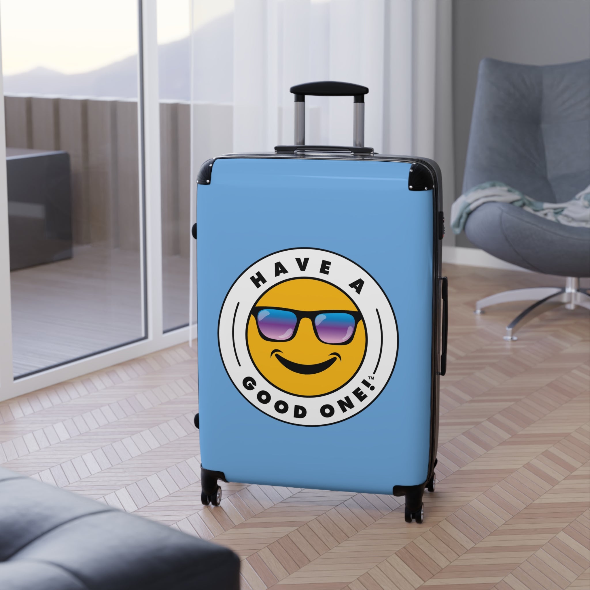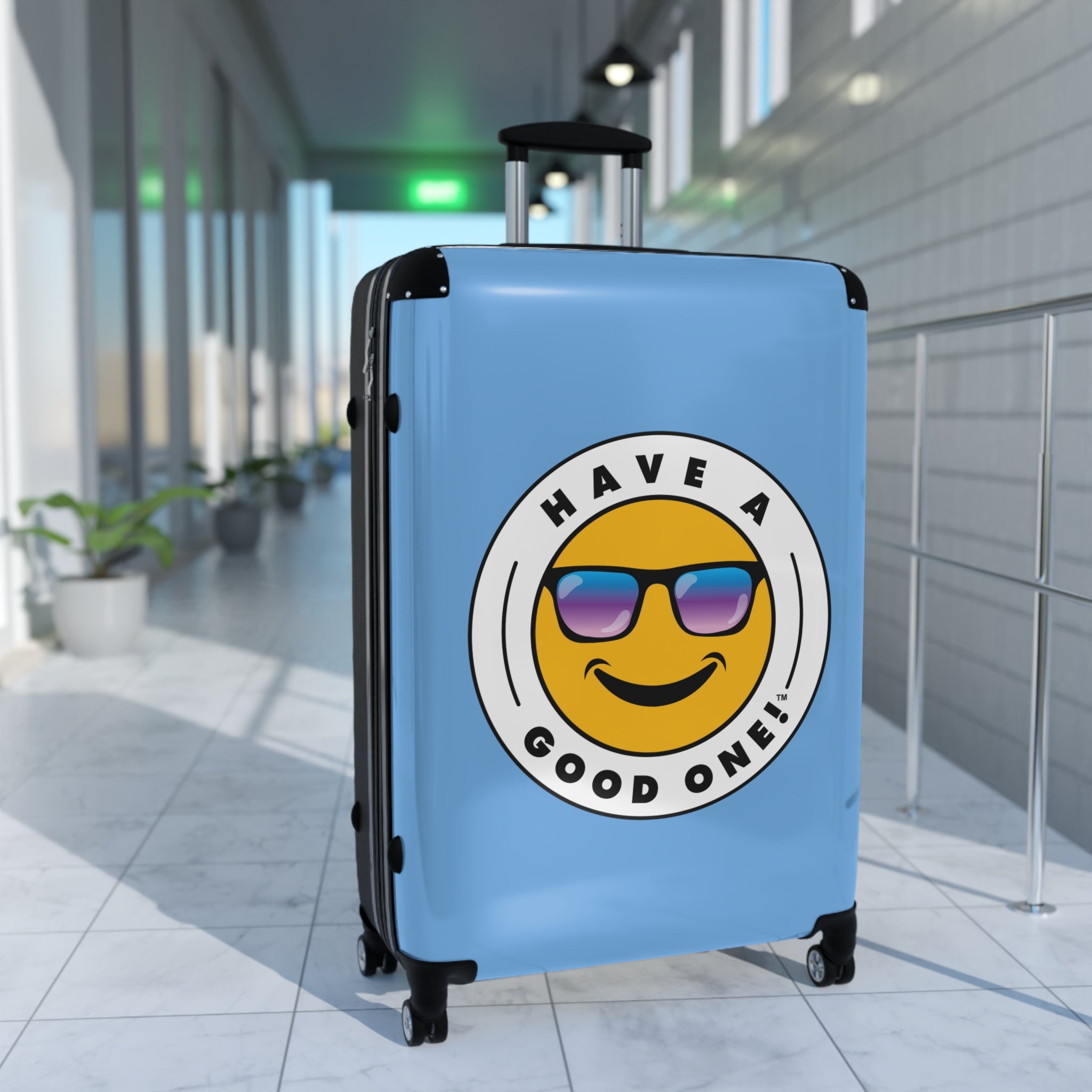 Grab N’ Go Have A Good One! Suitcases - Light Blue Color With Blue Purple Have A Good One! Logo