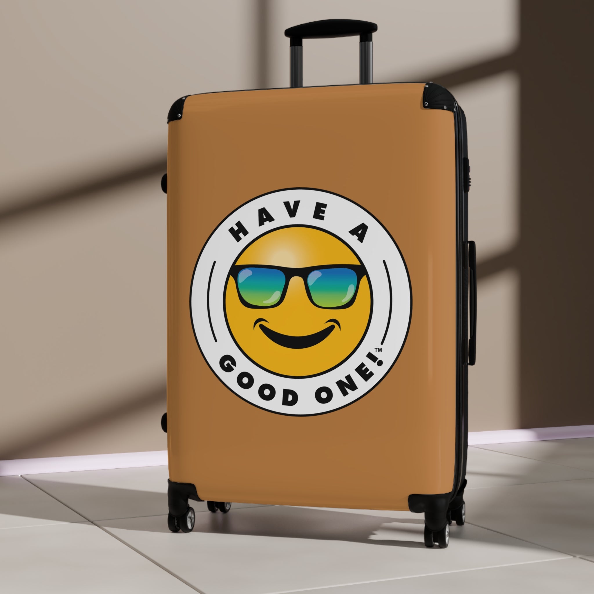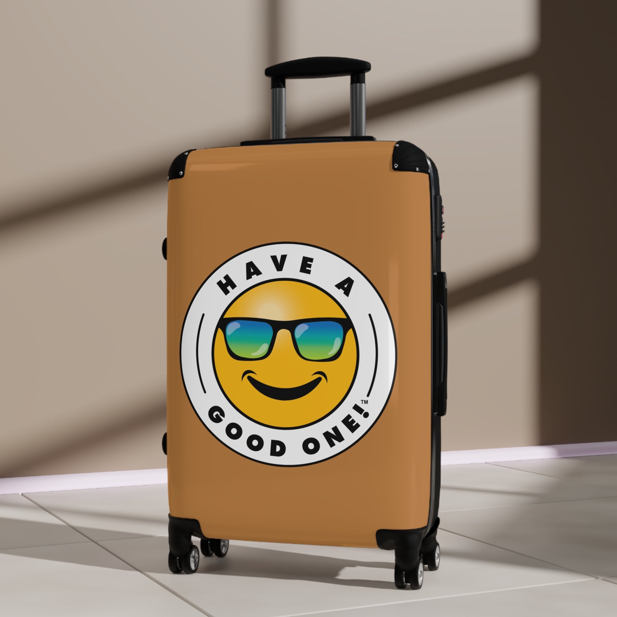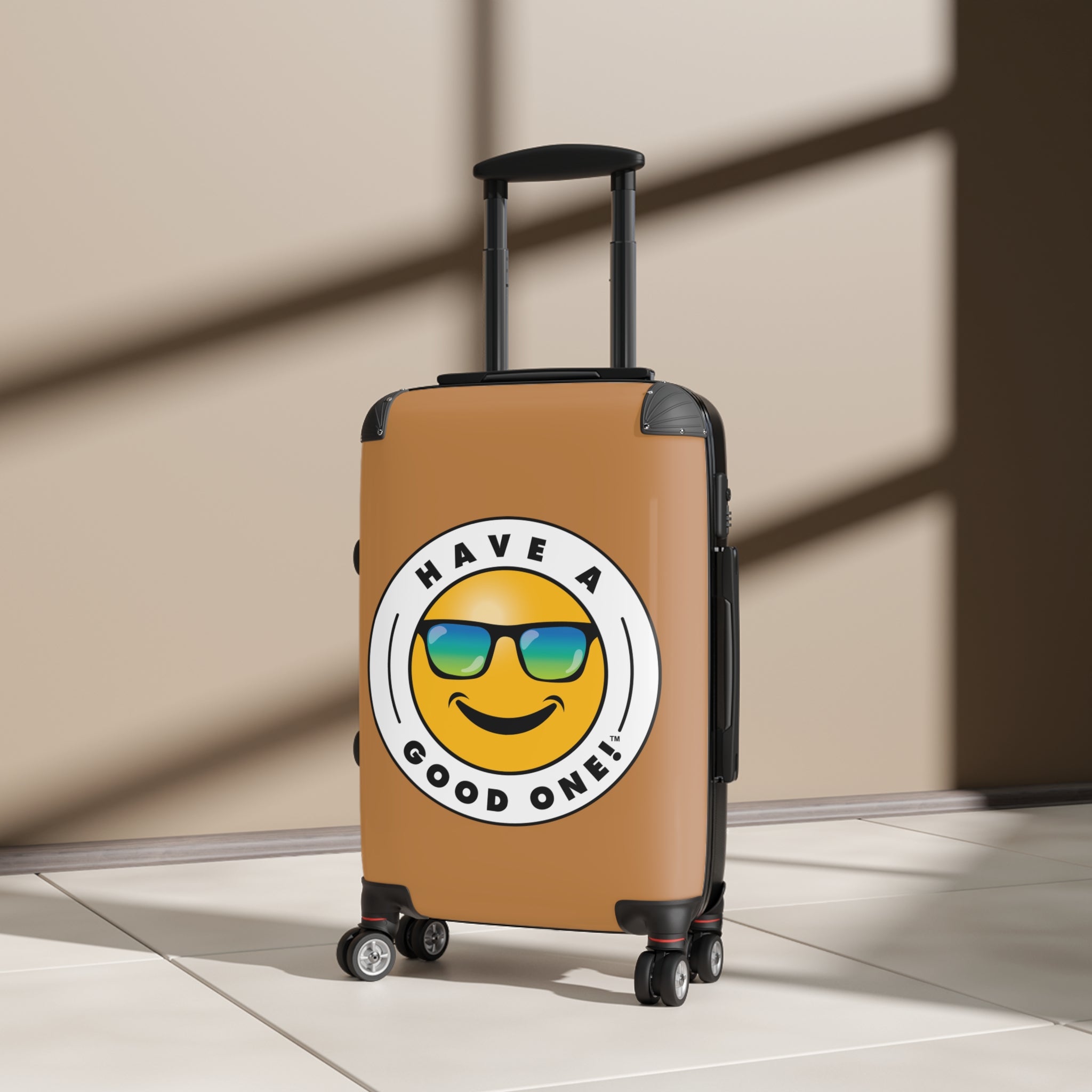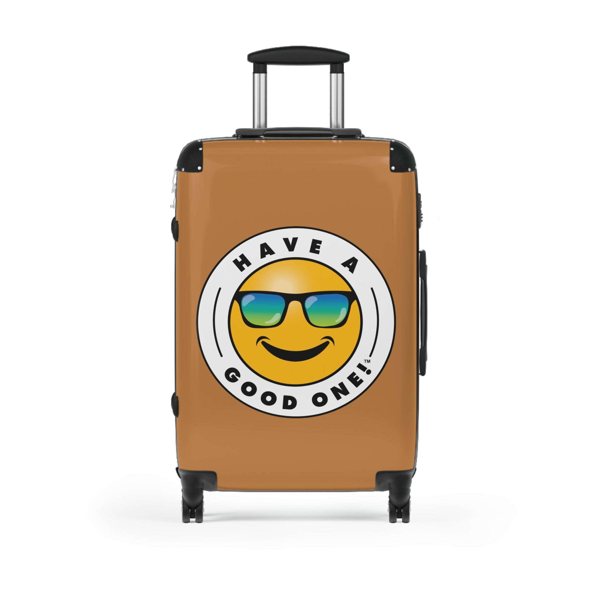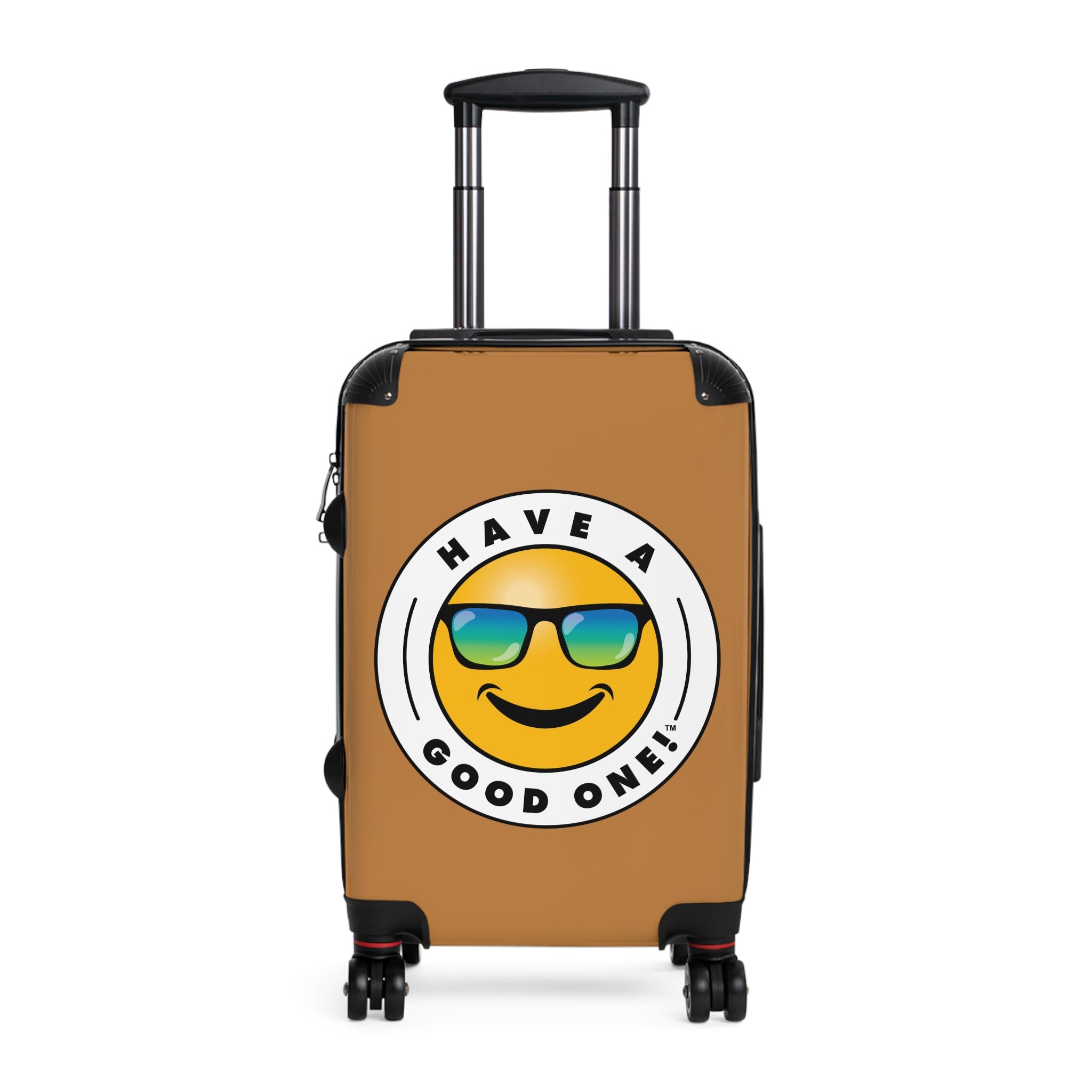 Grab N’ Go Have A Good One! Suitcases - Light Brown Color With Blue Green Have A Good One! Logo