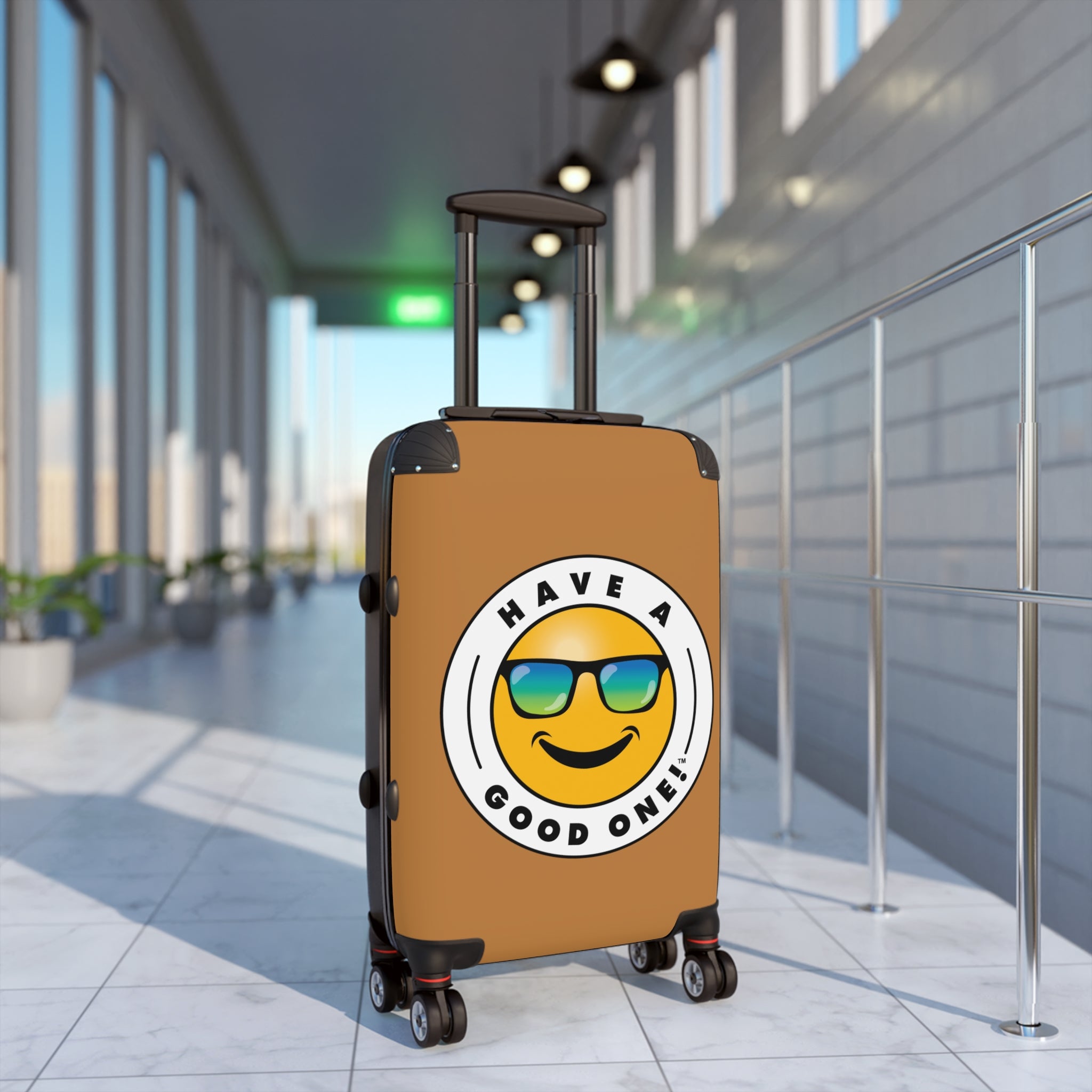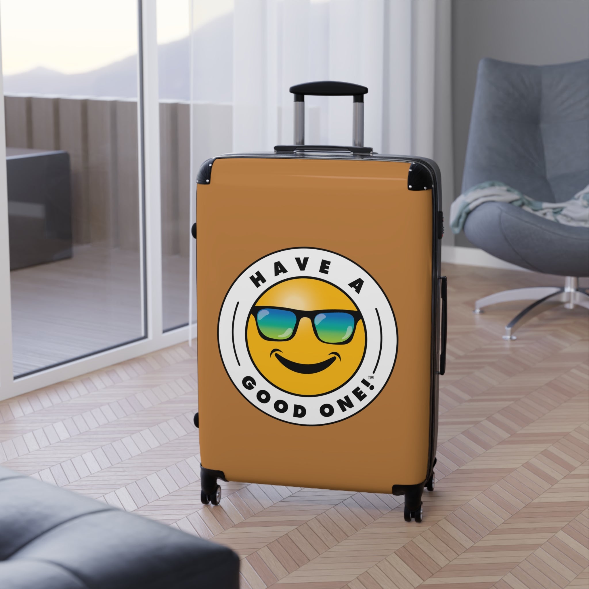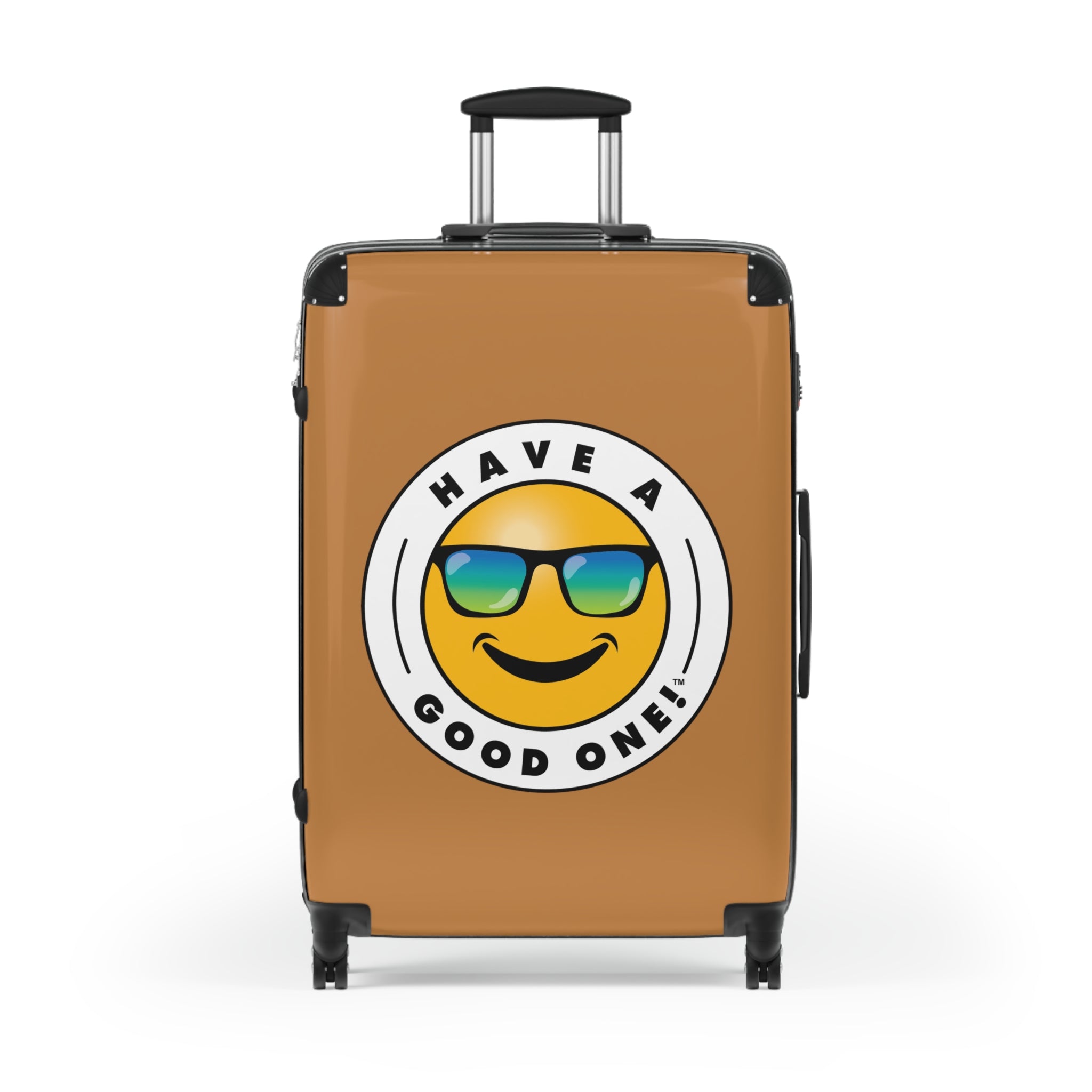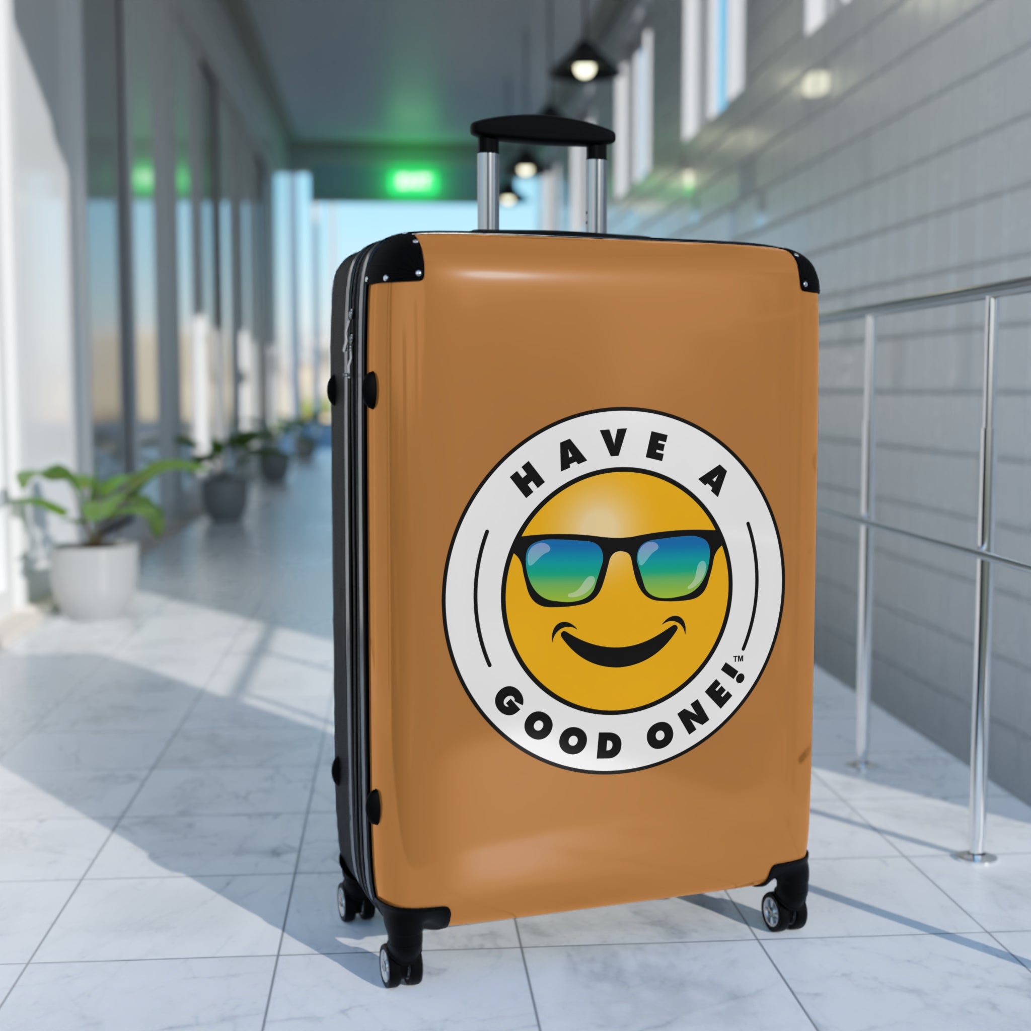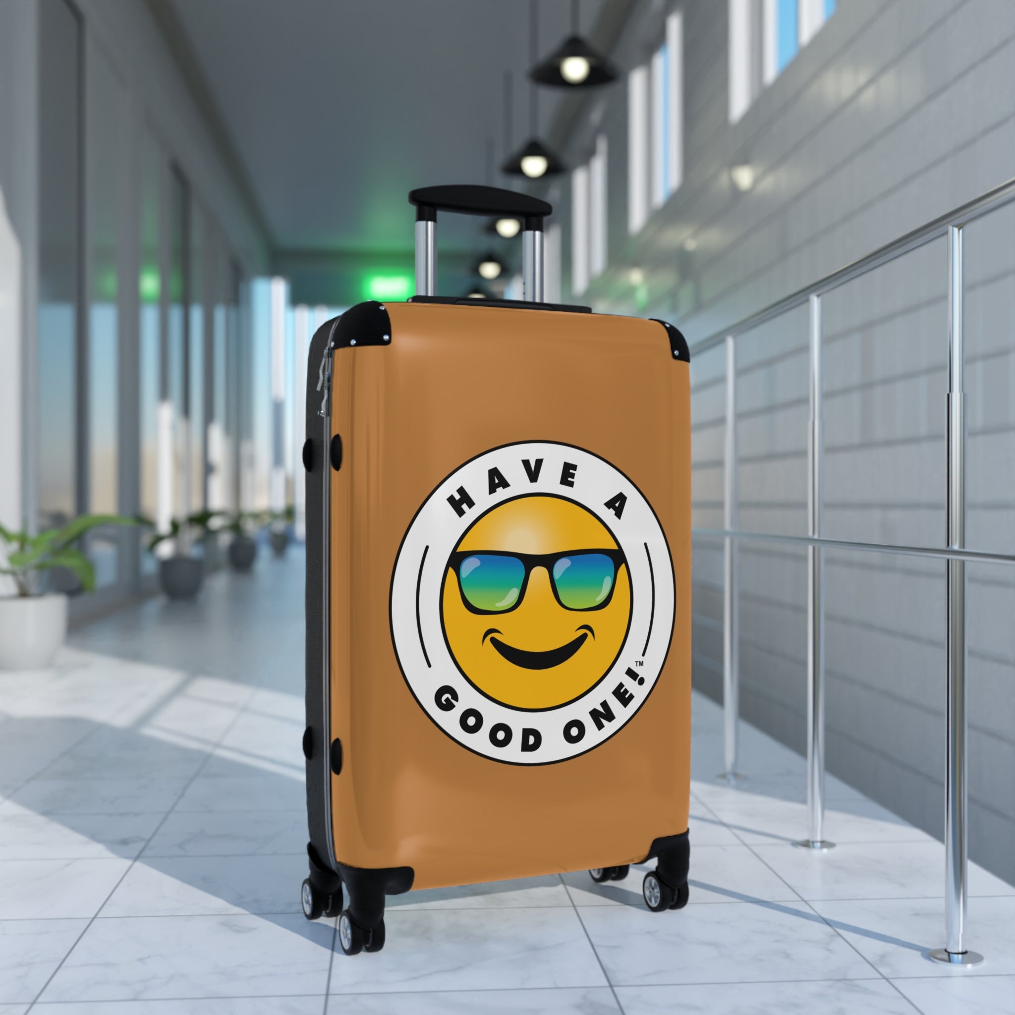 Grab N’ Go Have A Good One! Suitcases - Light Brown Color With Blue Green Have A Good One! Logo