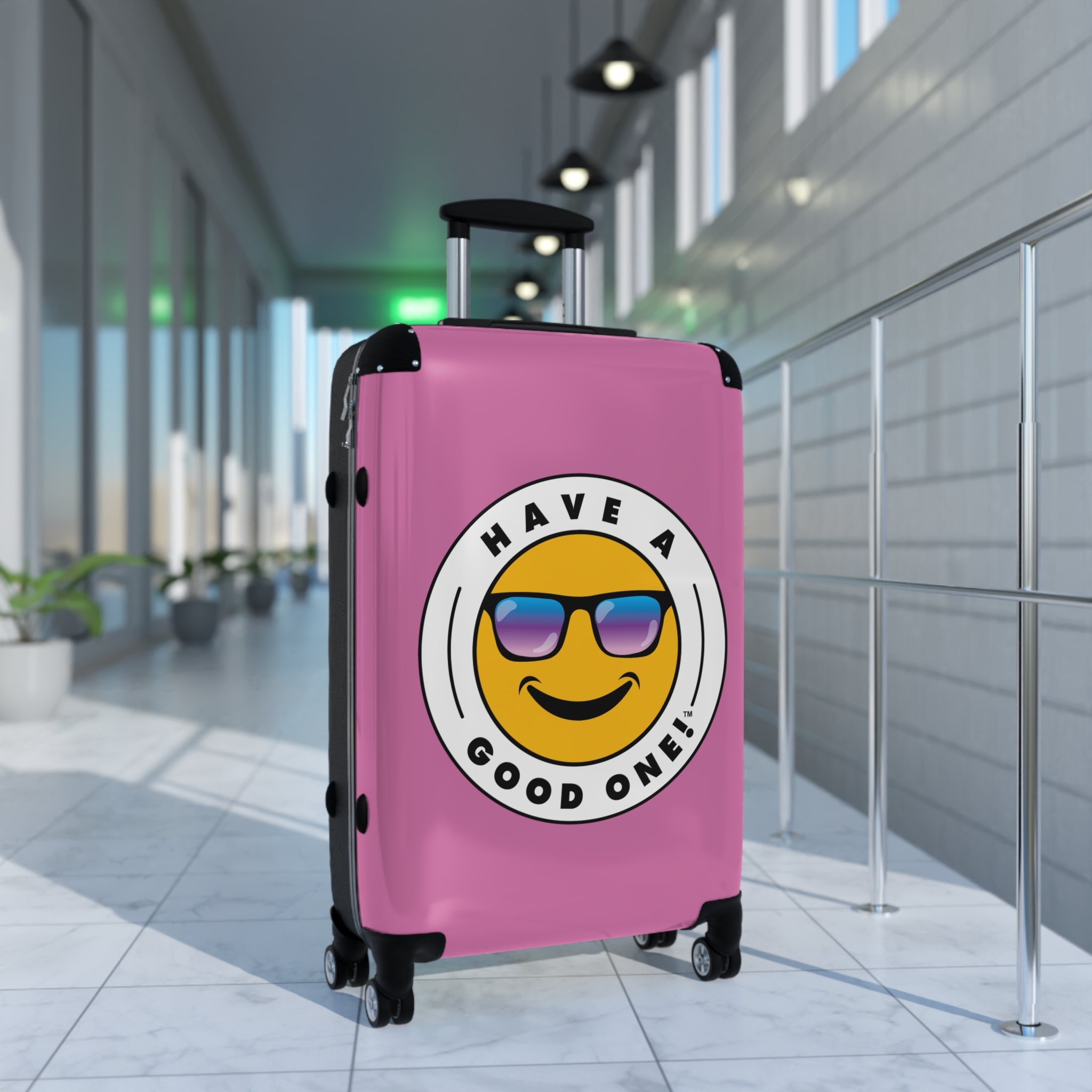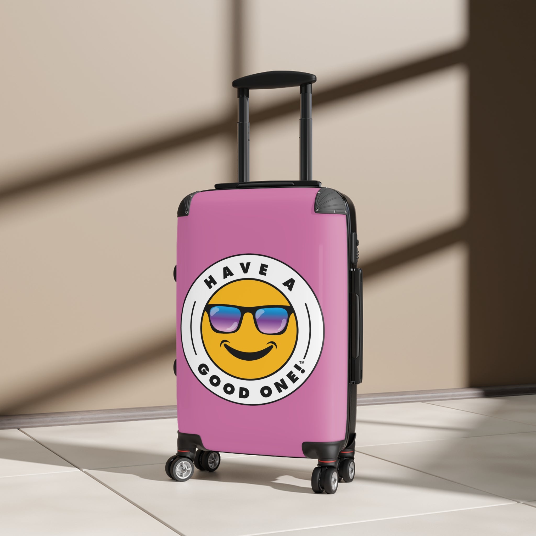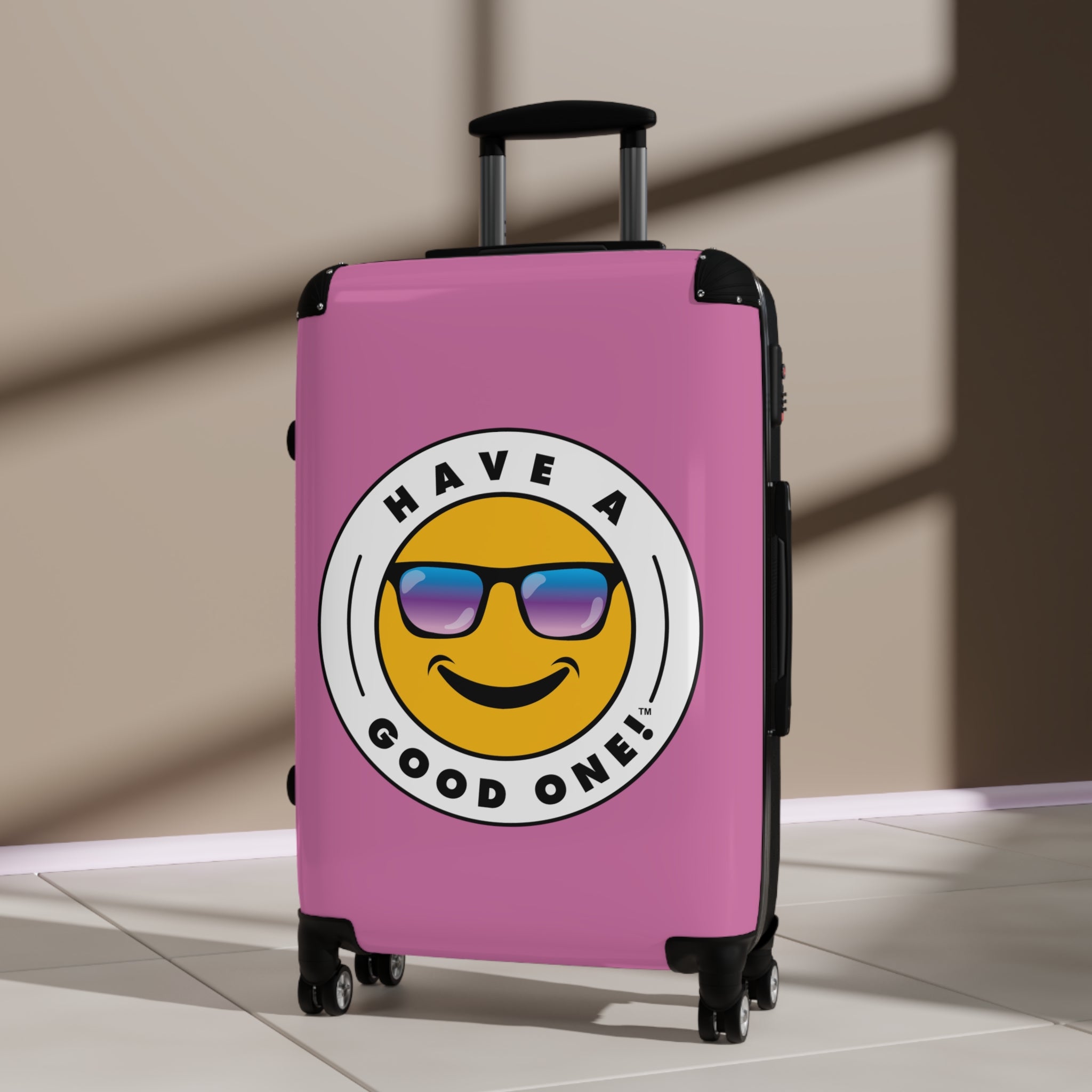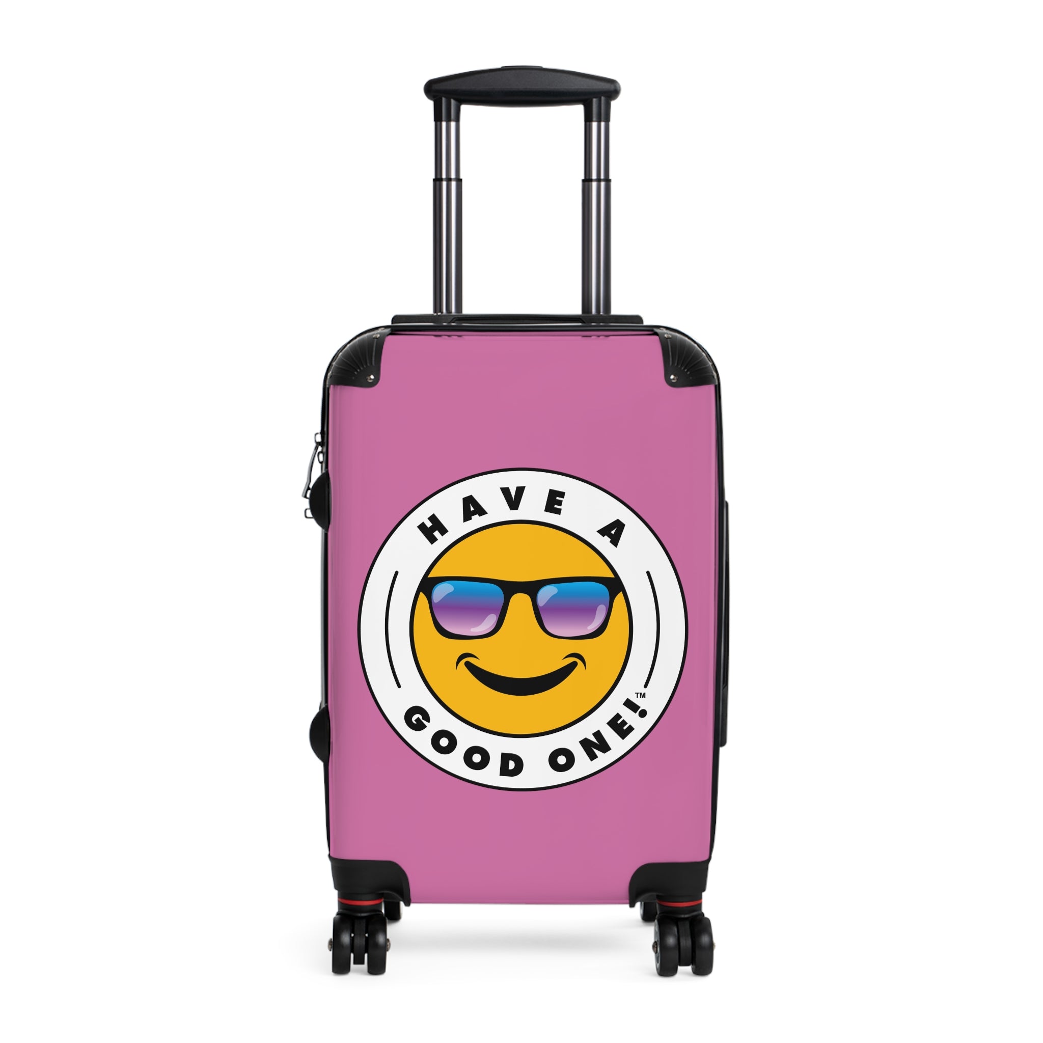 Grab N’ Go Have A Good One! Suitcases - Light Pink Color With Blue Purple Have A Good One! Logo