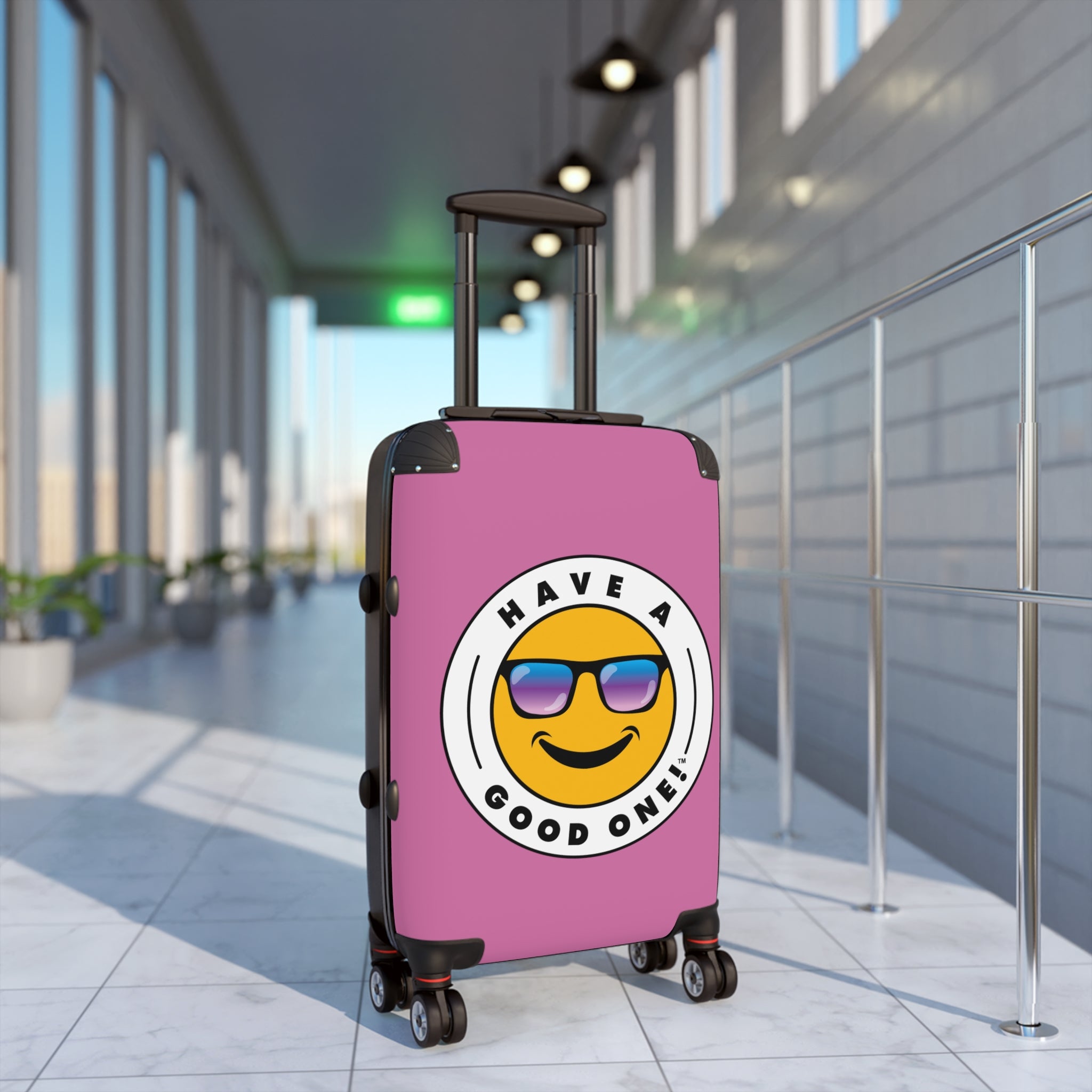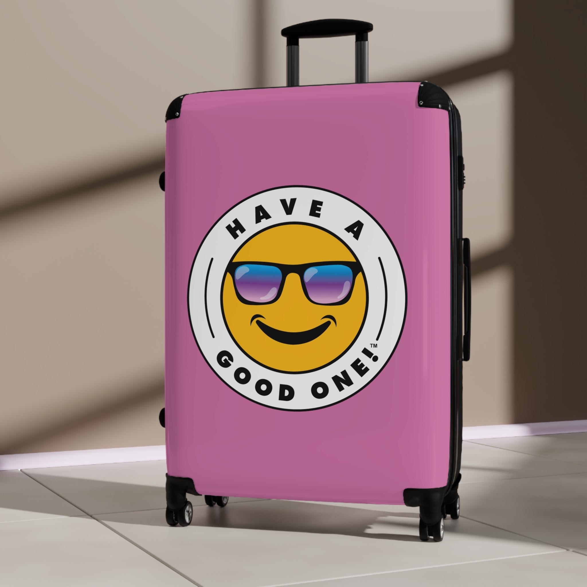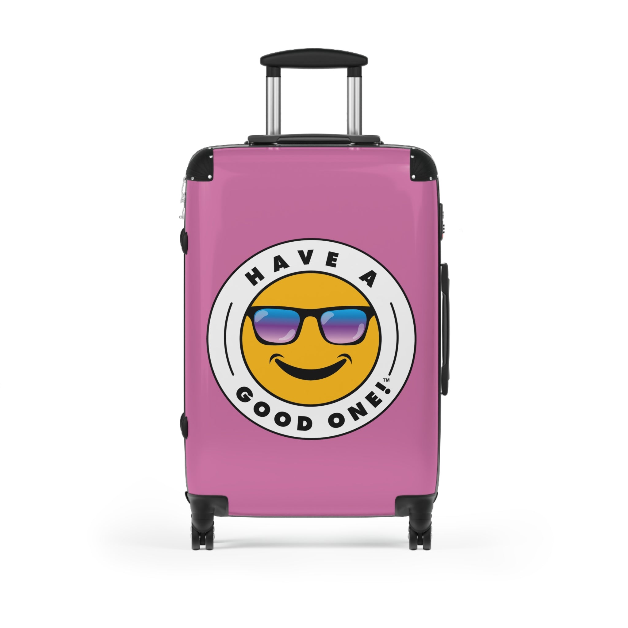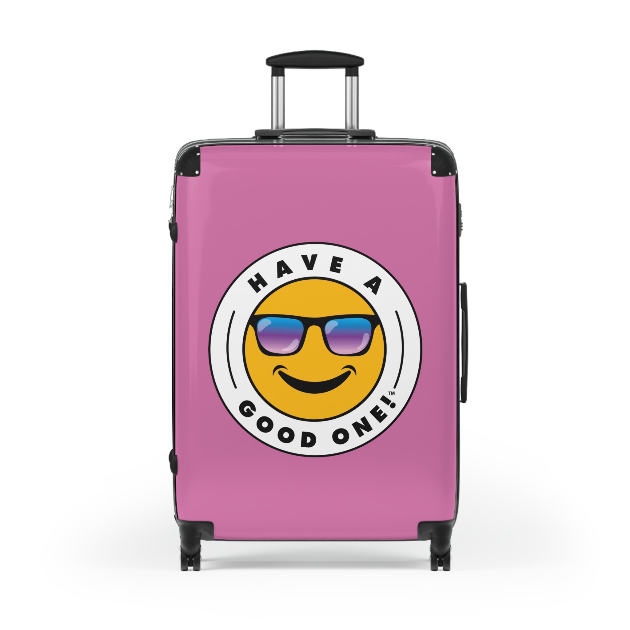 Grab N’ Go Have A Good One! Suitcases - Light Pink Color With Blue Purple Have A Good One! Logo