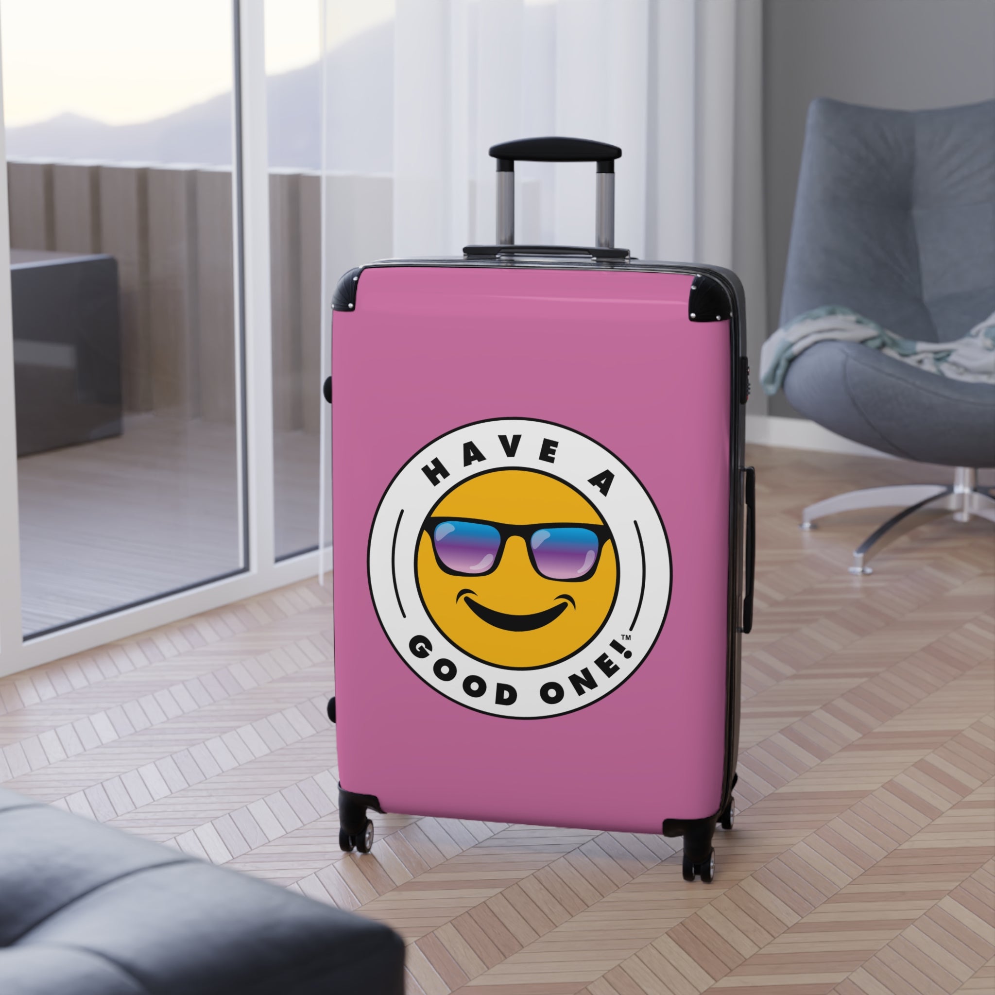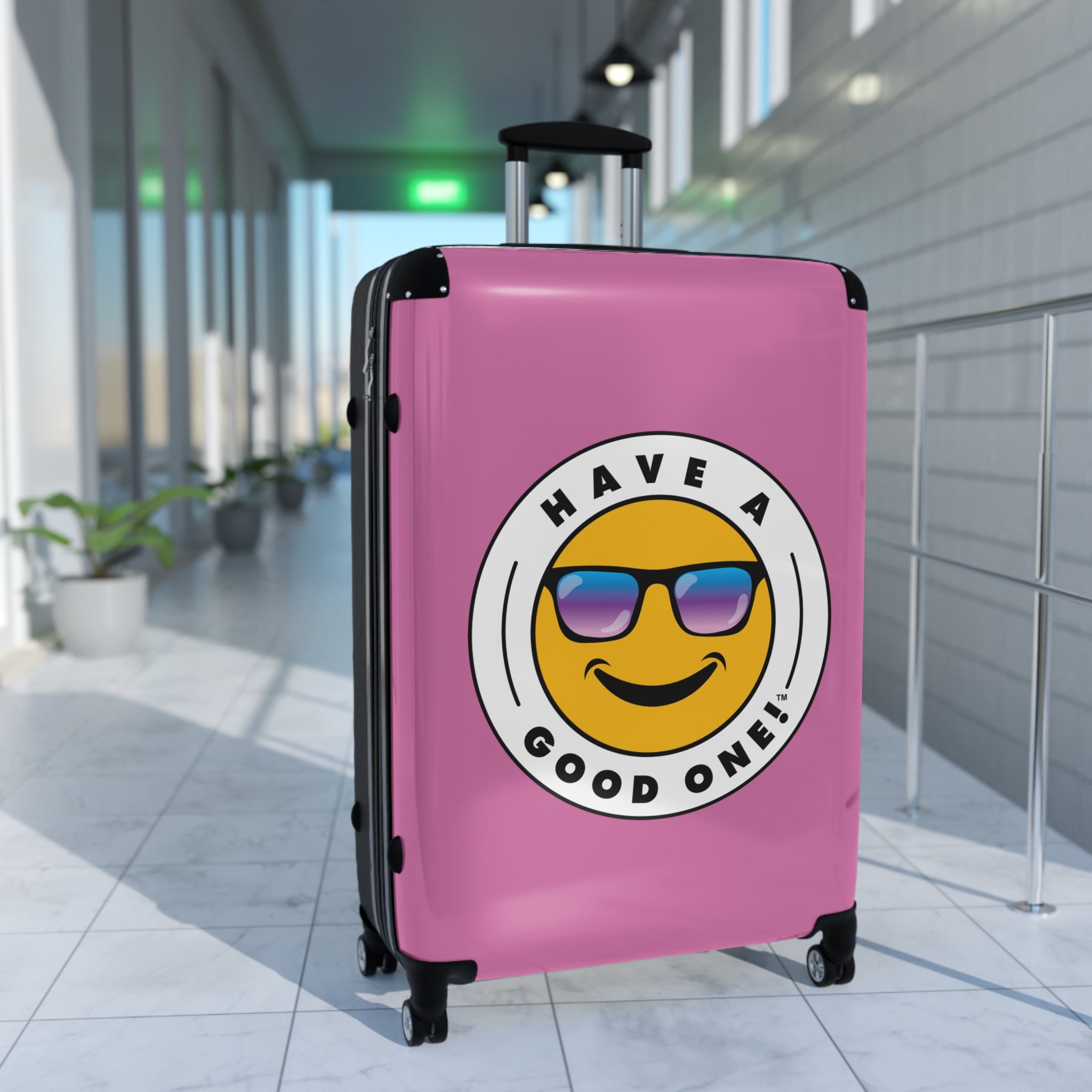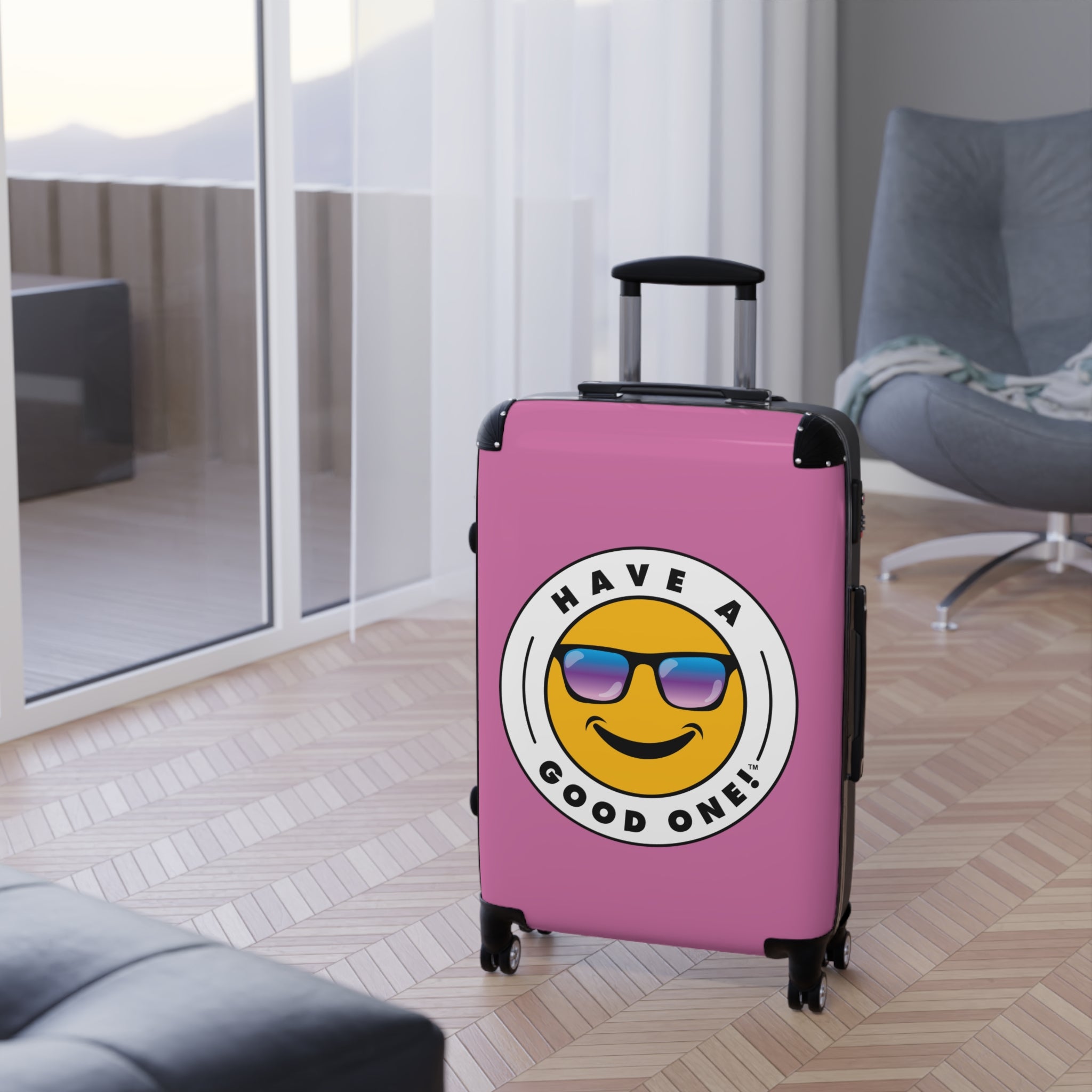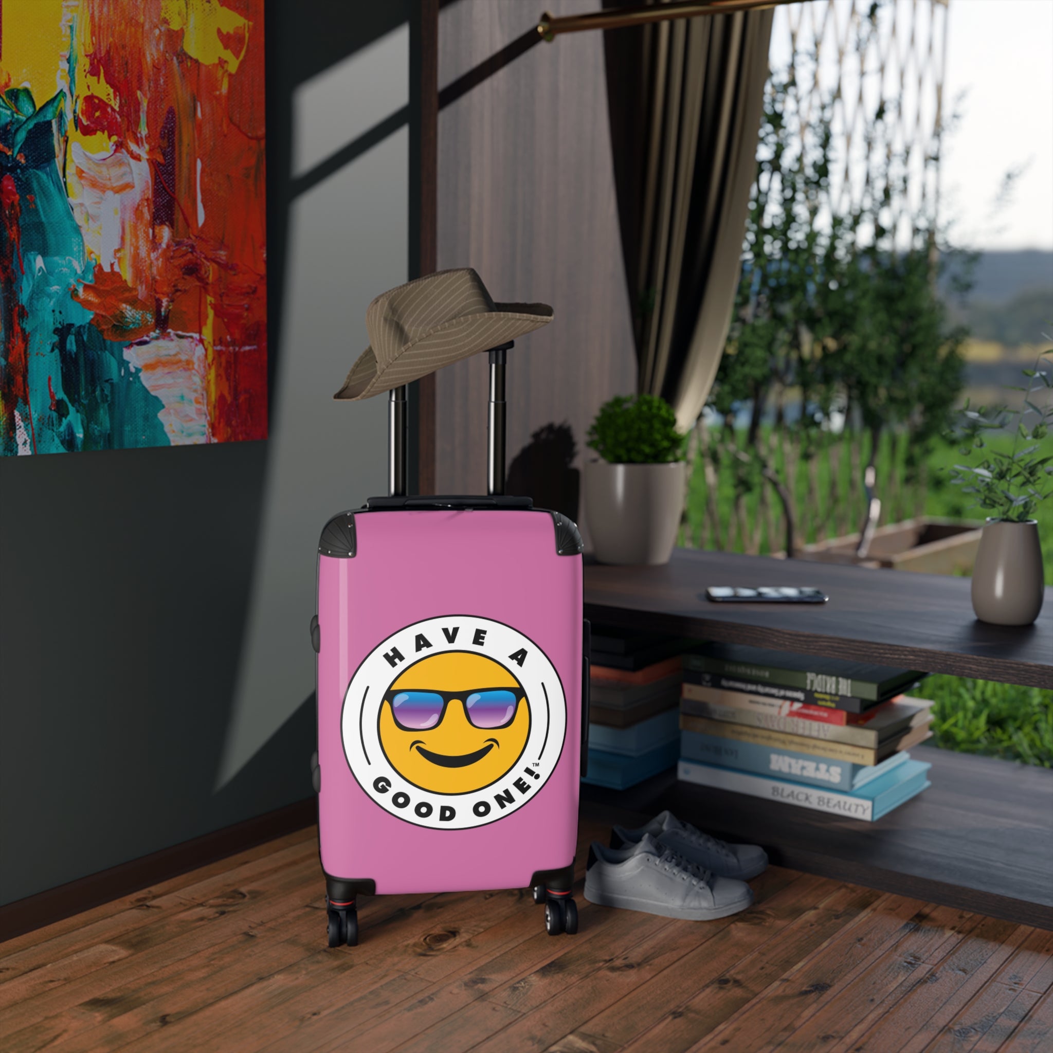 Grab N’ Go Have A Good One! Suitcases - Light Pink Color With Blue Purple Have A Good One! Logo