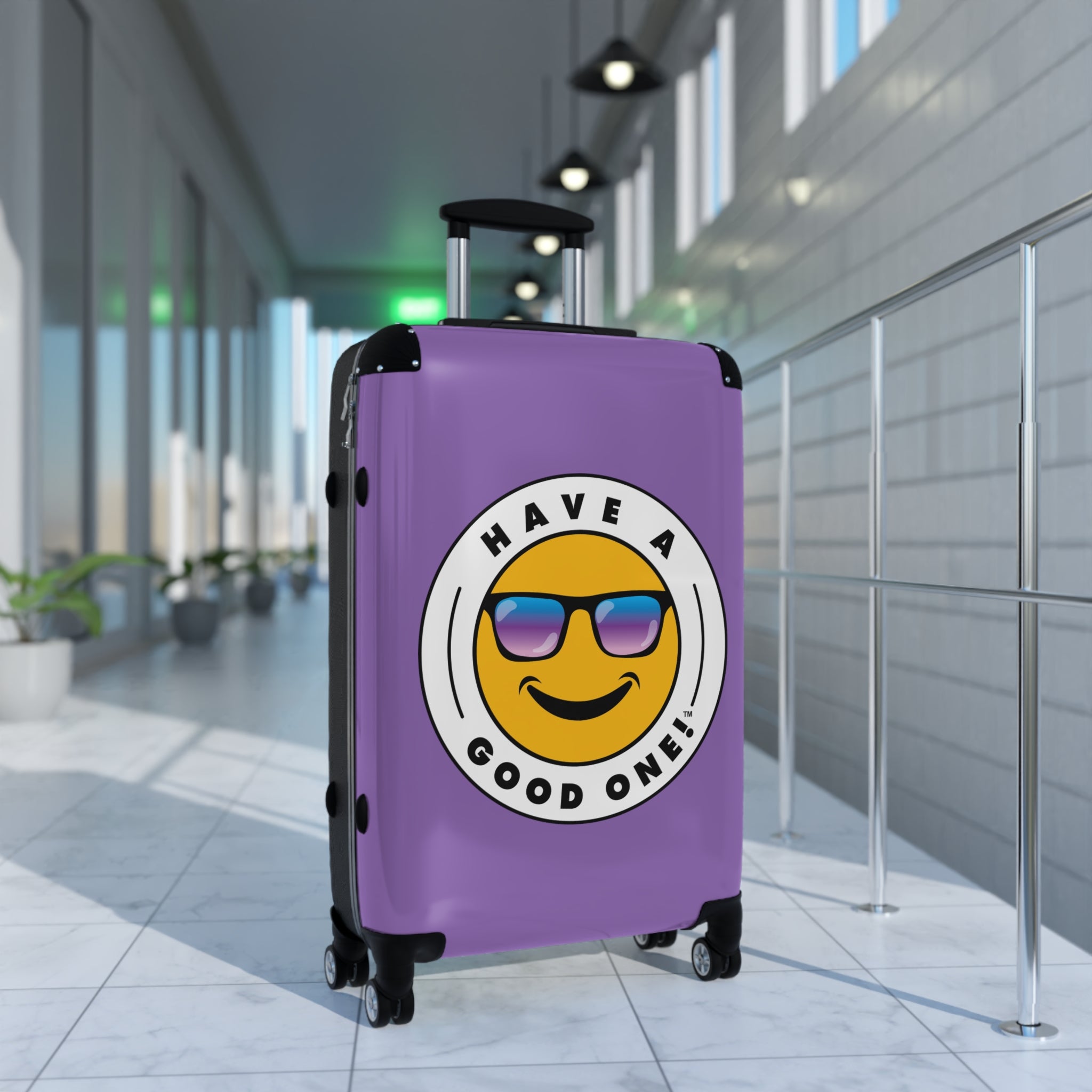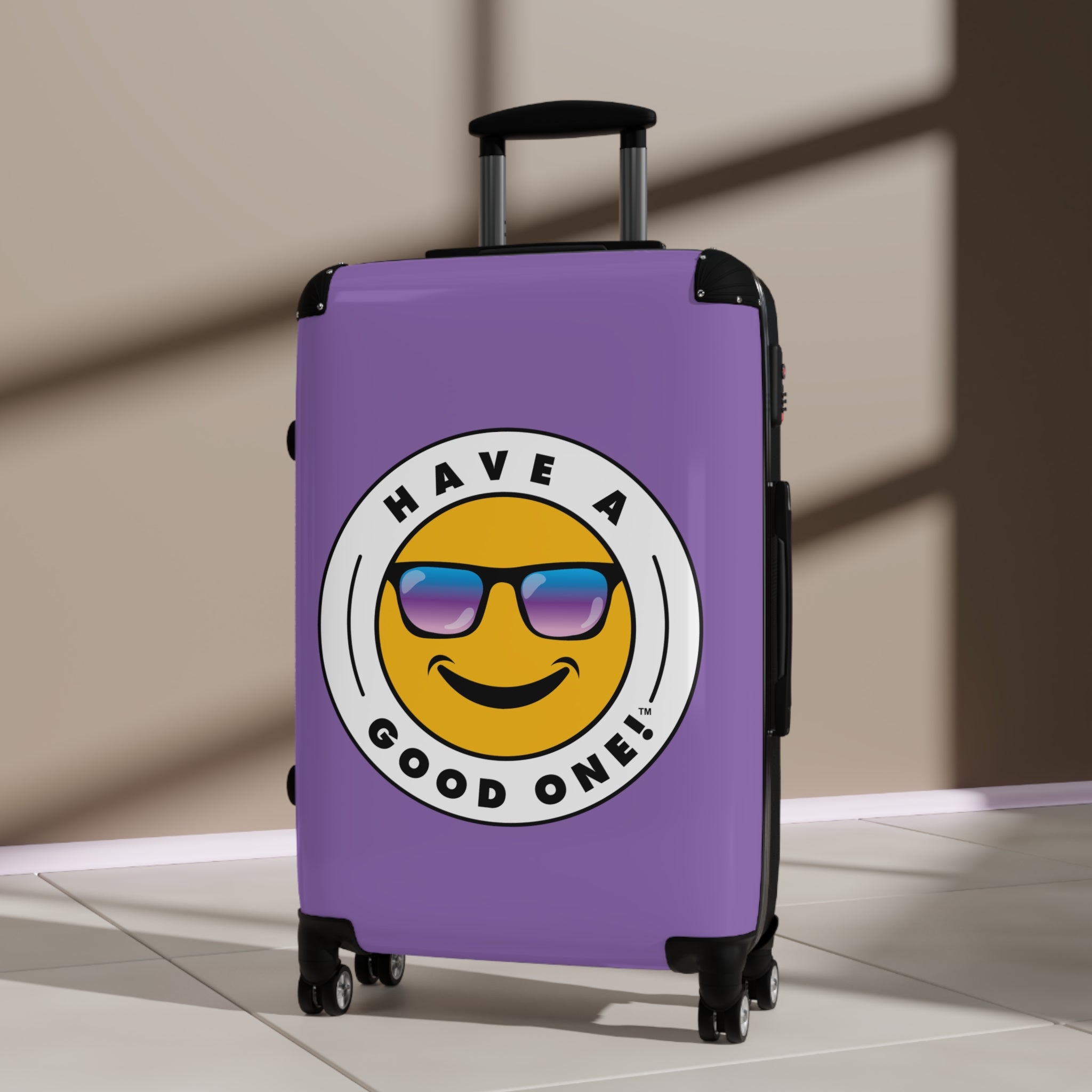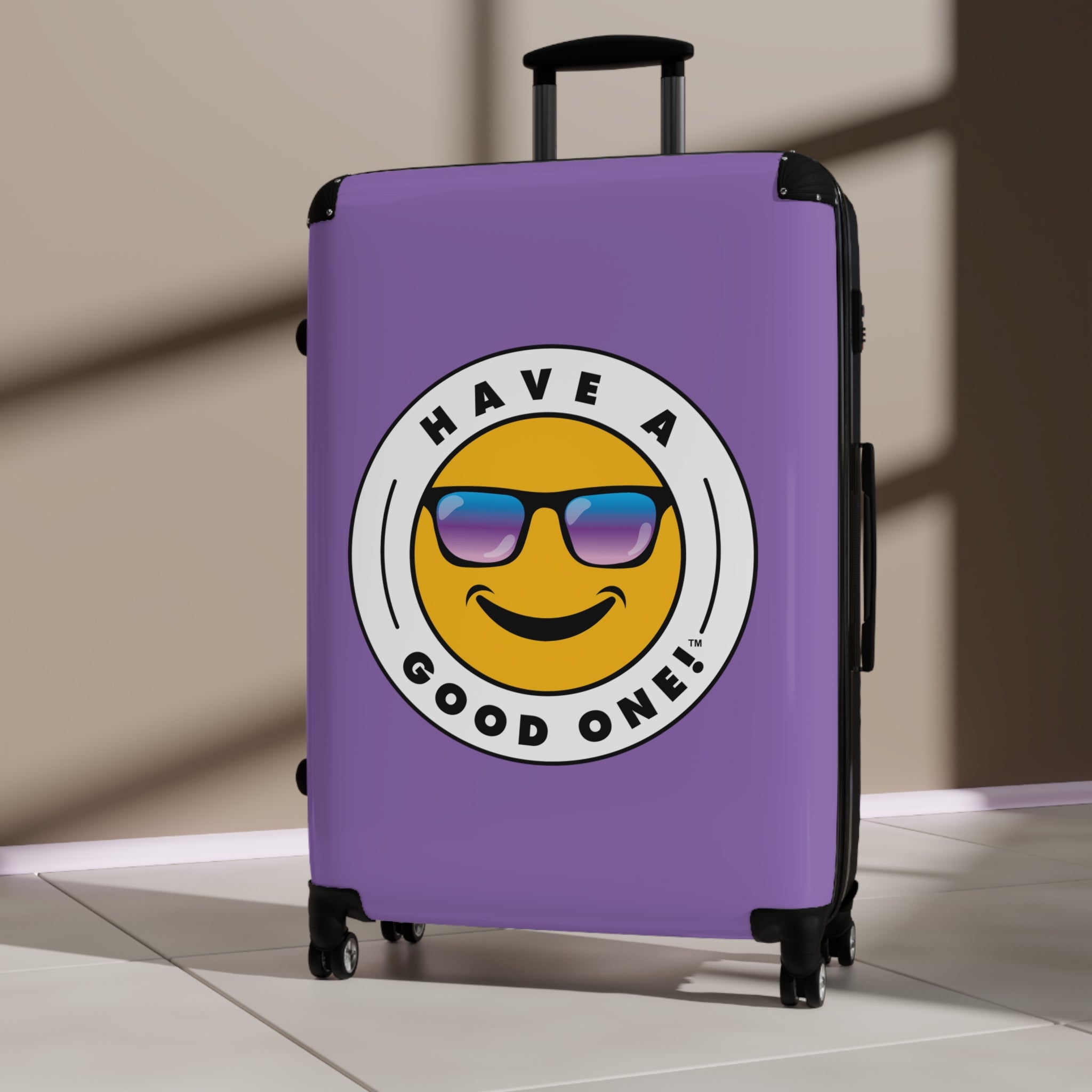Grab N’ Go Have A Good One! Suitcases - Light Purple Color With Blue Purple Have A Good One! Logo