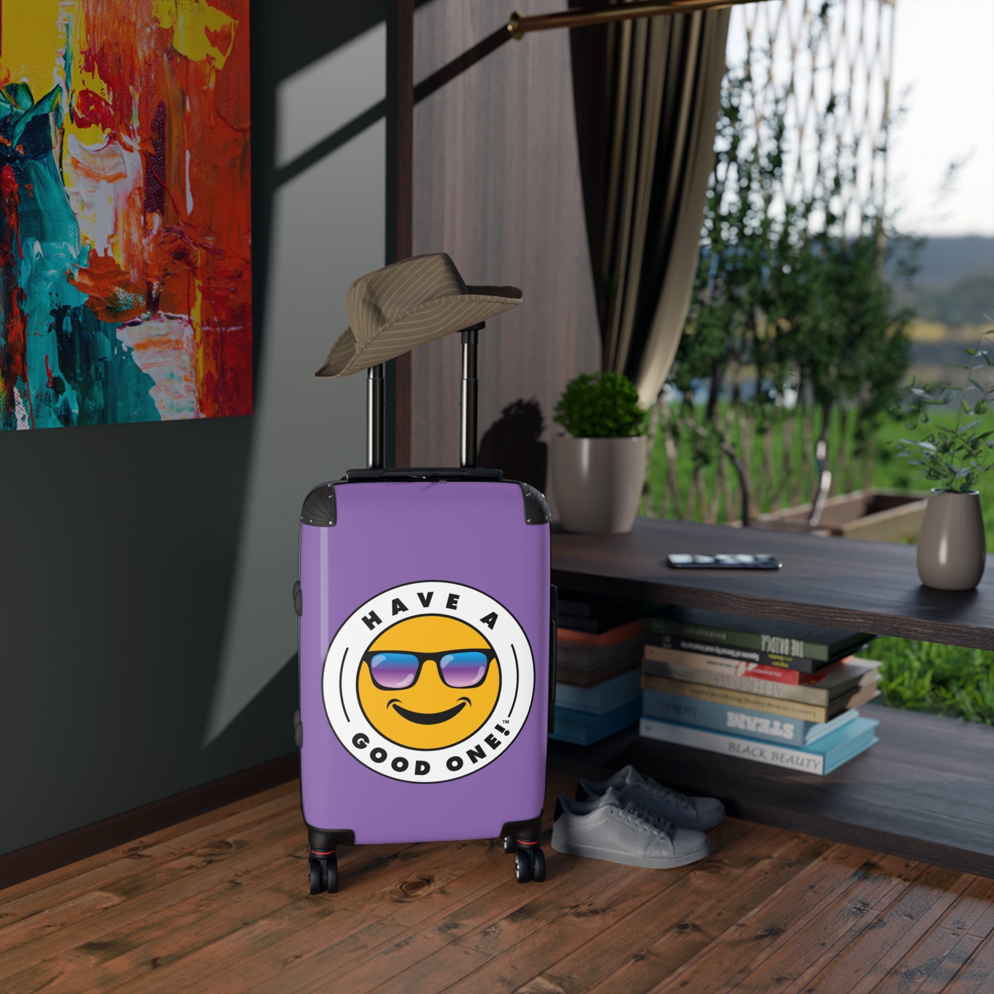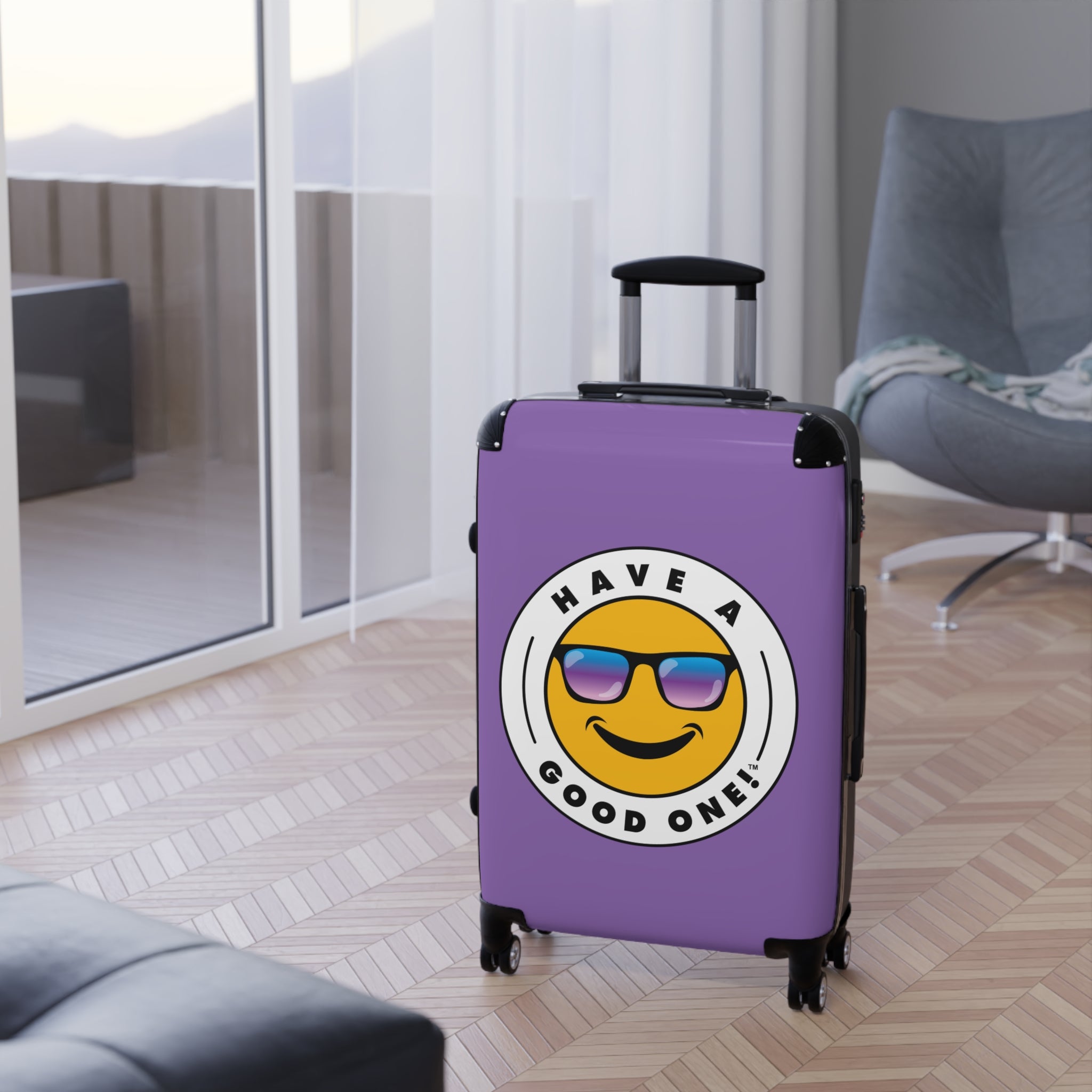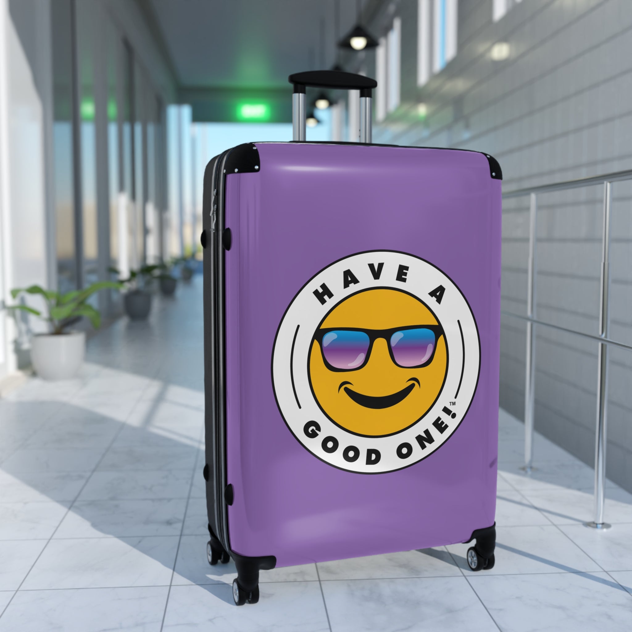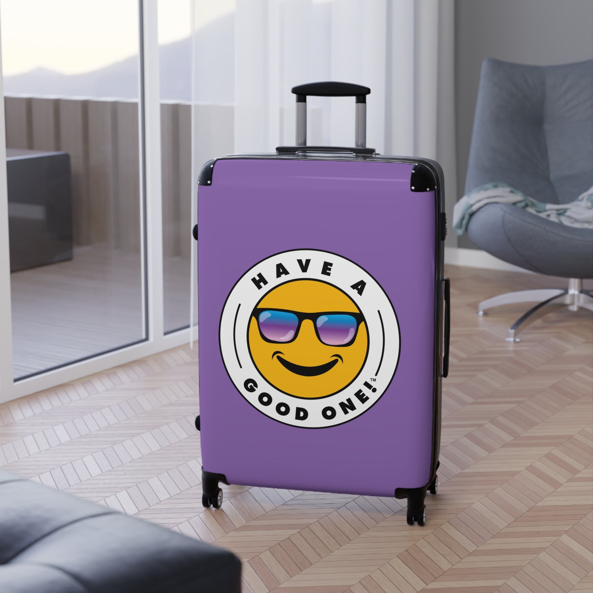 Grab N’ Go Have A Good One! Suitcases - Light Purple Color With Blue Purple Have A Good One! Logo