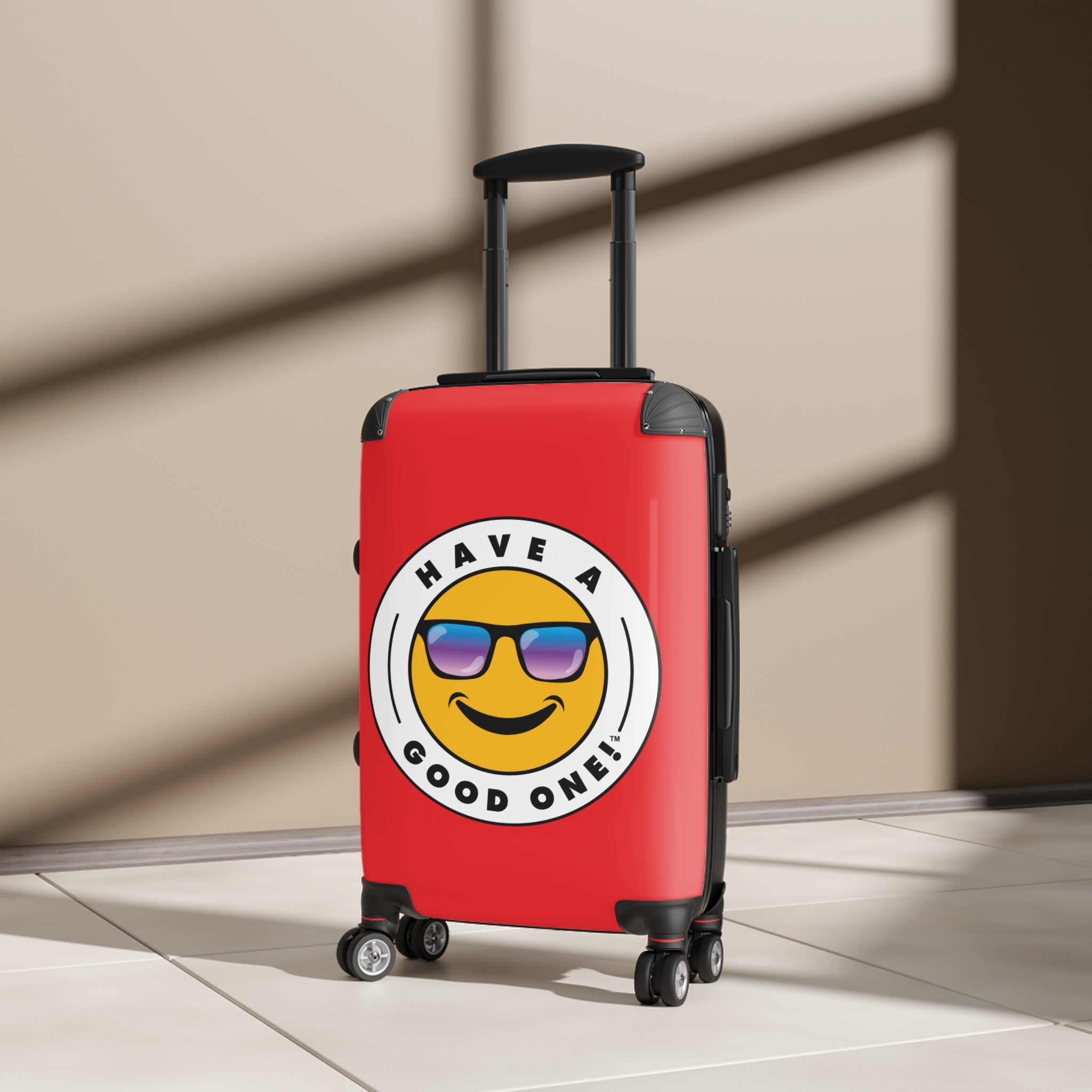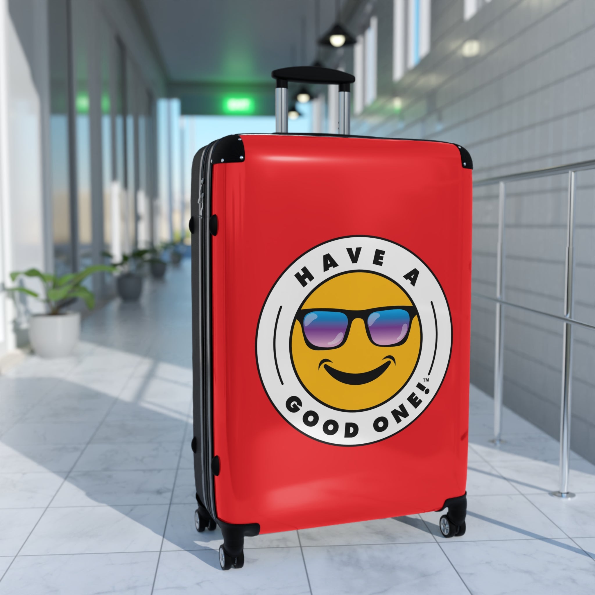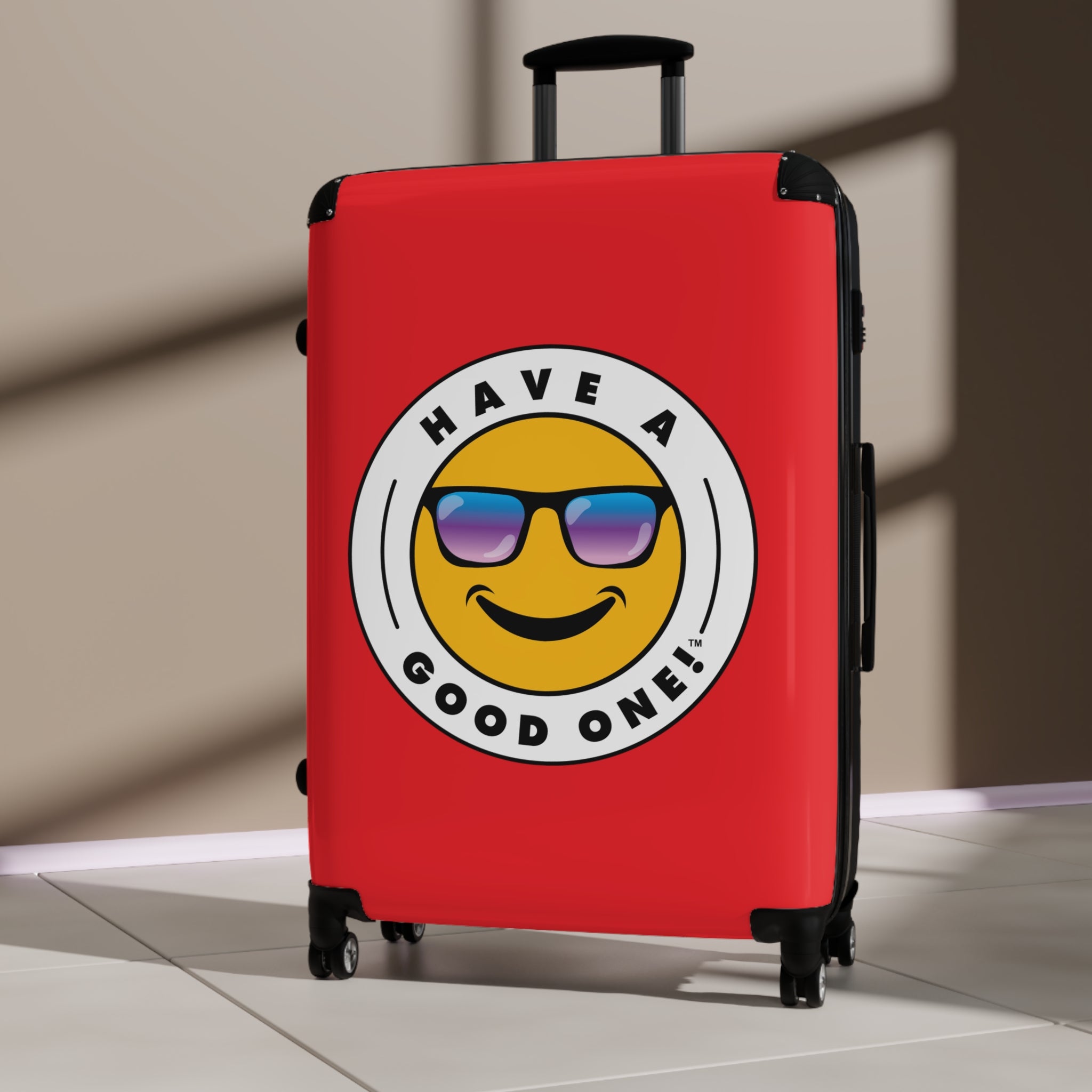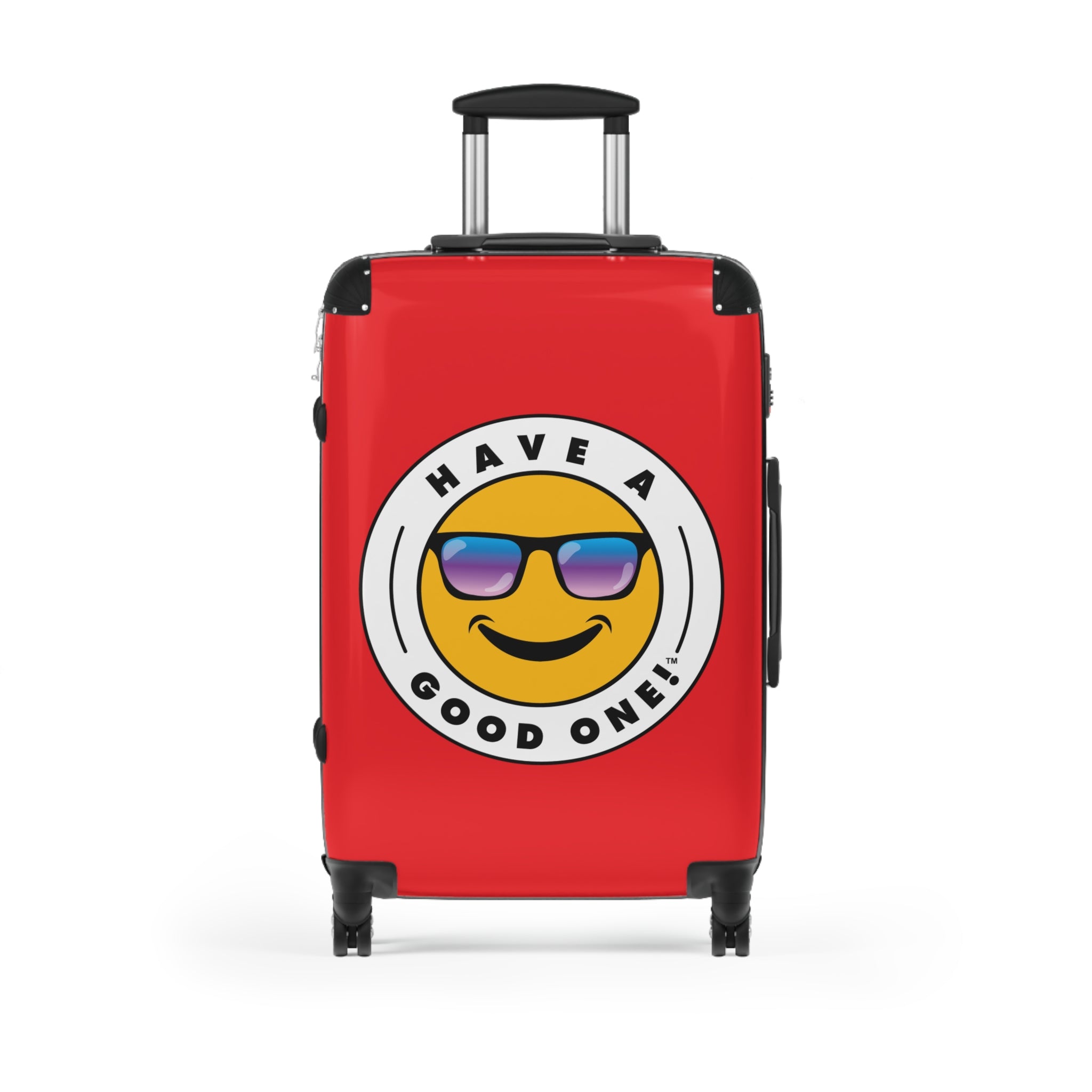 Grab N’ Go Have A Good One suitcases for those who want to have fun on their trip from the moment they start packing! Traveling is best done in style and our suitcases will help anyone do exactly that. Available in three different sizes to accommodate your needs. They come with 360 degree swivel wheels, a safety lock and an adjustable handle for carefree movement through airports and cities. There are inner pockets that are perfect for smaller items. Made from durable and lightweight materials that provide impact, scratch and temperature resistance. You can even extend the storage space by opening the top of the suitcase. This luggage will make any traveler smile from ear to ear as you head off on your vacation. We know you will Have A Good One wherever your trip takes you!