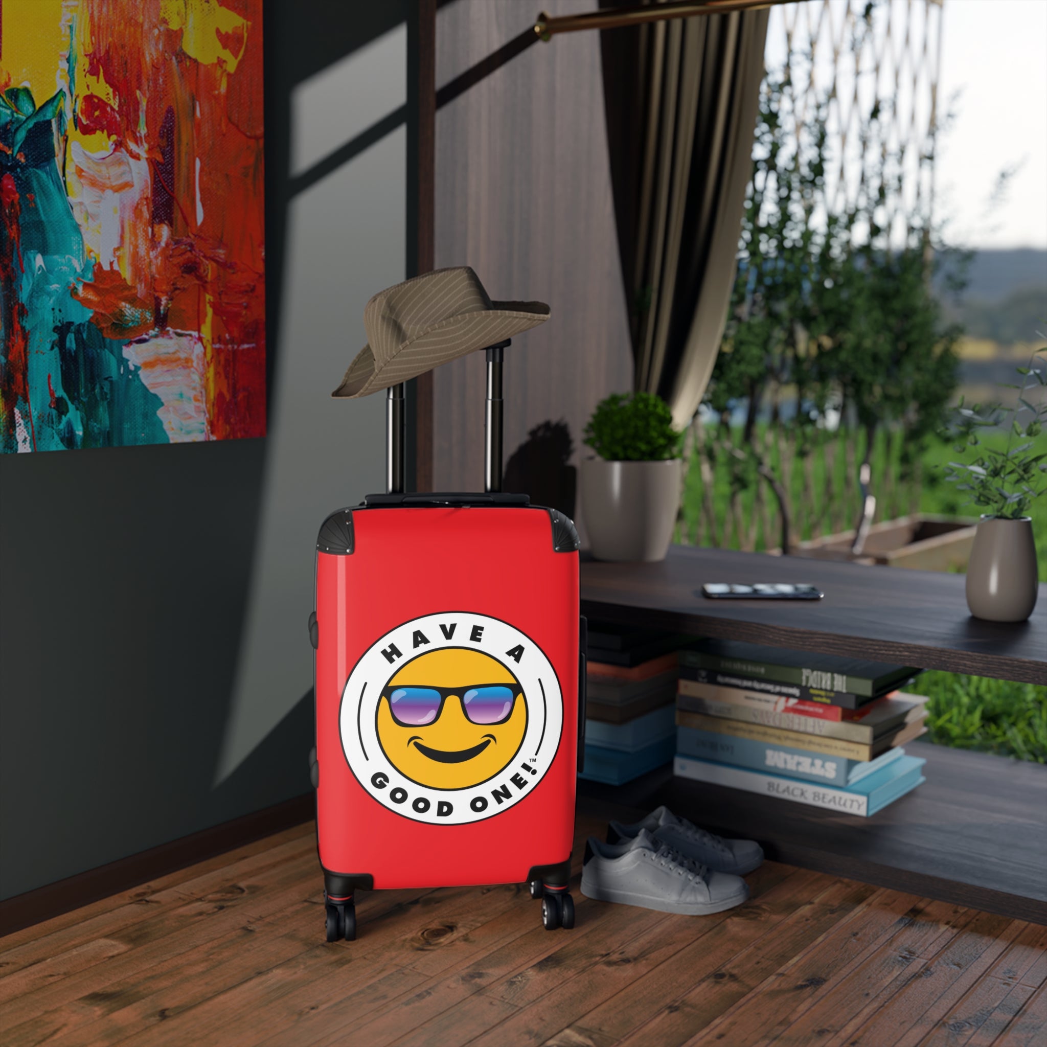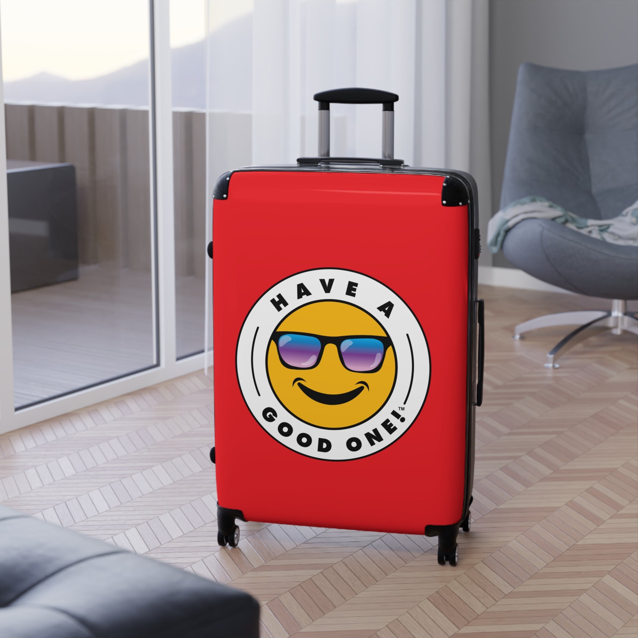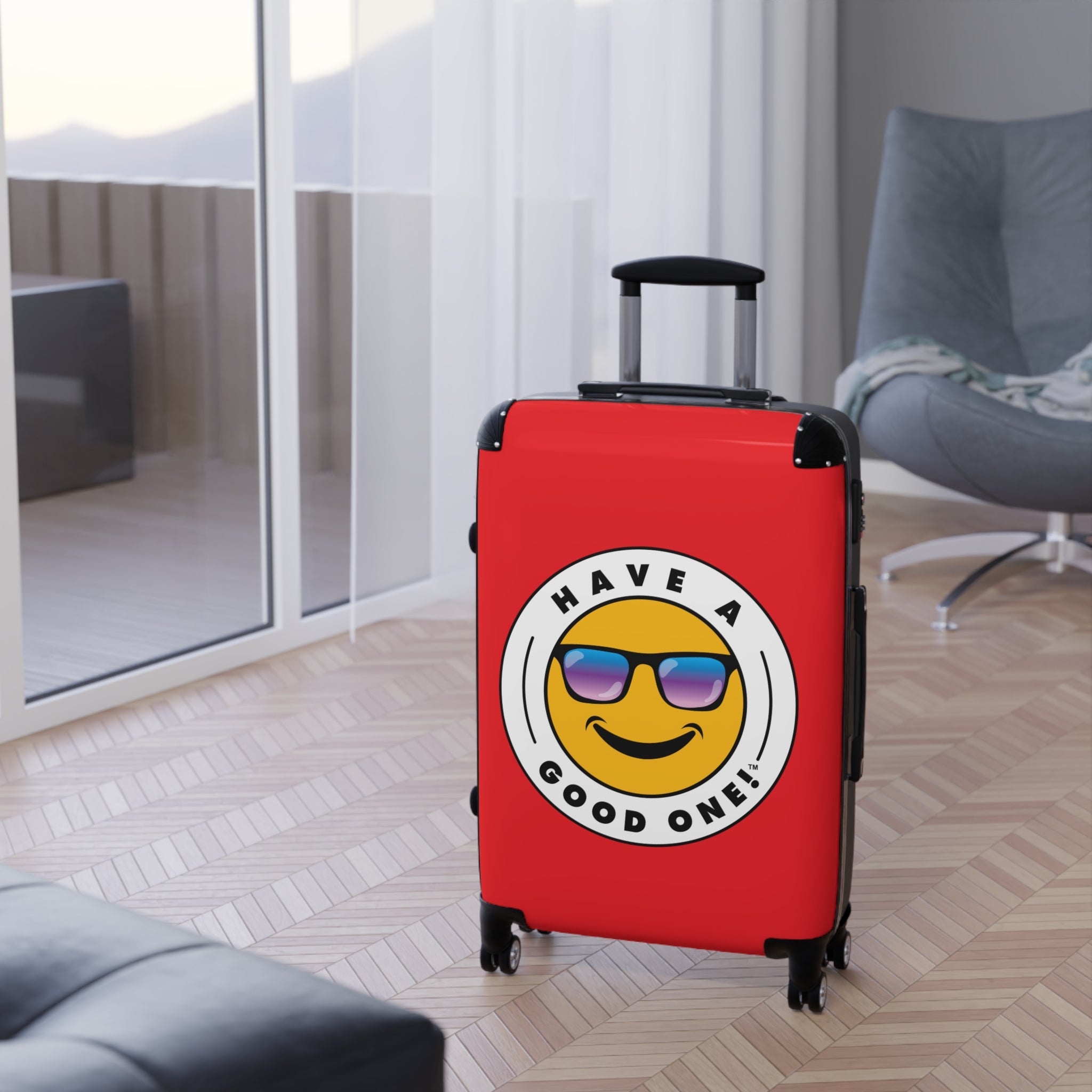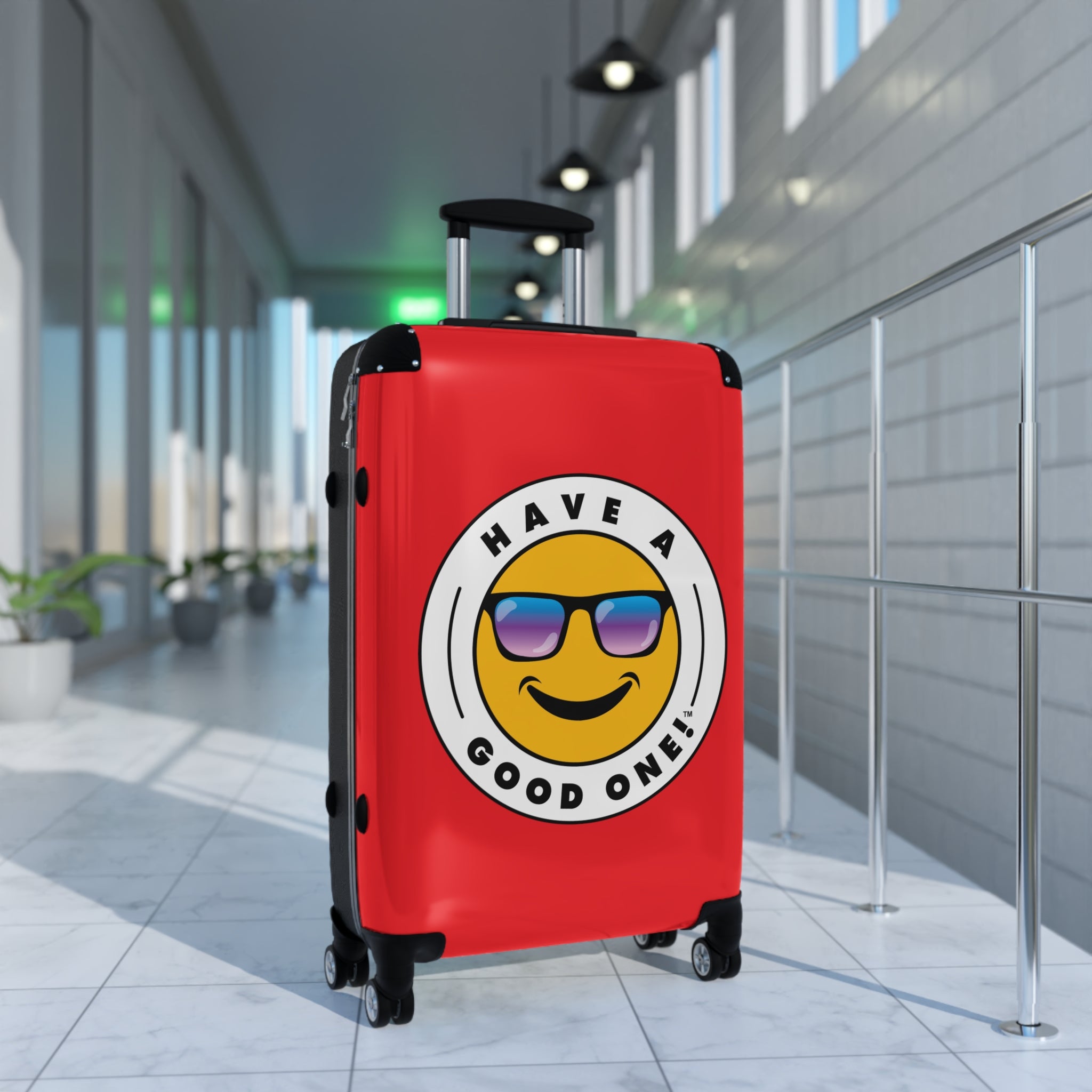 Grab N’ Go Have A Good One suitcases for those who want to have fun on their trip from the moment they start packing! Traveling is best done in style and our suitcases will help anyone do exactly that. Available in three different sizes to accommodate your needs. They come with 360 degree swivel wheels, a safety lock and an adjustable handle for carefree movement through airports and cities. There are inner pockets that are perfect for smaller items. Made from durable and lightweight materials that provide impact, scratch and temperature resistance. You can even extend the storage space by opening the top of the suitcase. This luggage will make any traveler smile from ear to ear as you head off on your vacation. We know you will Have A Good One wherever your trip takes you!