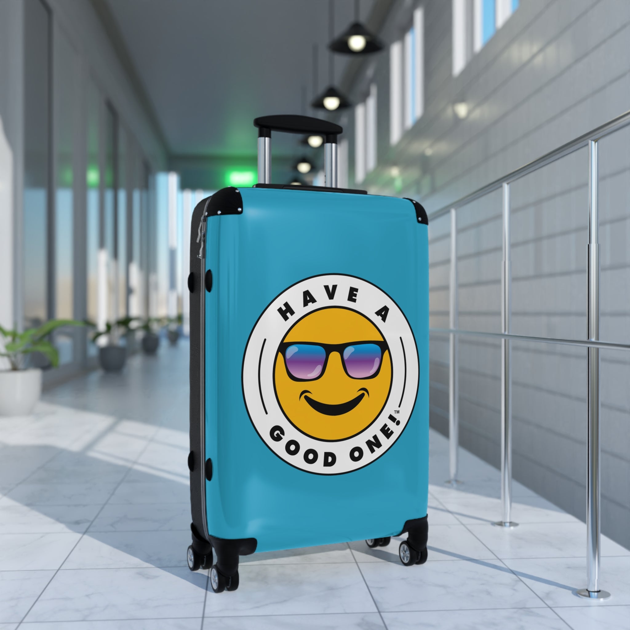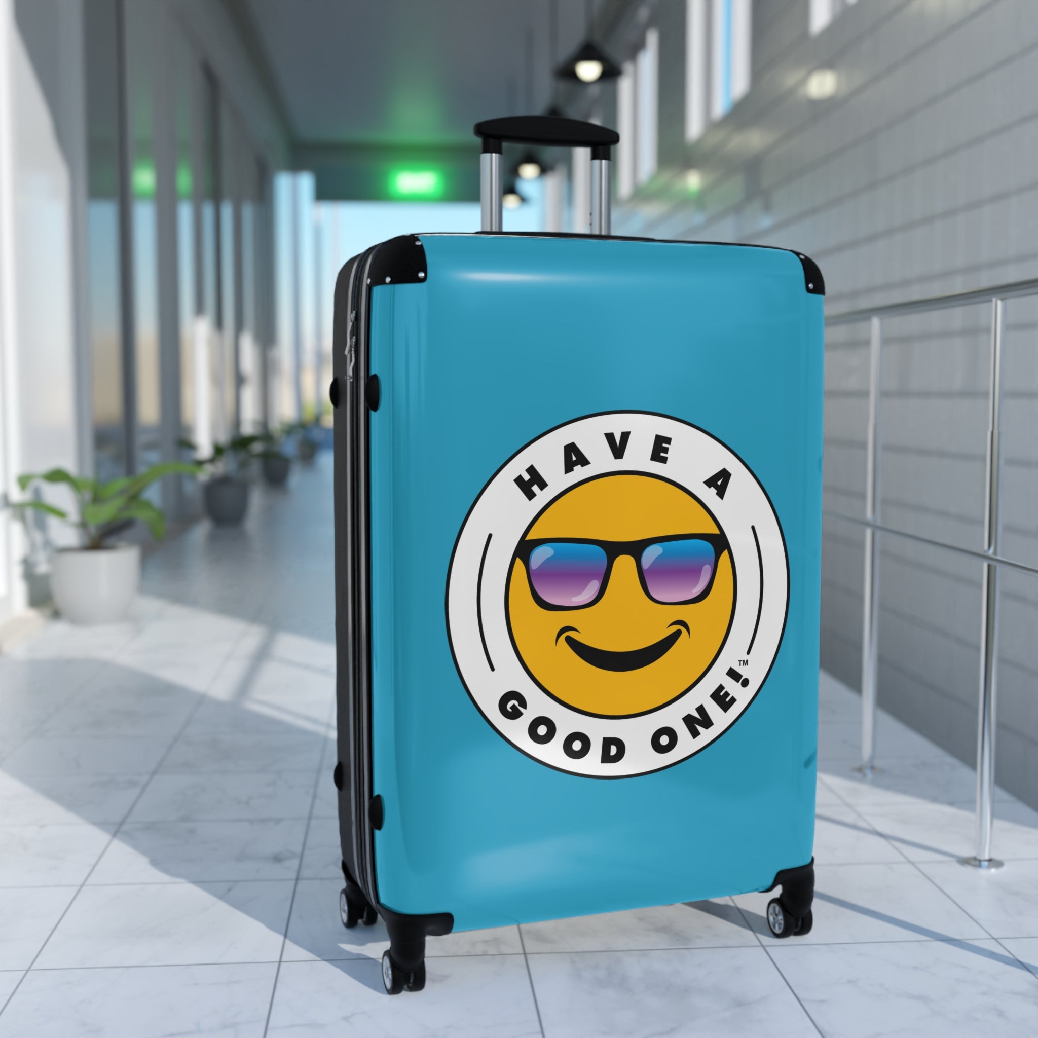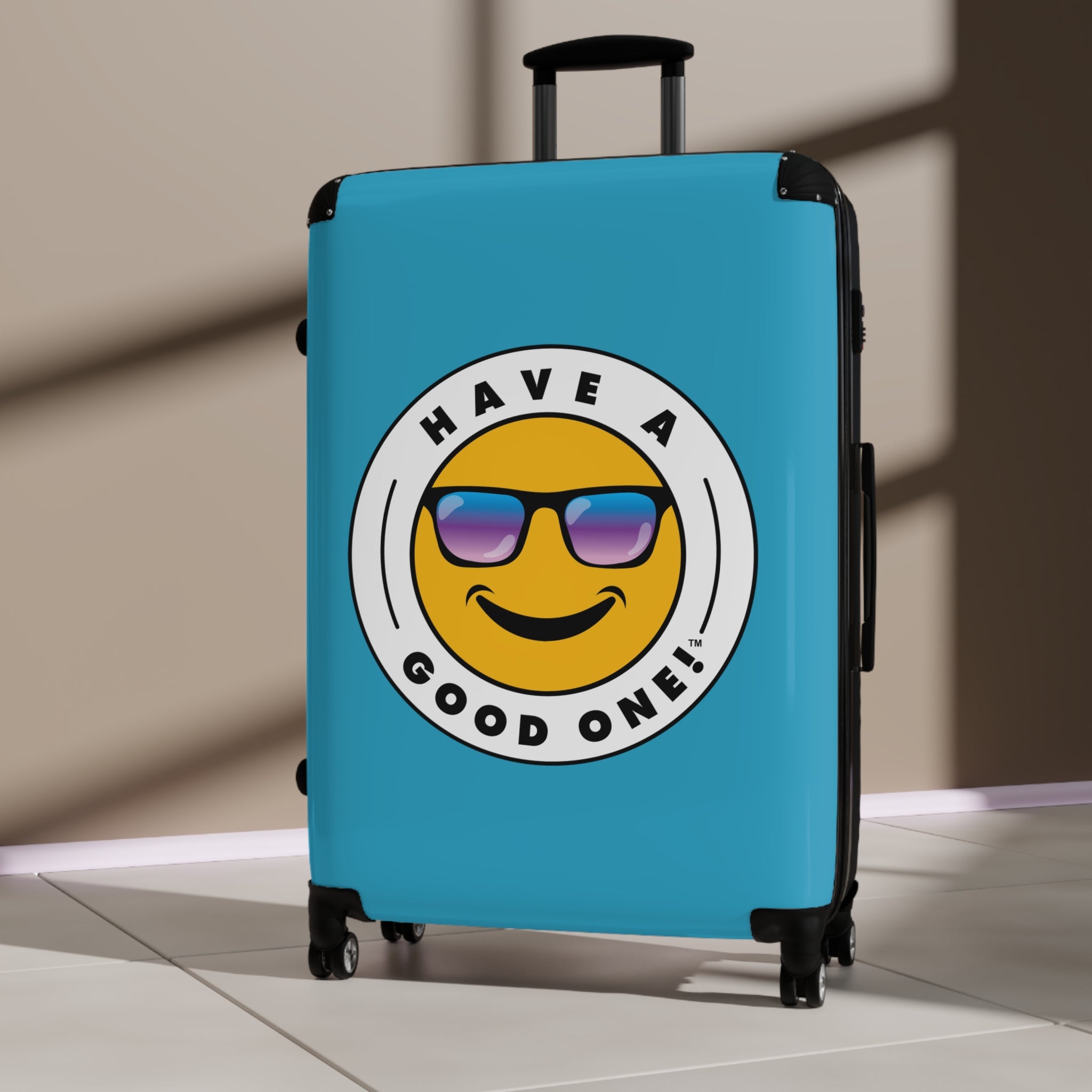 Grab N’ Go Have A Good One! Suitcases - Turquoise Color With Blue Purple Have A Good One! Logo