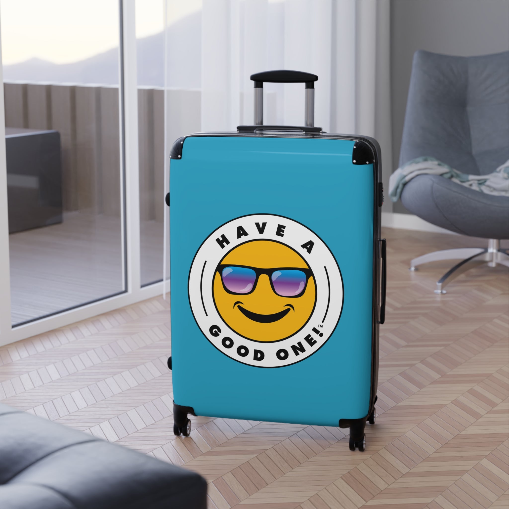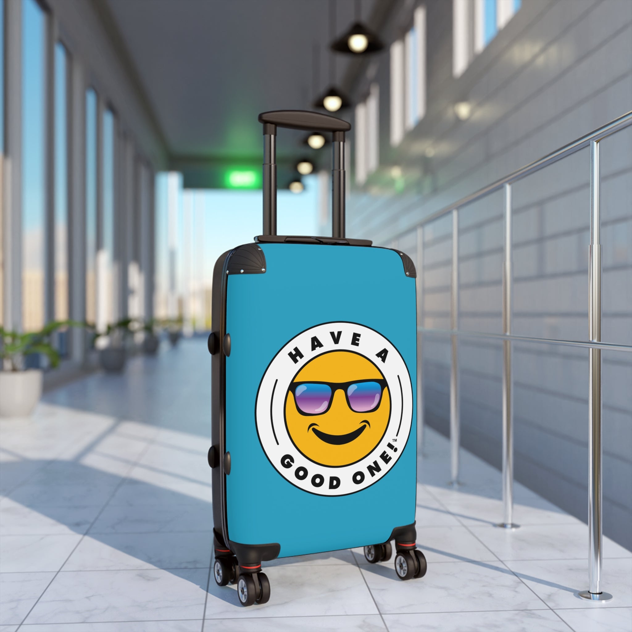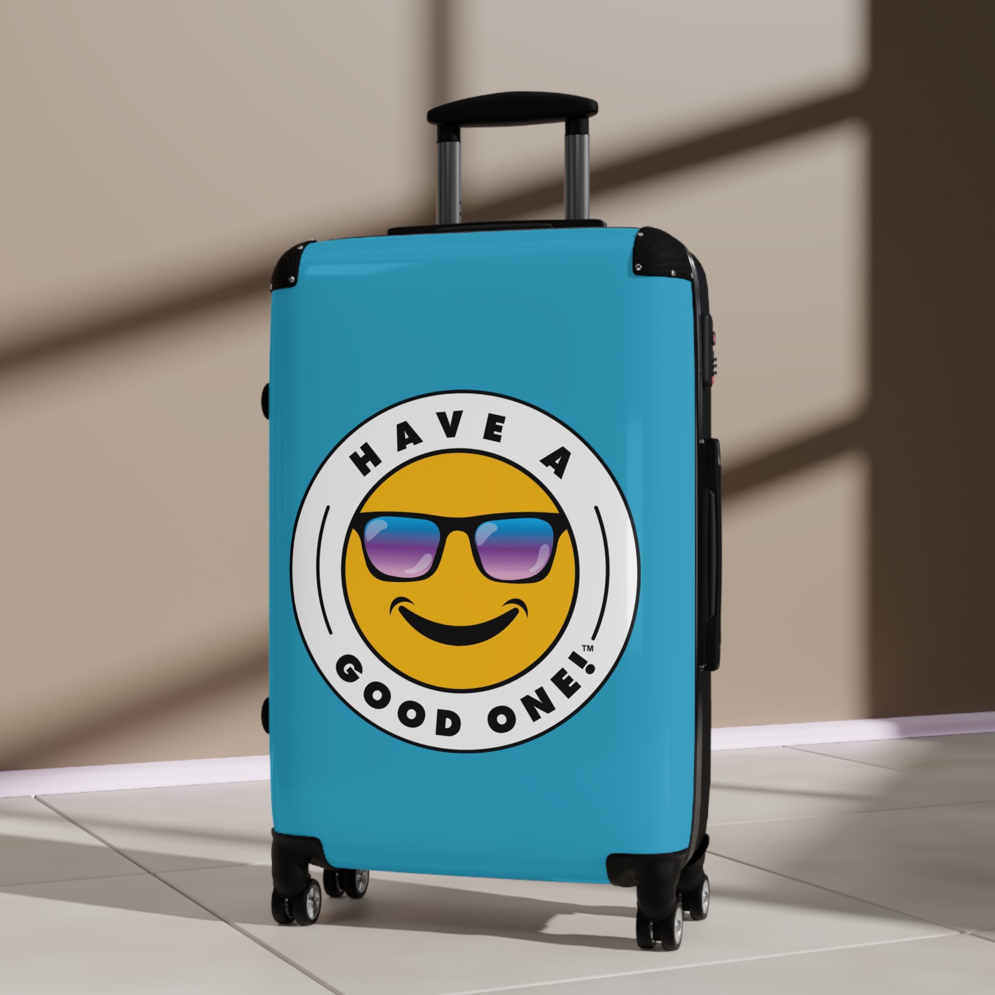 Grab N’ Go Have A Good One! Suitcases - Turquoise Color With Blue Purple Have A Good One! Logo