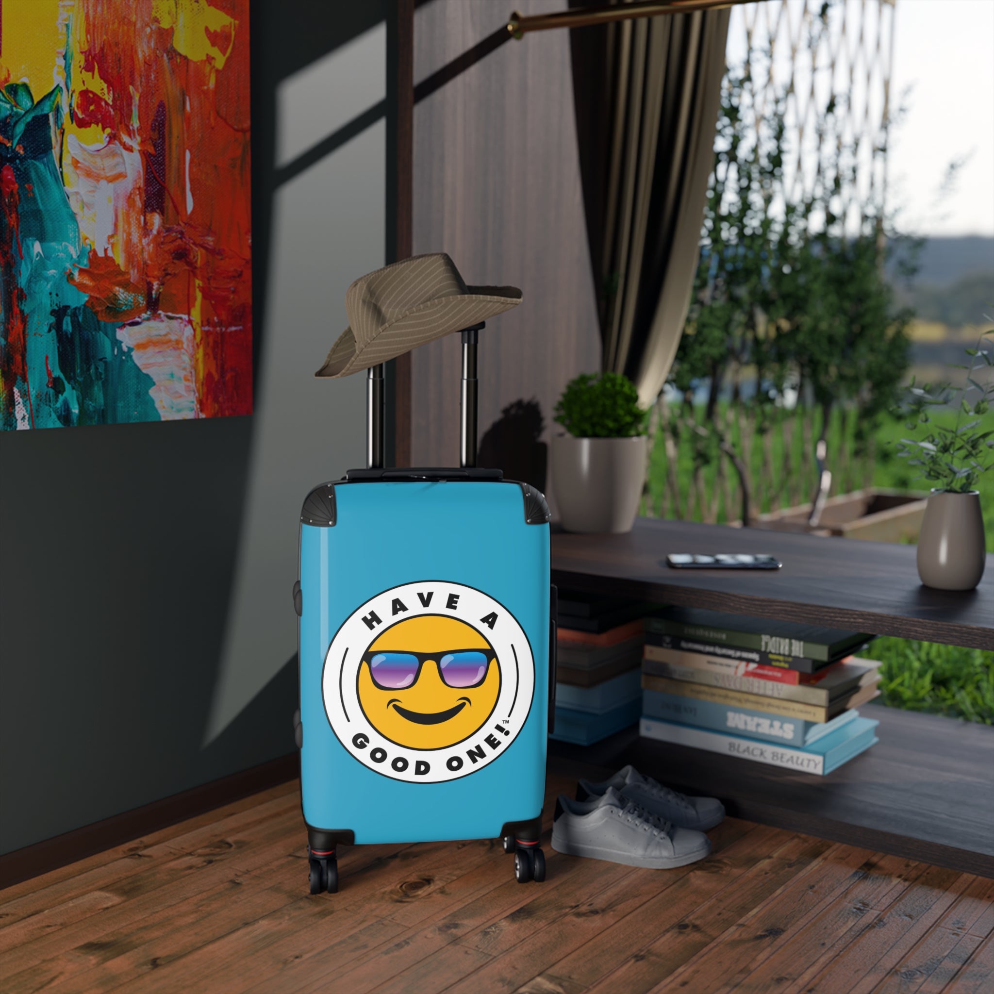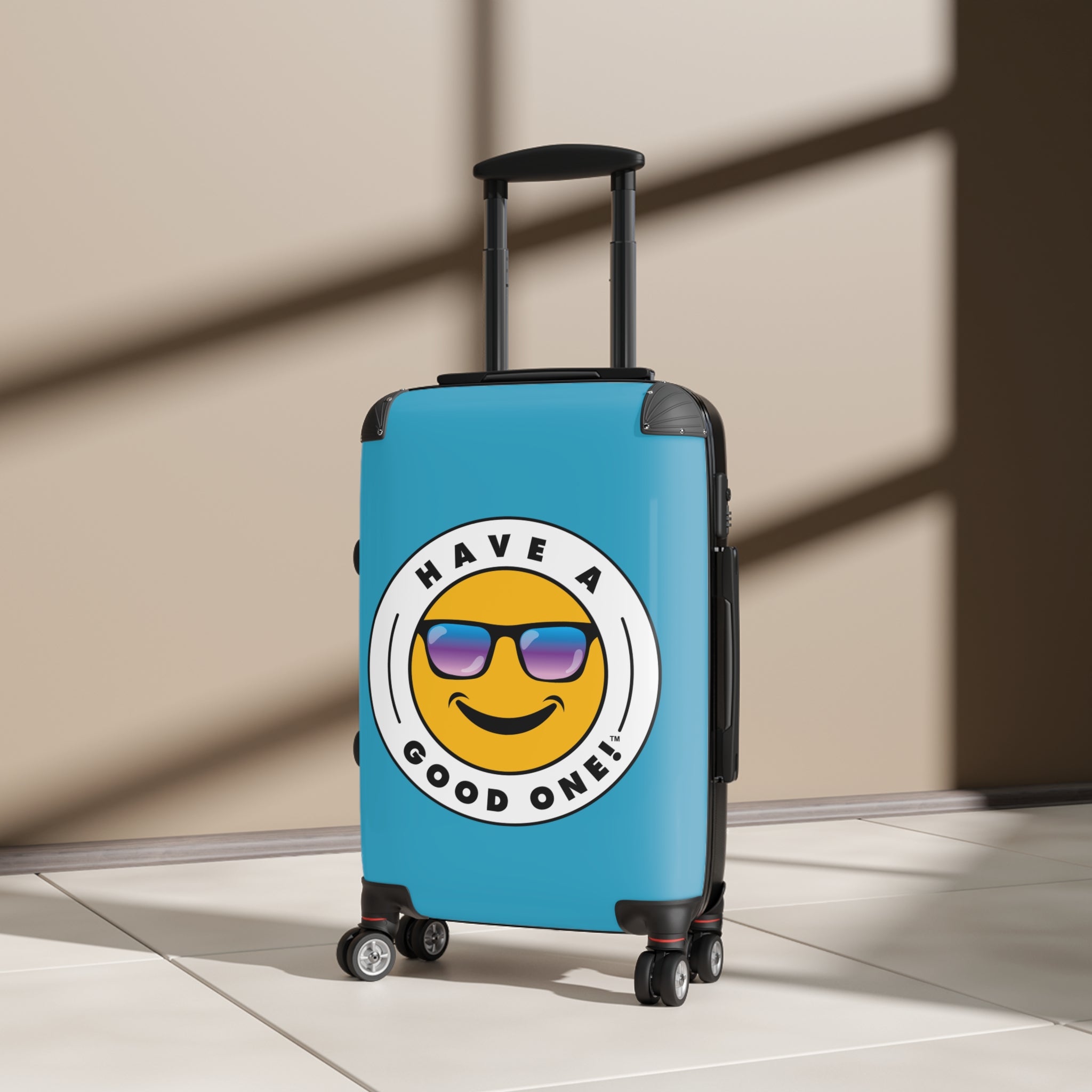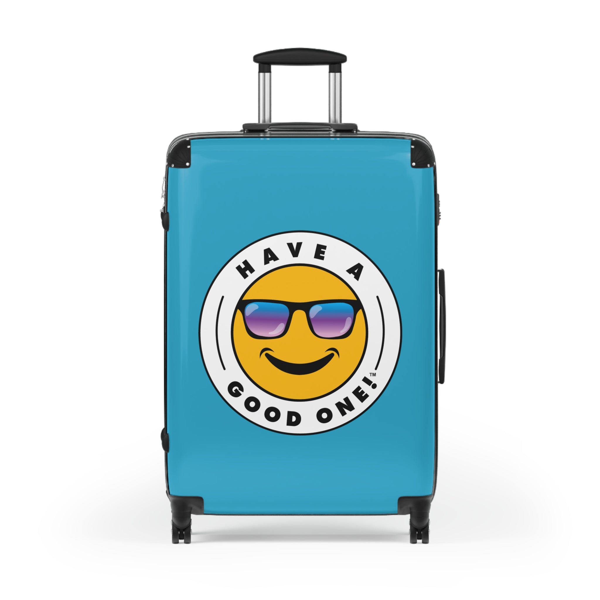 Grab N’ Go Have A Good One suitcases for those who want to have fun on their trip from the moment they start packing! Traveling is best done in style and our suitcases will help anyone do exactly that. Available in three different sizes to accommodate your needs. They come with 360 degree swivel wheels, a safety lock and an adjustable handle for carefree movement through airports and cities. There are inner pockets that are perfect for smaller items. Made from durable and lightweight materials that provide impact, scratch and temperature resistance. You can even extend the storage space by opening the top of the suitcase. This luggage will make any traveler smile from ear to ear as you head off on your vacation. We know you will Have A Good One wherever your trip takes you!