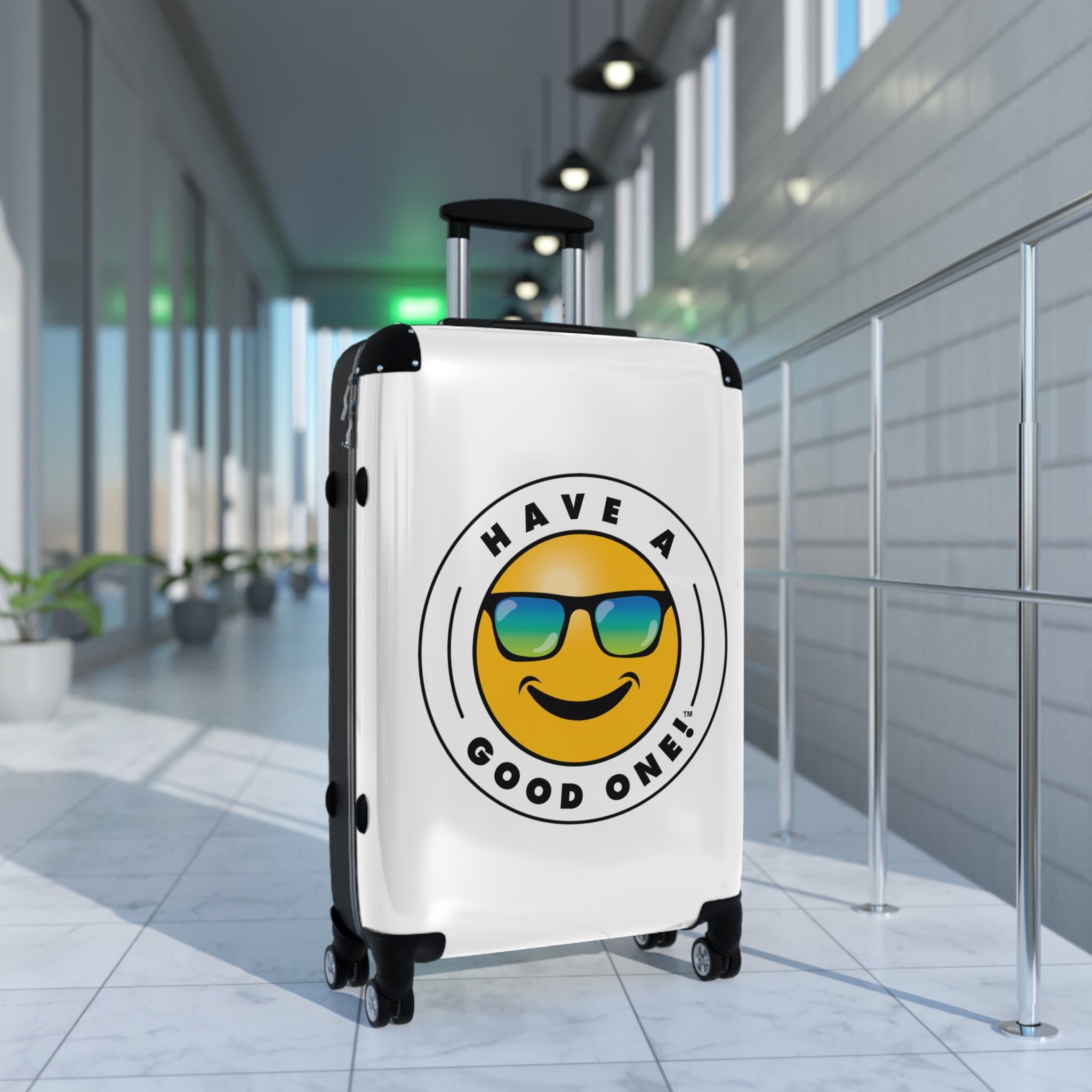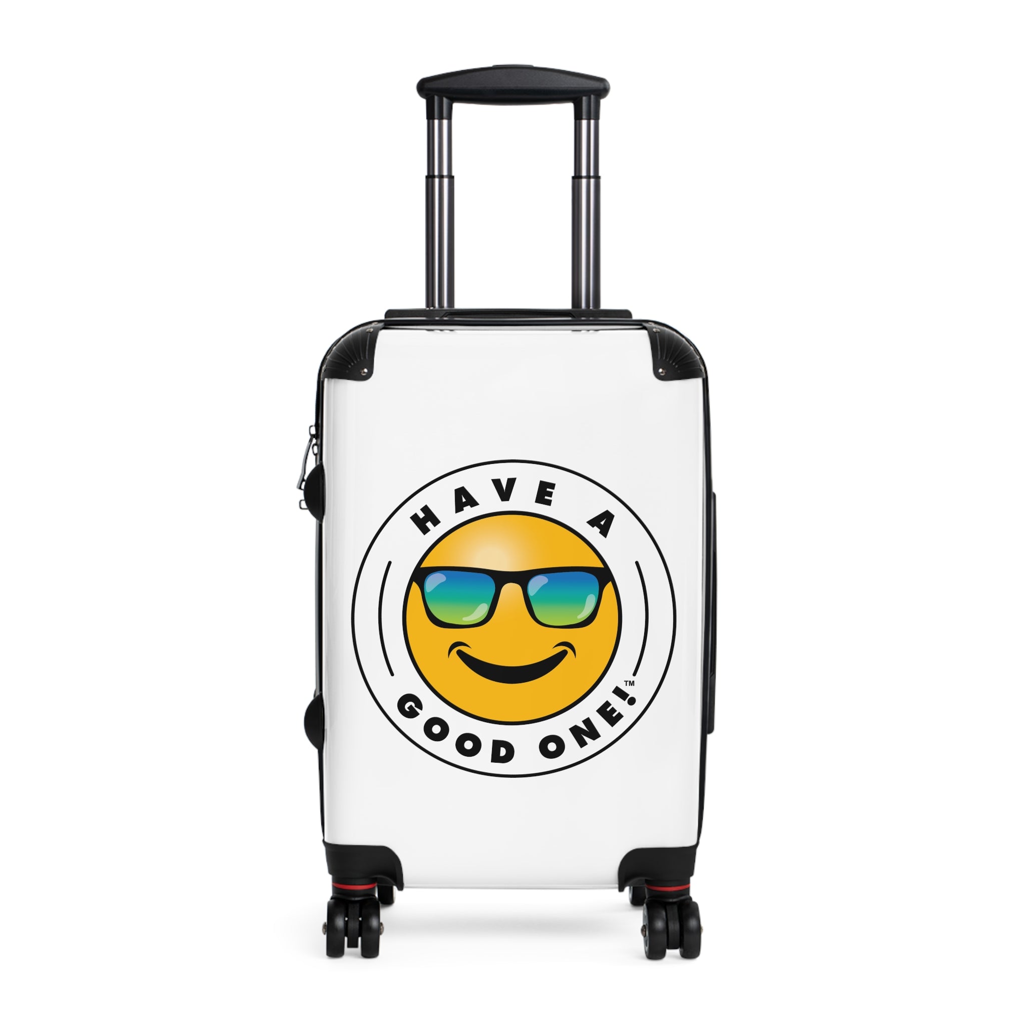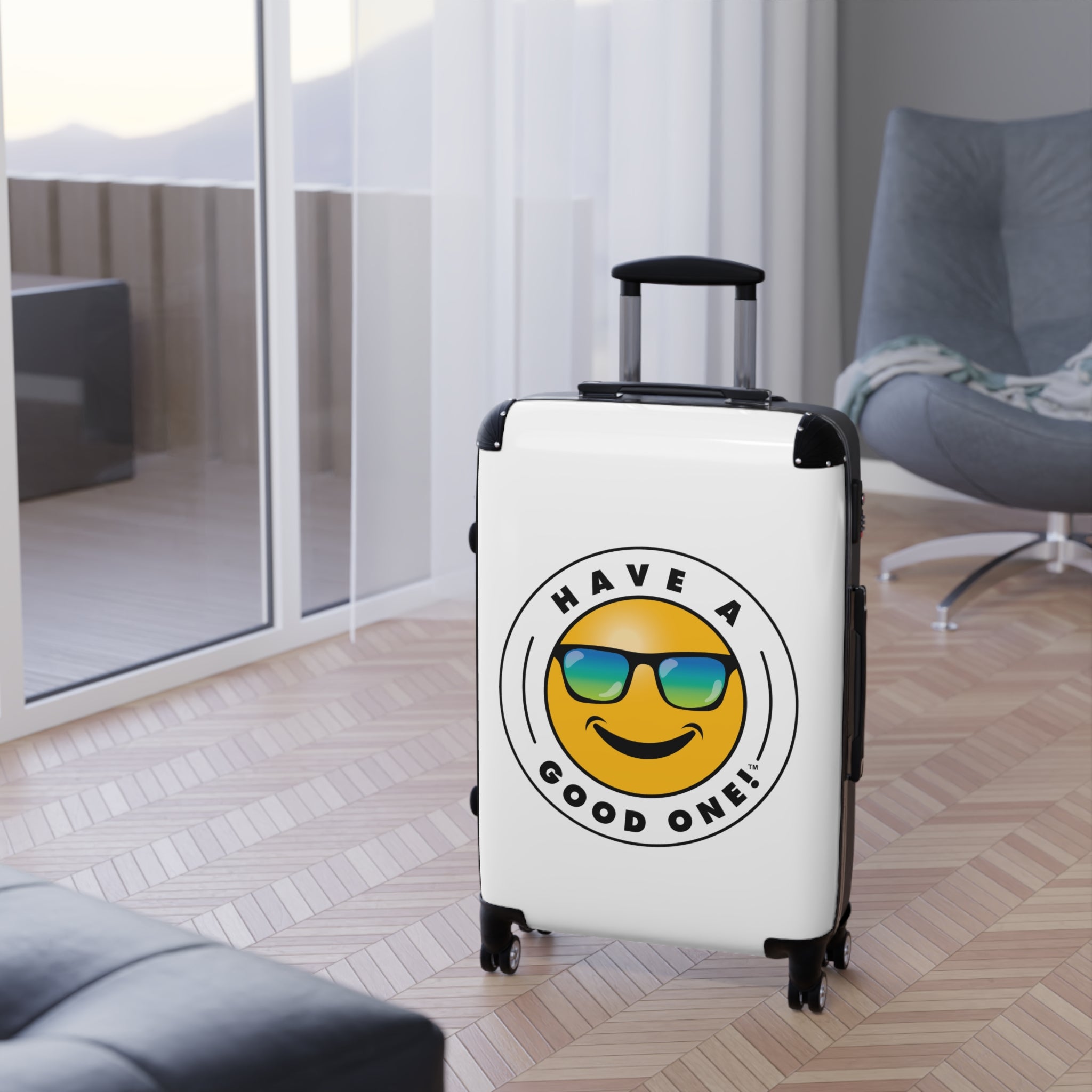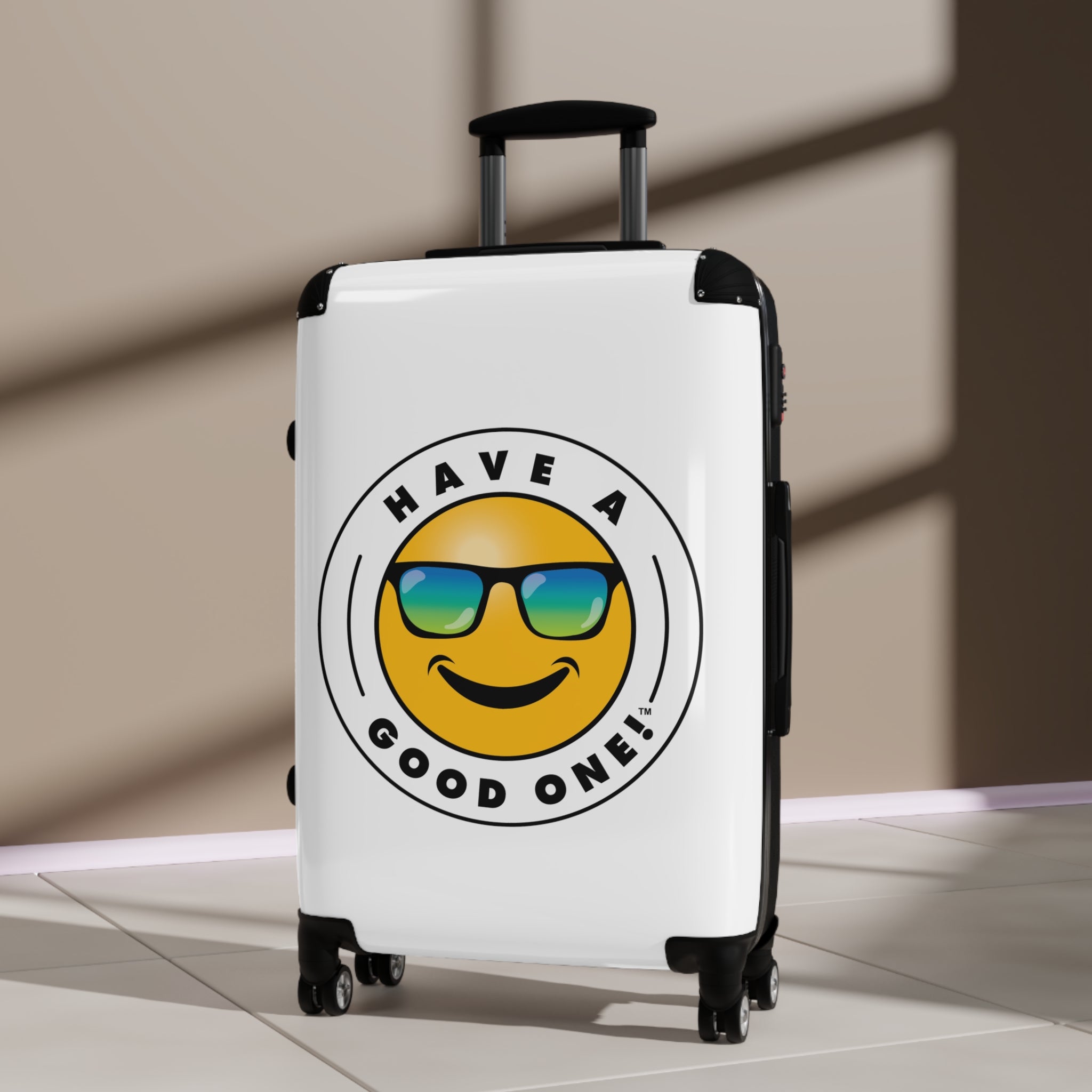 Grab N’ Go Have A Good One! Suitcases - White Color With Blue Green Have A Good One! Logo