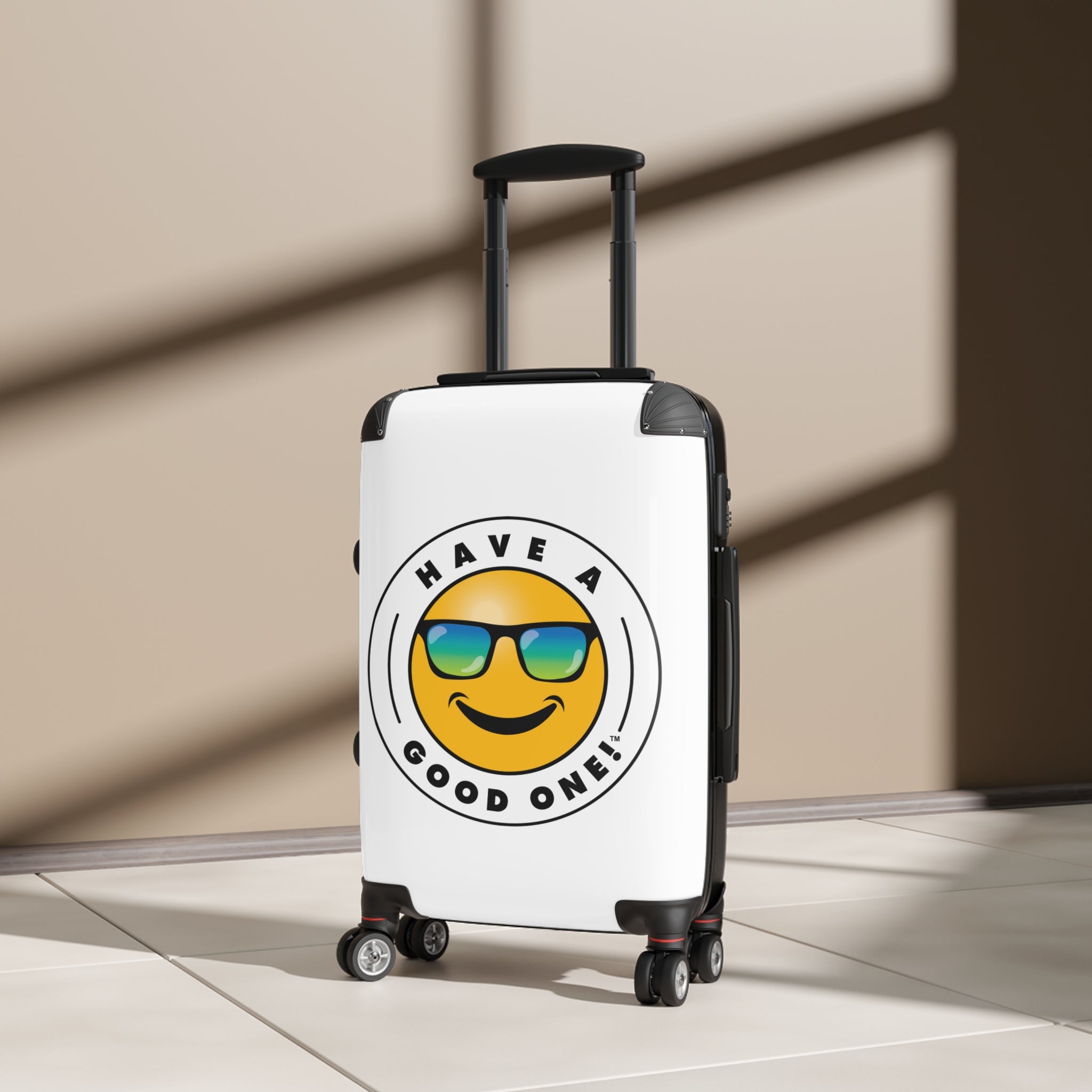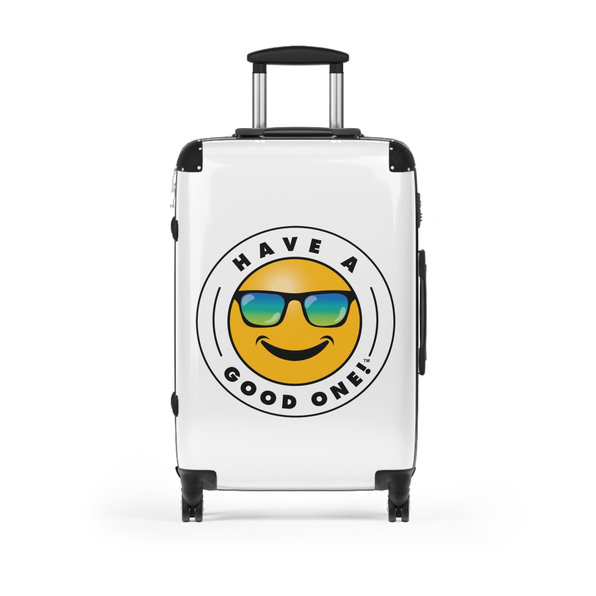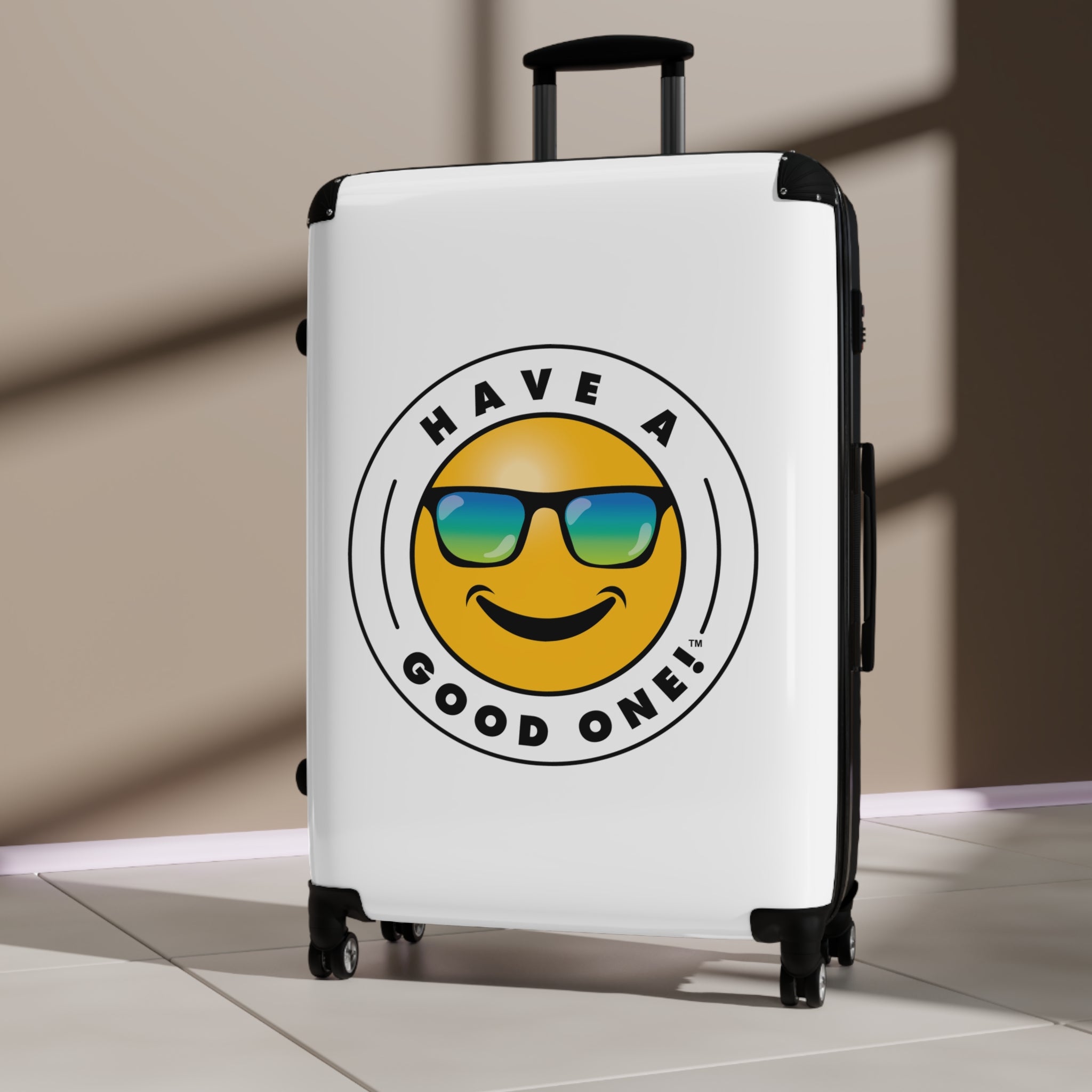 Grab N’ Go Have A Good One! Suitcases - White Color With Blue Green Have A Good One! Logo
