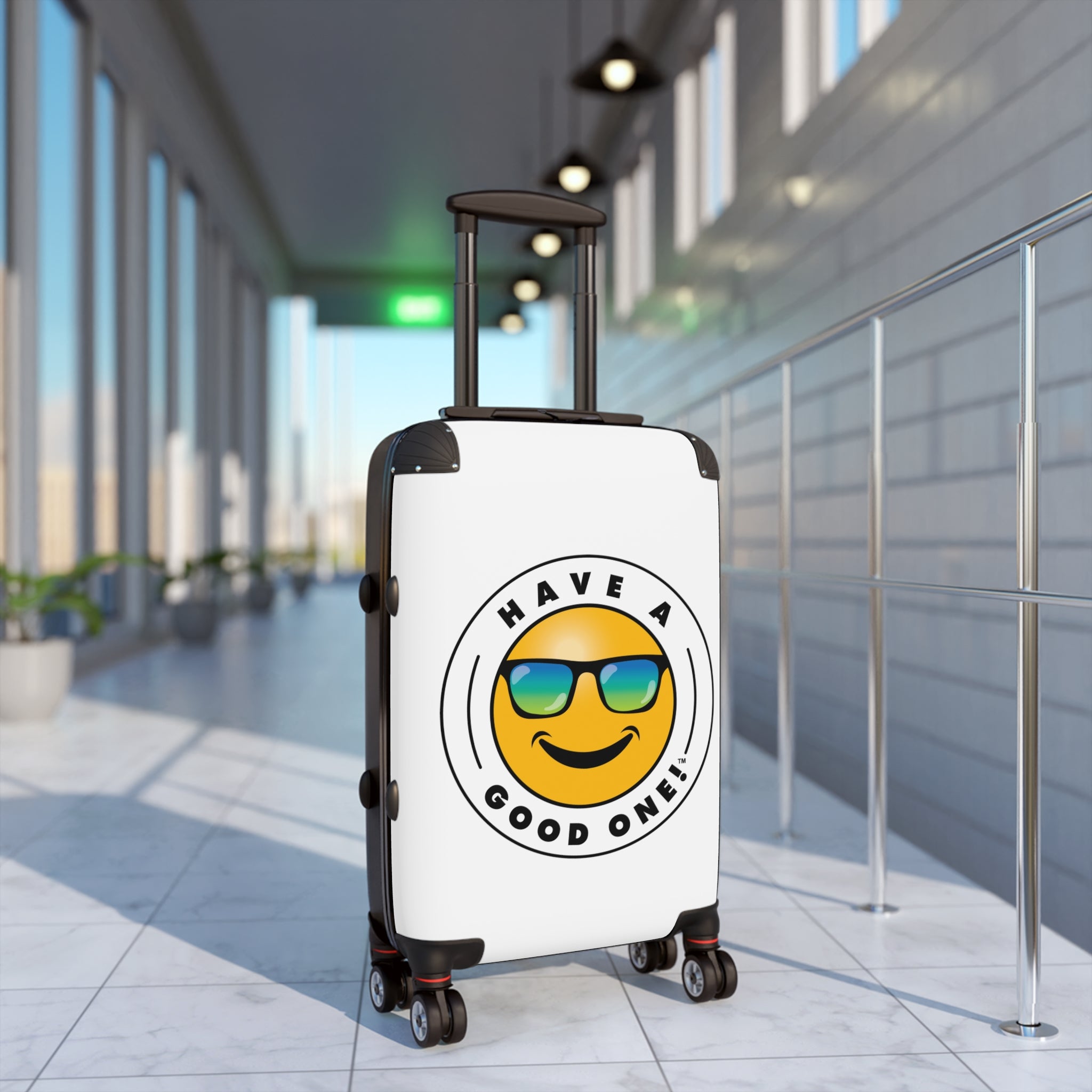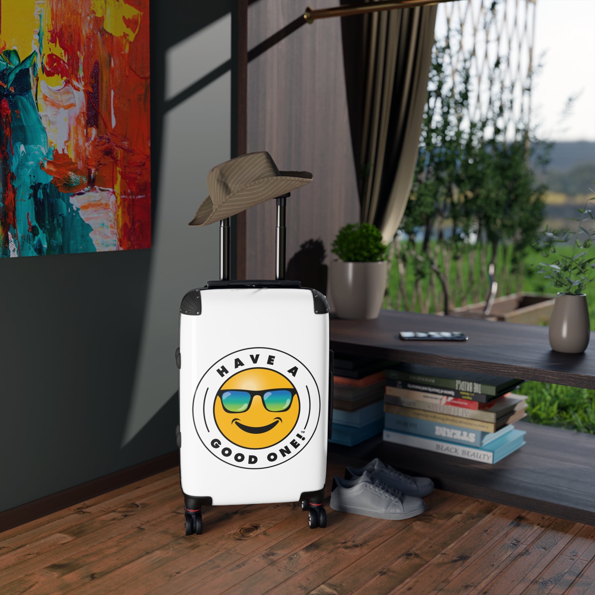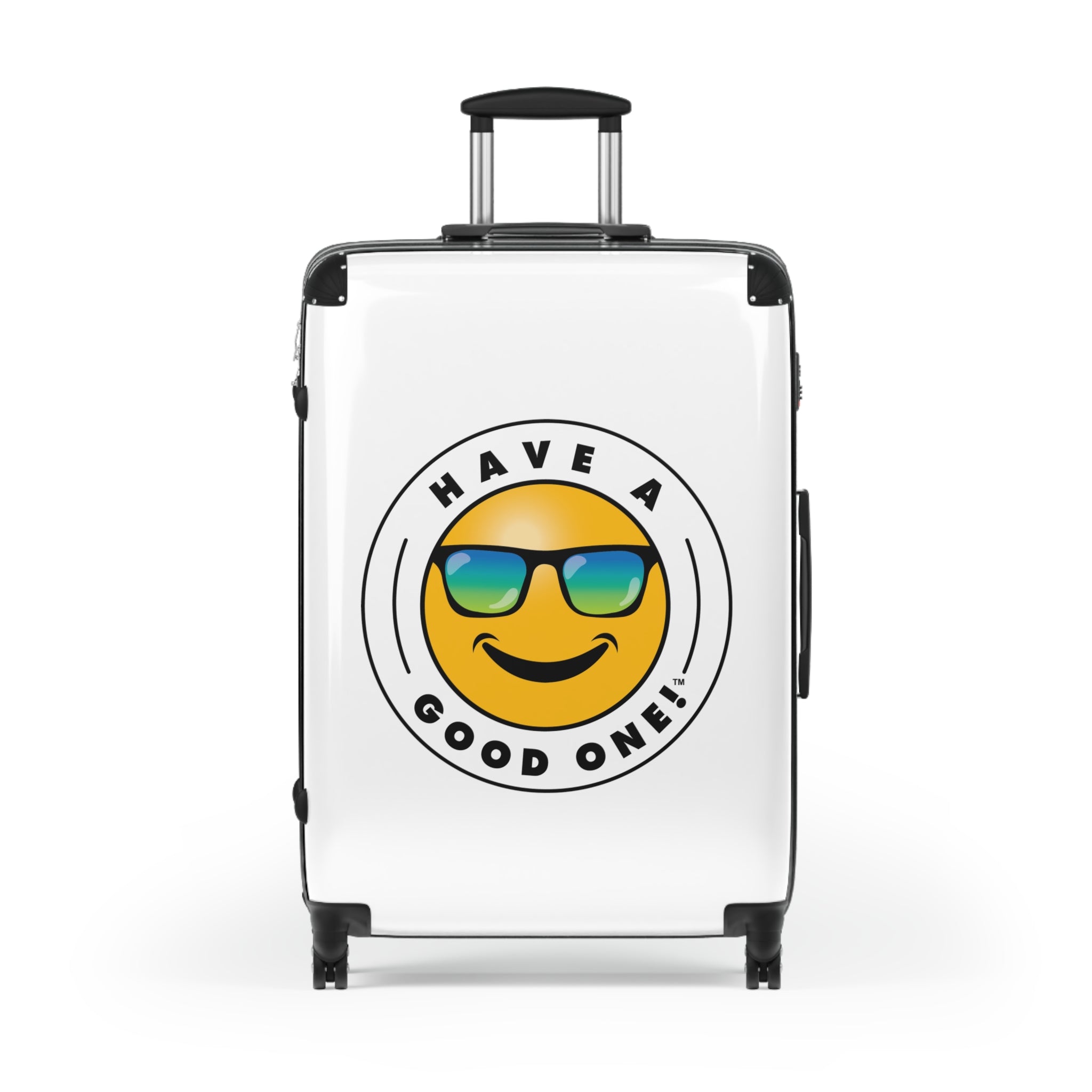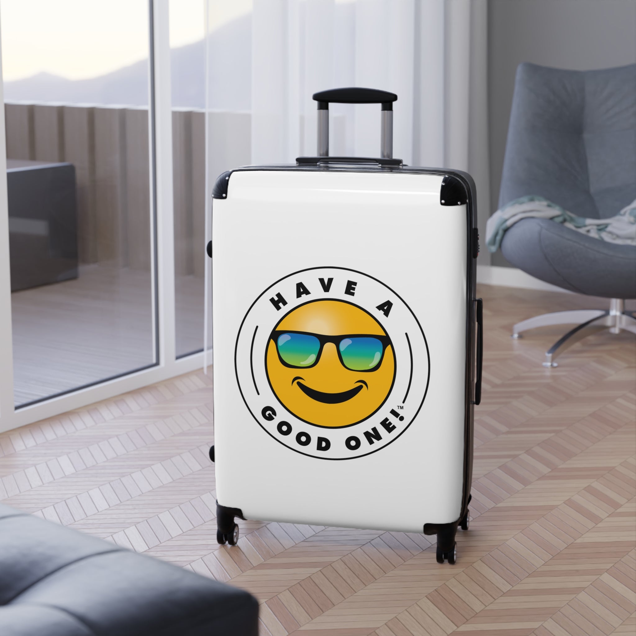 Grab N’ Go Have A Good One! Suitcases - White Color With Blue Green Have A Good One! Logo