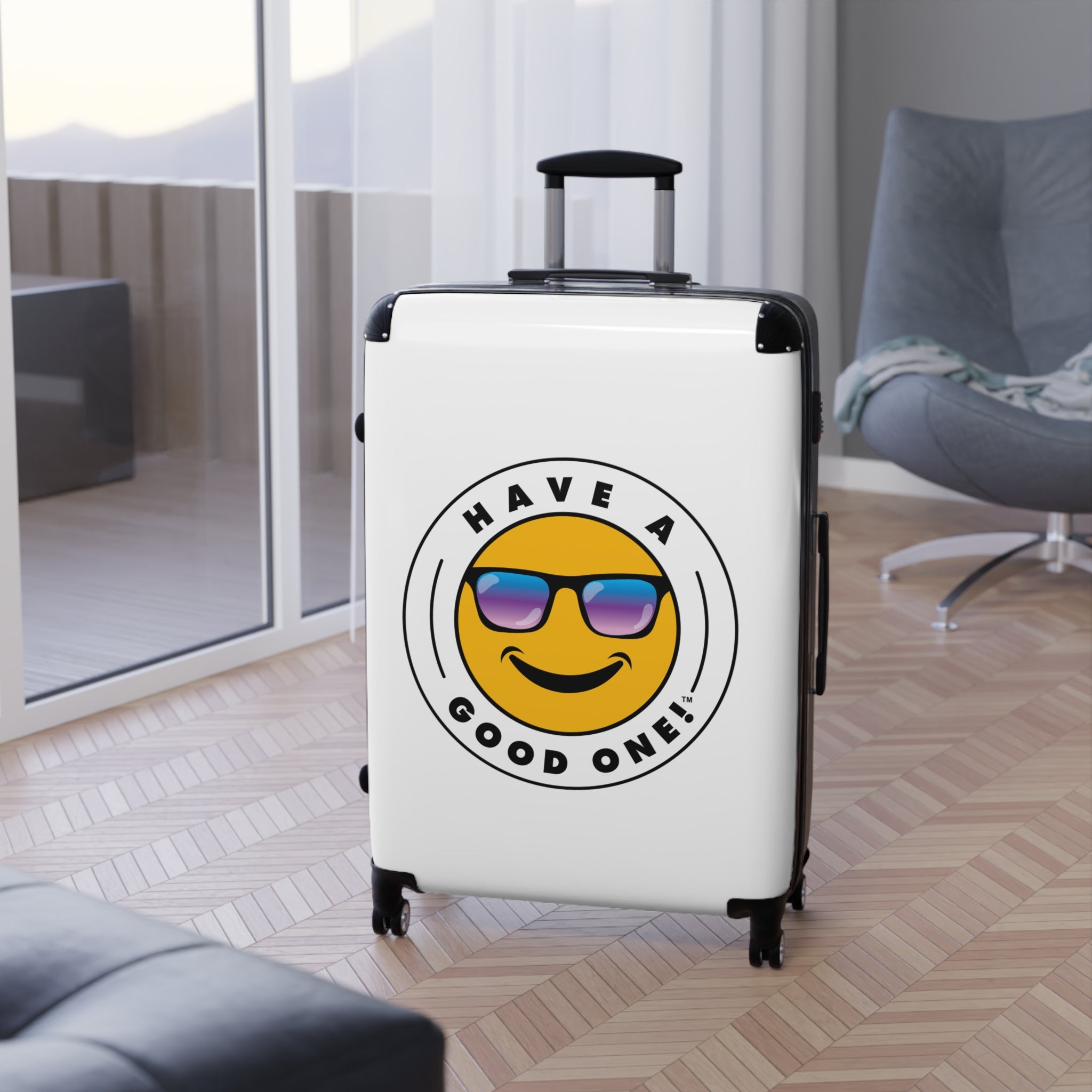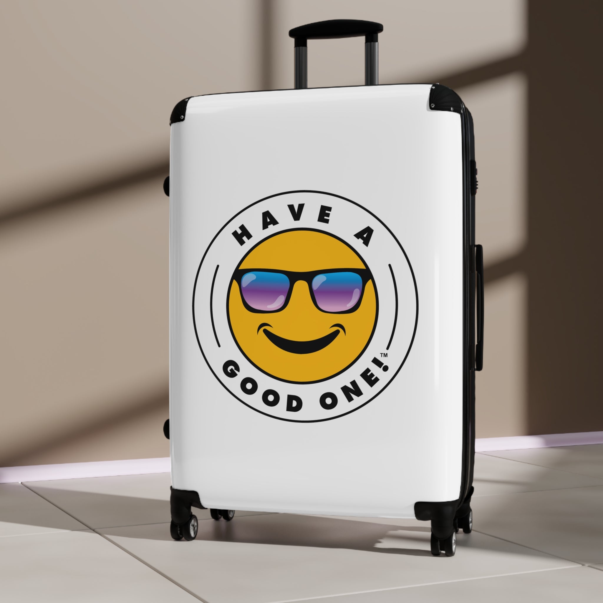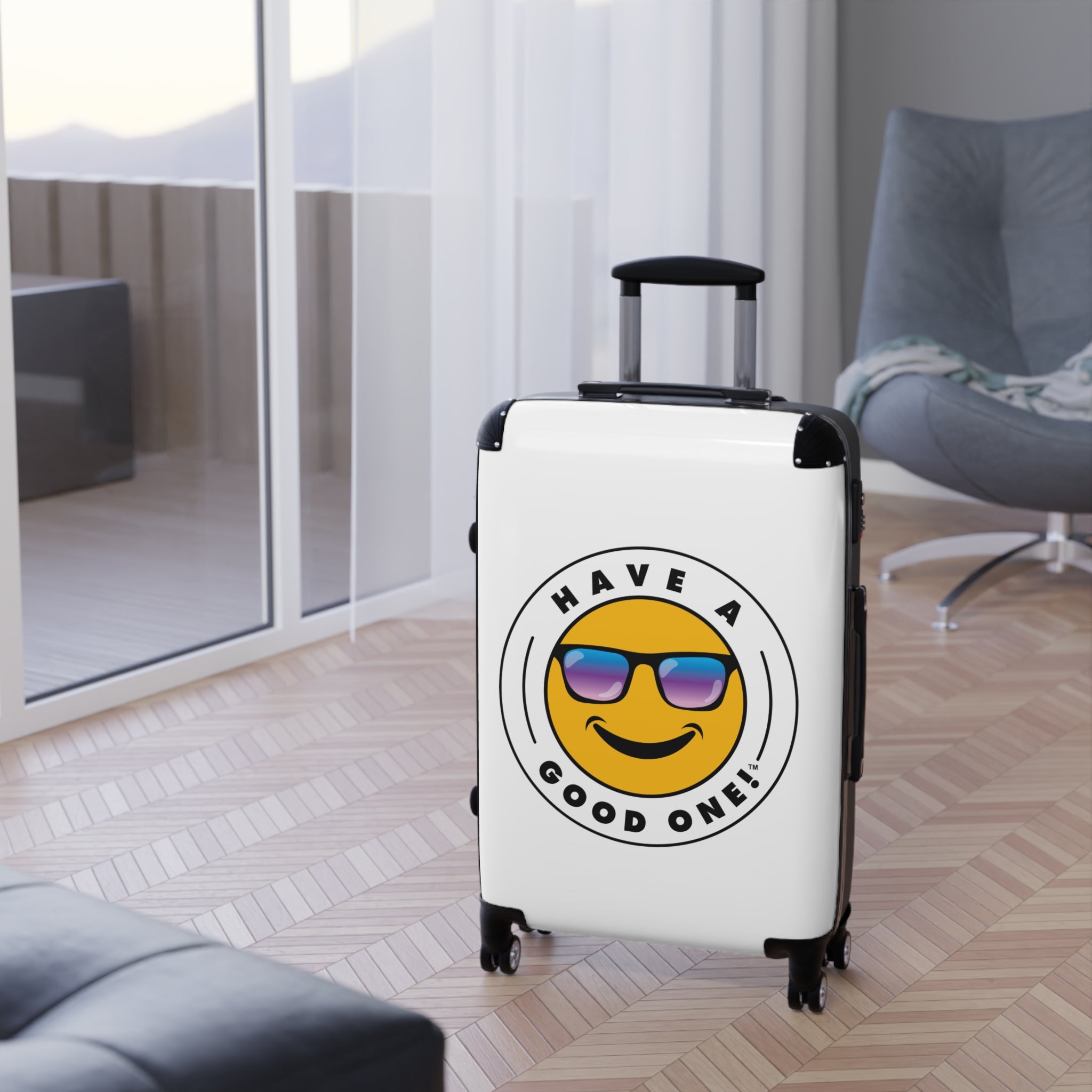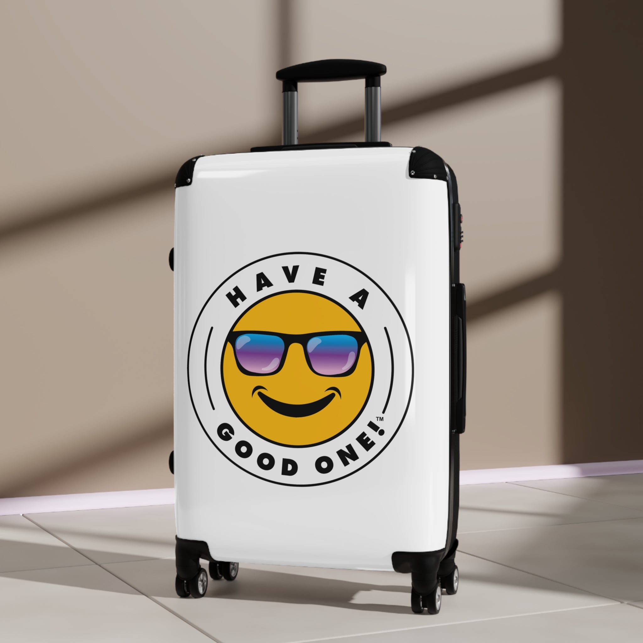 Grab N’ Go Have A Good One! Suitcases - White Color With Blue Purple Have A Good One! Logo