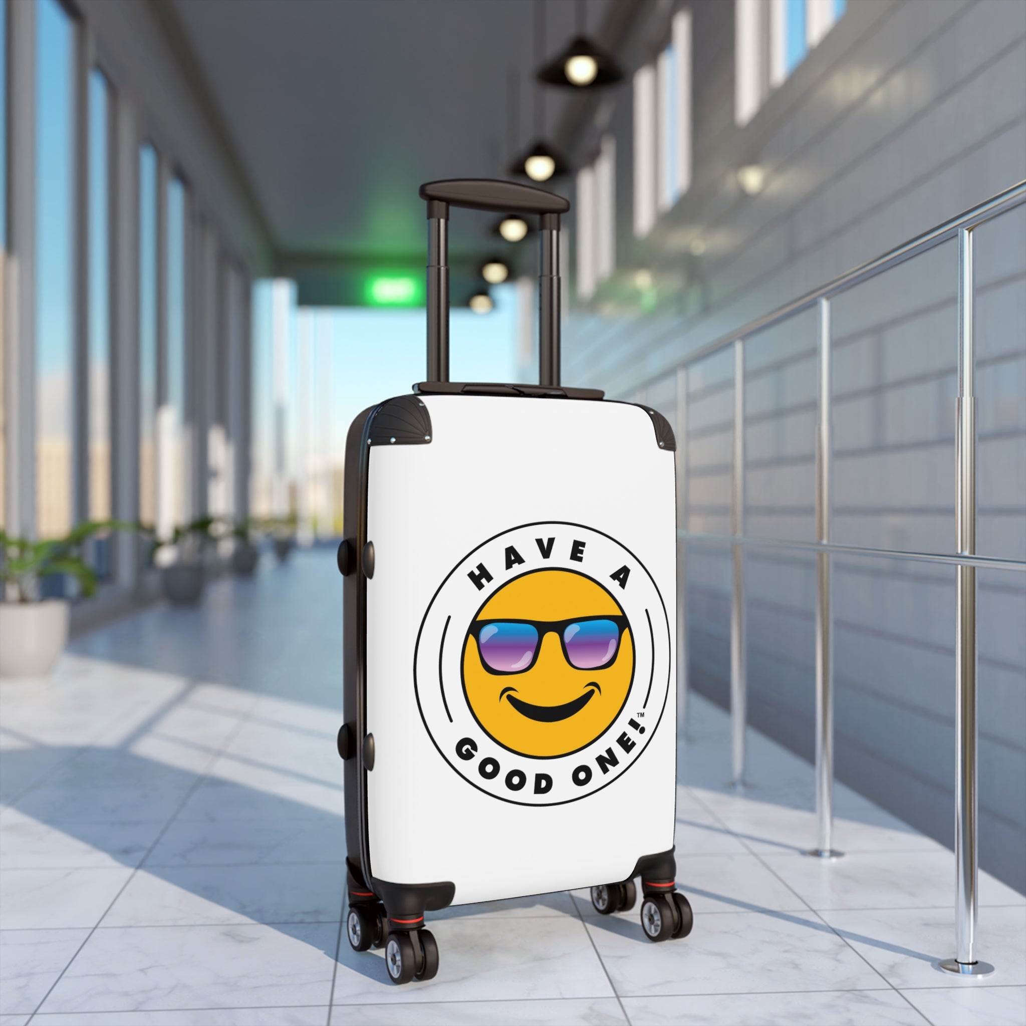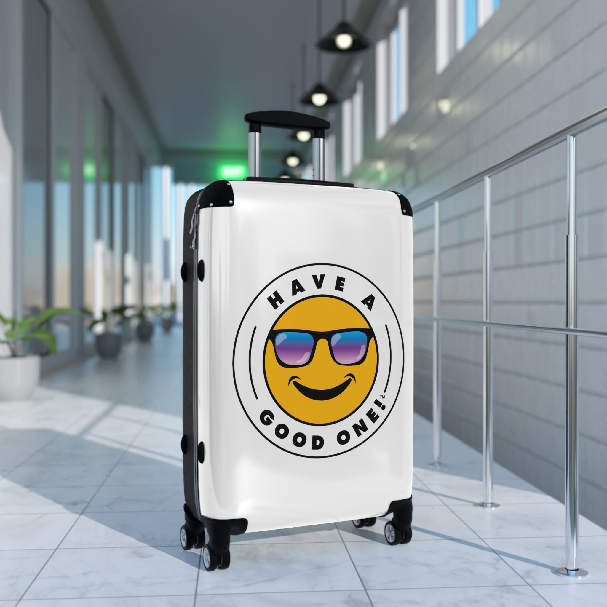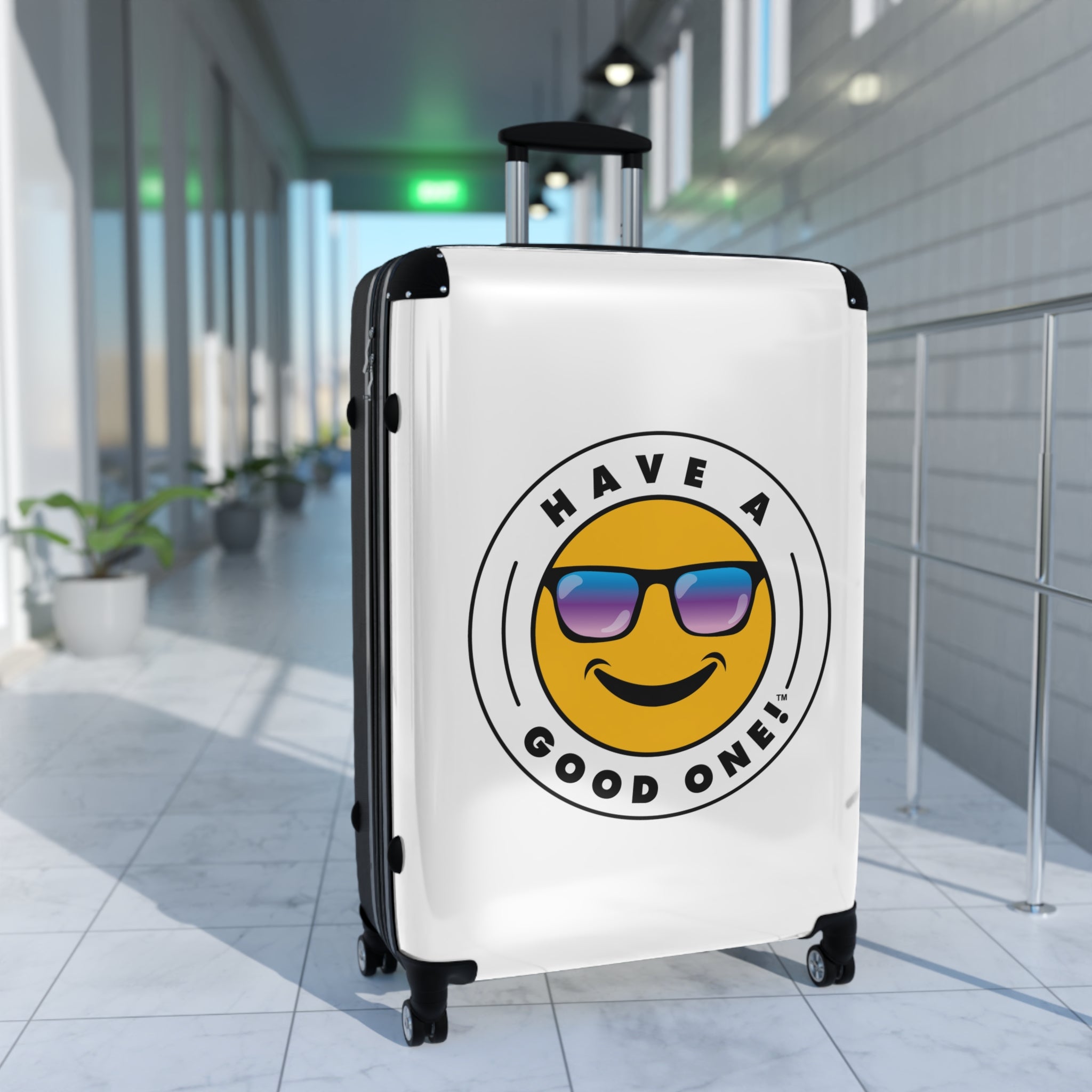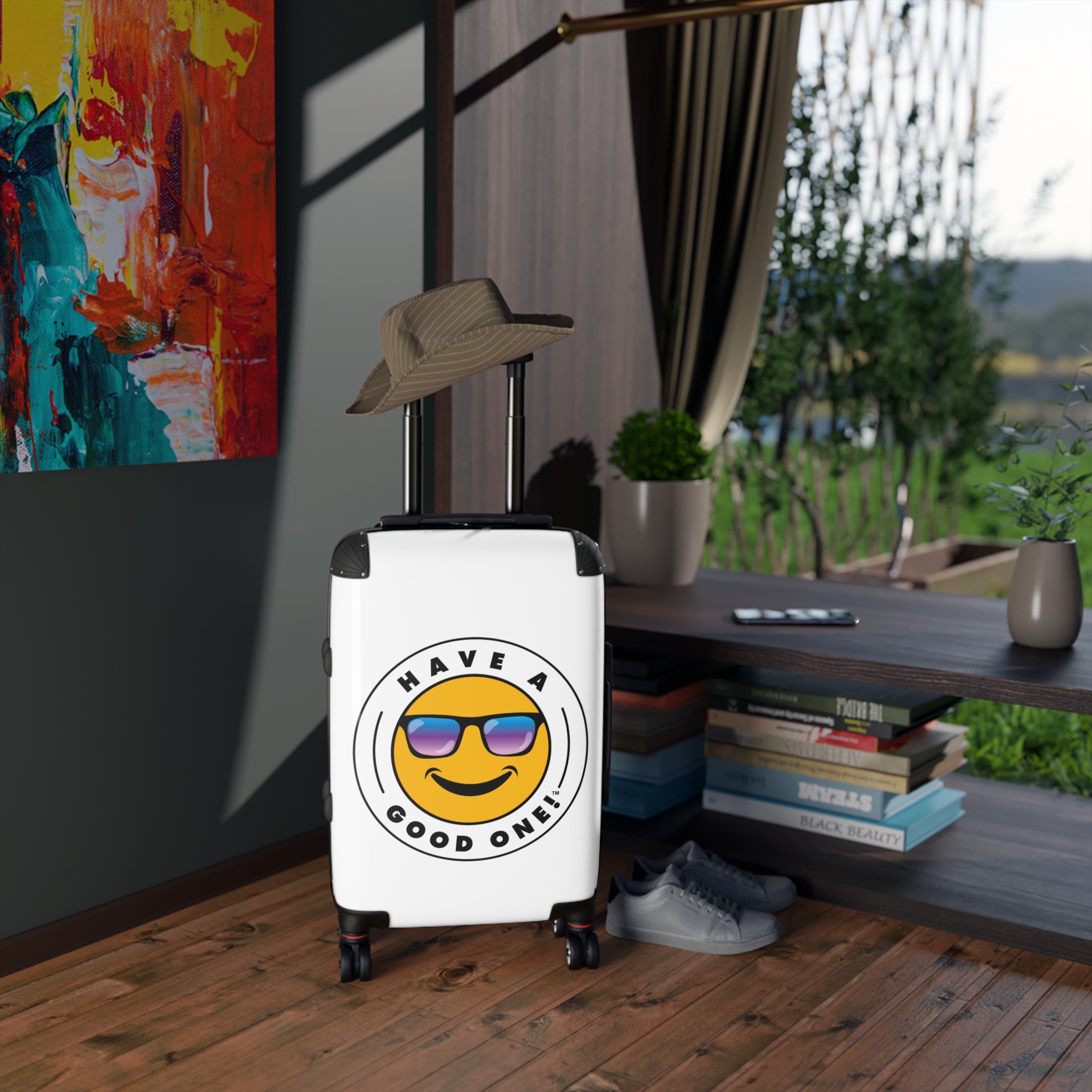 Grab N’ Go Have A Good One! Suitcases - White Color With Blue Purple Have A Good One! Logo