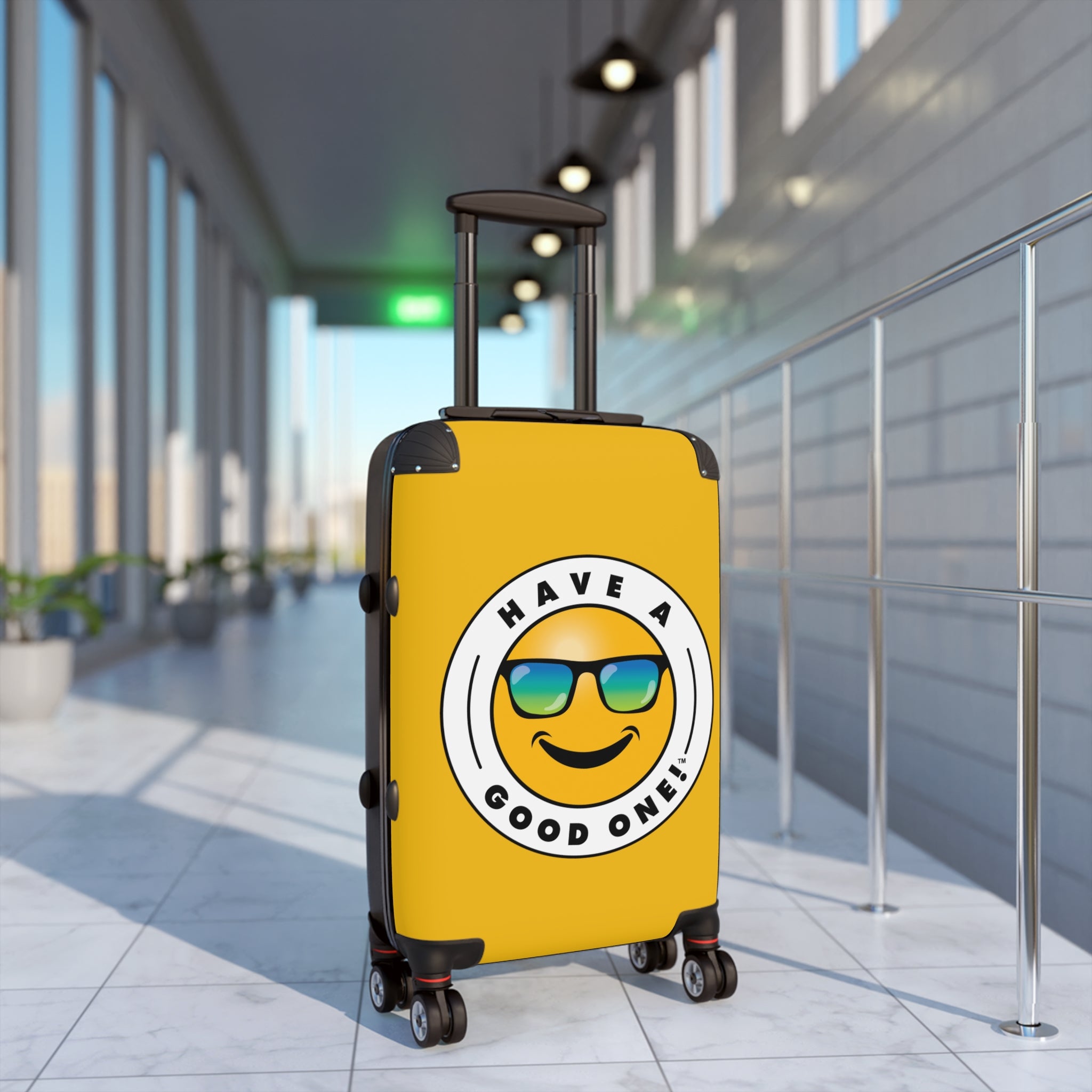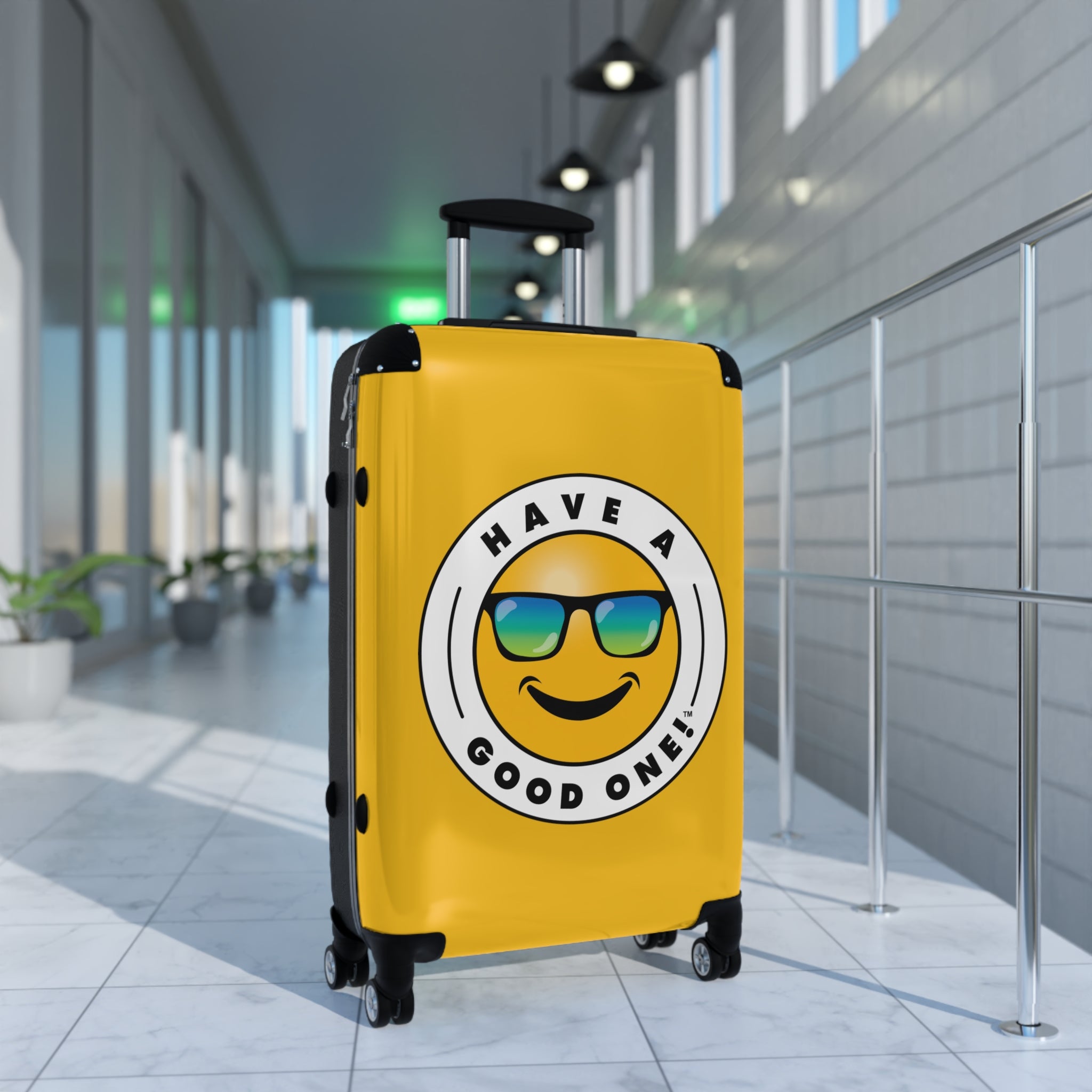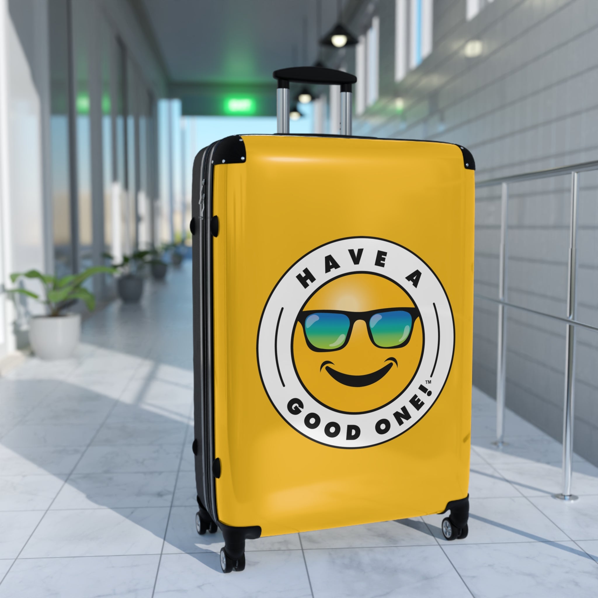 Grab N’ Go Have A Good One! Suitcases - Yellow Color With Blue Green Have A Good One! Logo