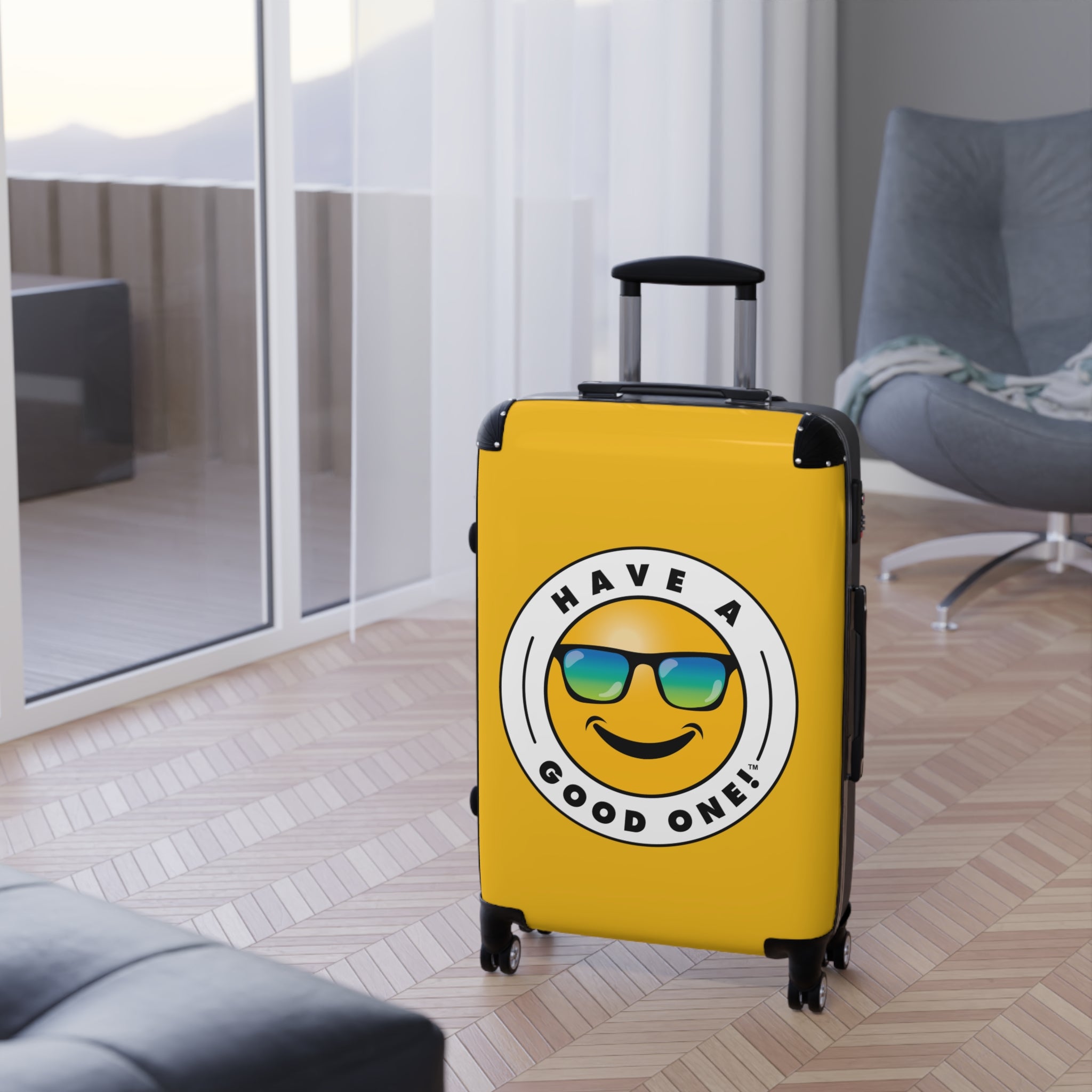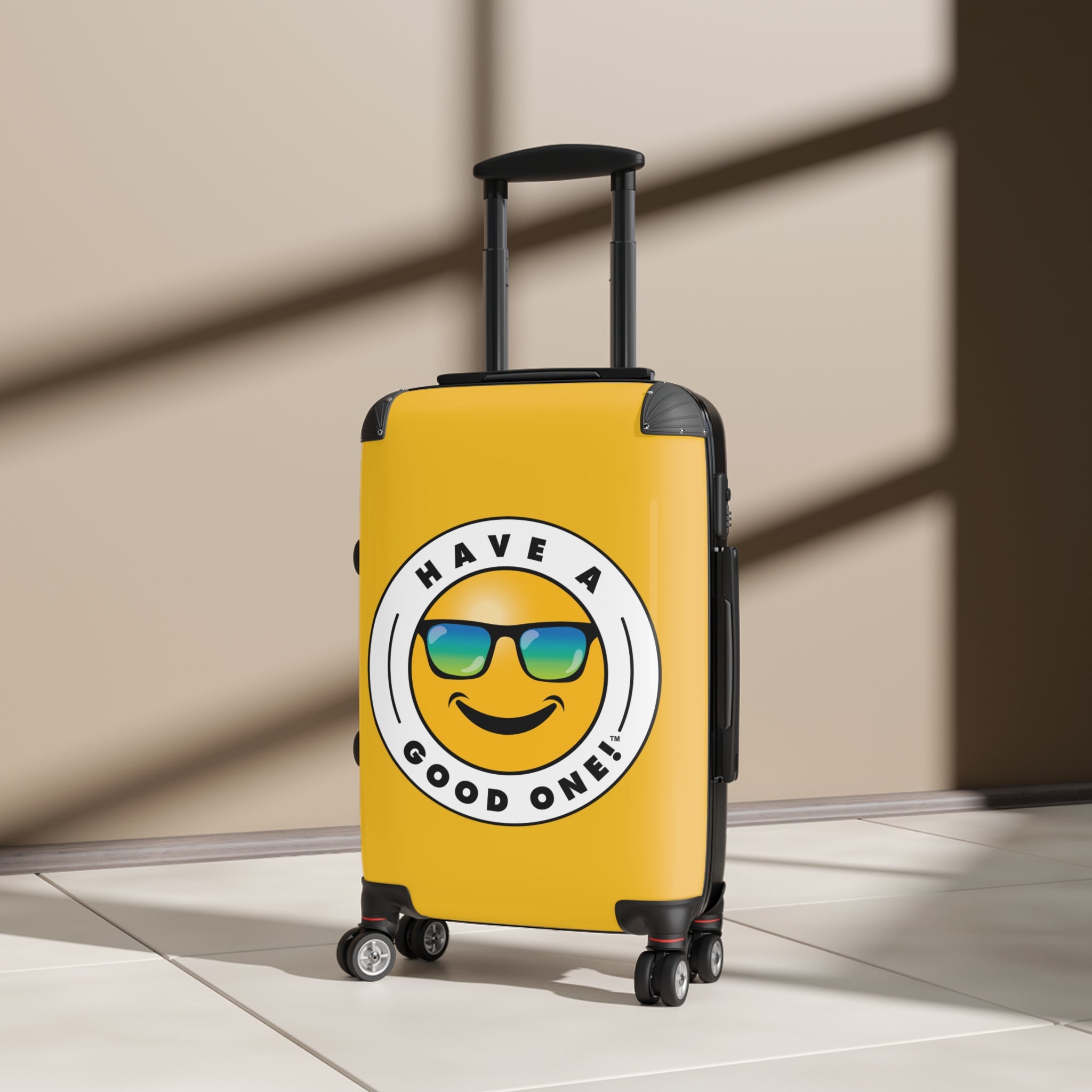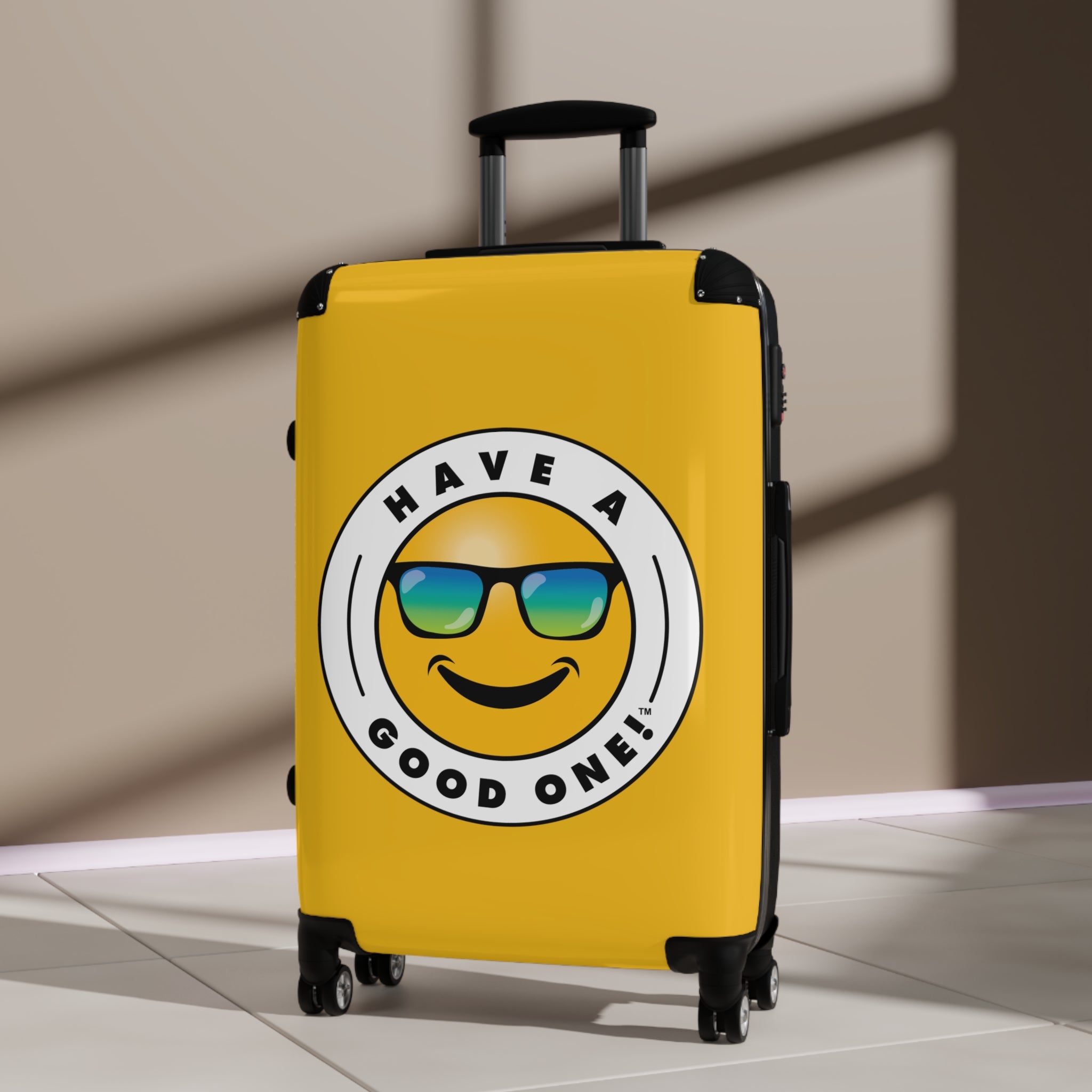Grab N’ Go Have A Good One! Suitcases - Yellow Color With Blue Green Have A Good One! Logo
