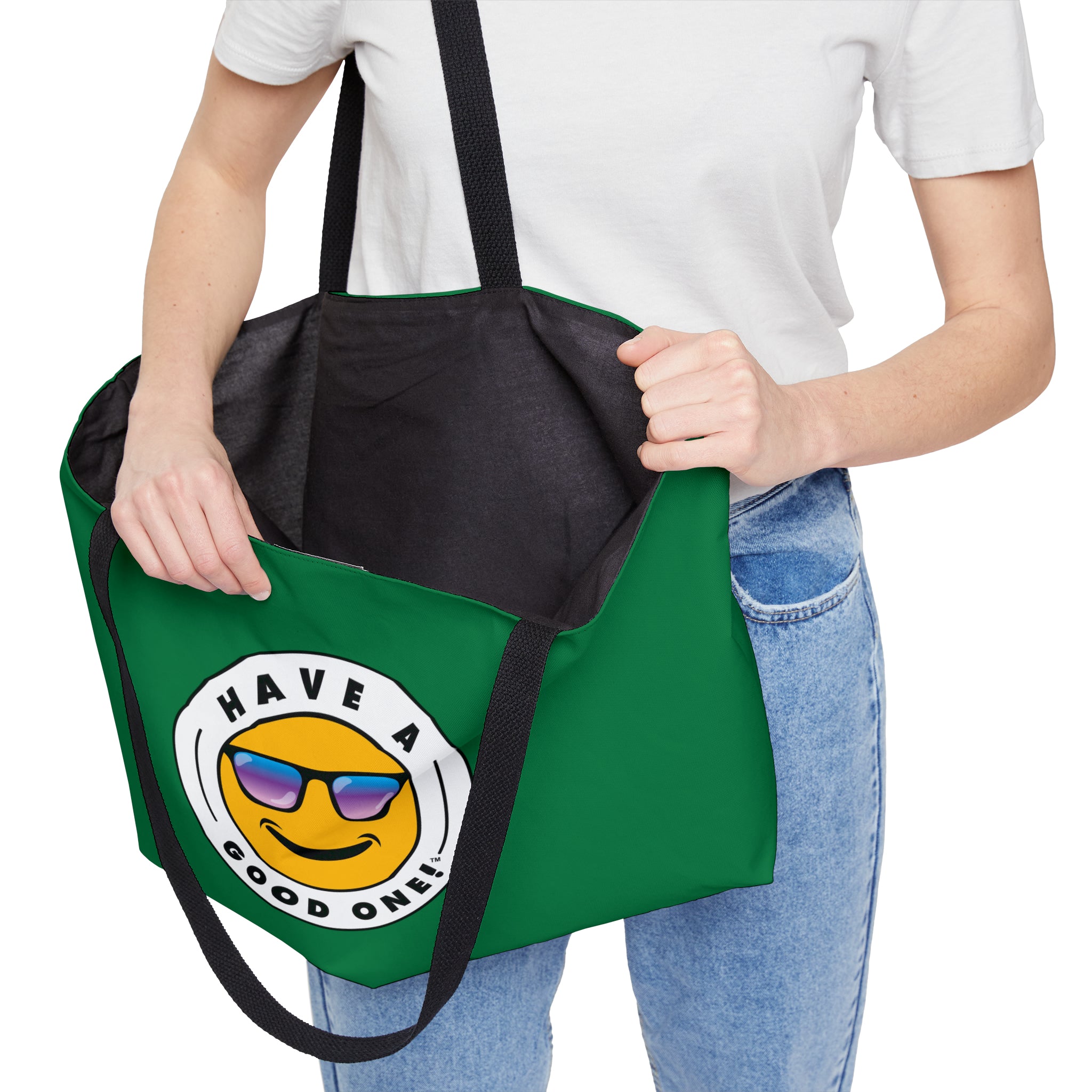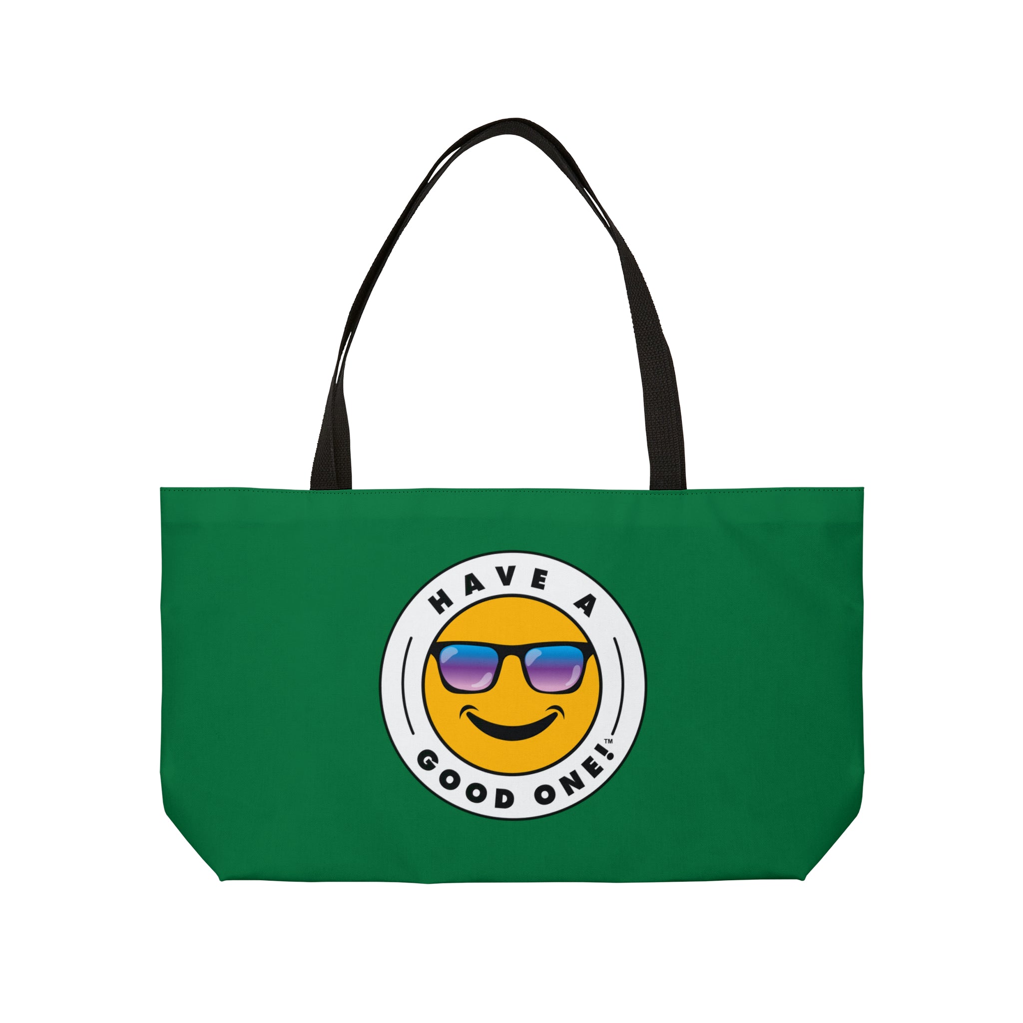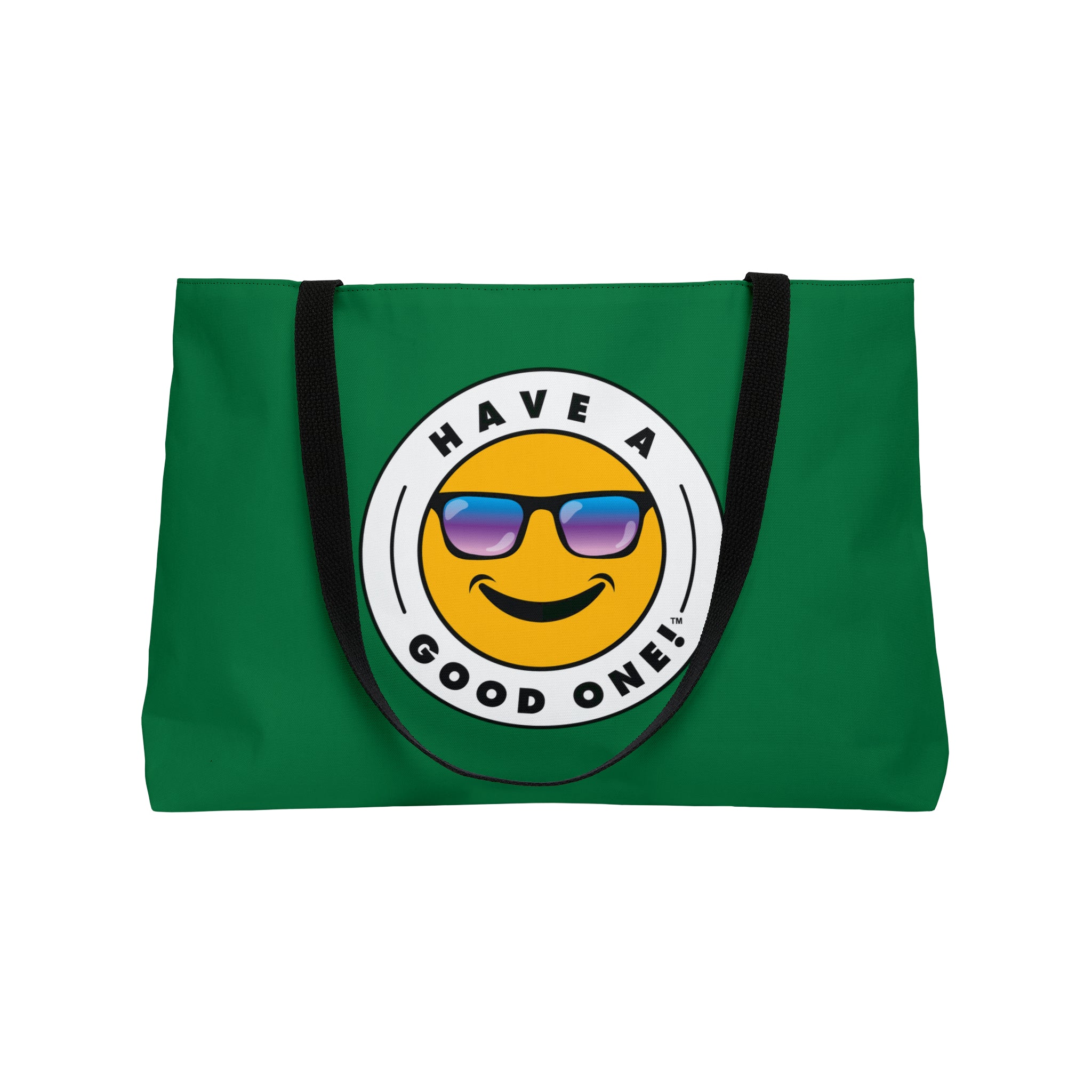 Pack up your belongings and head out to the beach, store, errands, pick up the kids up, head to the gym, travel or go just about anywhere! This versatile bag is light weight and made with very high quality craftsmanship. The logo is on the front and back. This tote bag is made from polyester so it is as durable as it is fun and fashionable. Its t-bottom construction and black handles give it a sleek, classic look. Get packing and go with the Weekender Tote Bag! Wherever you are headed this bag with make it a more memorable and special trip! We know you will Have A Good One wherever life takes you with this fun tote bag!