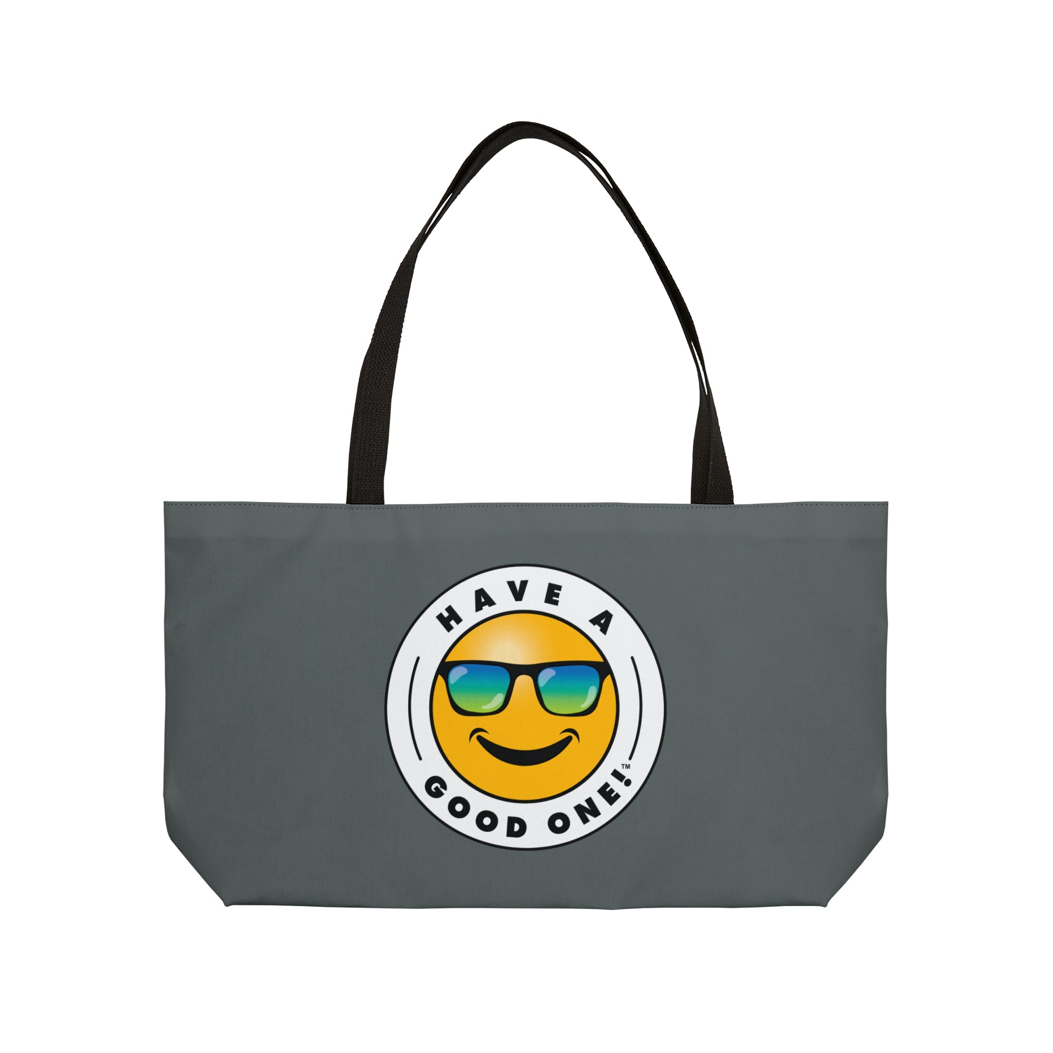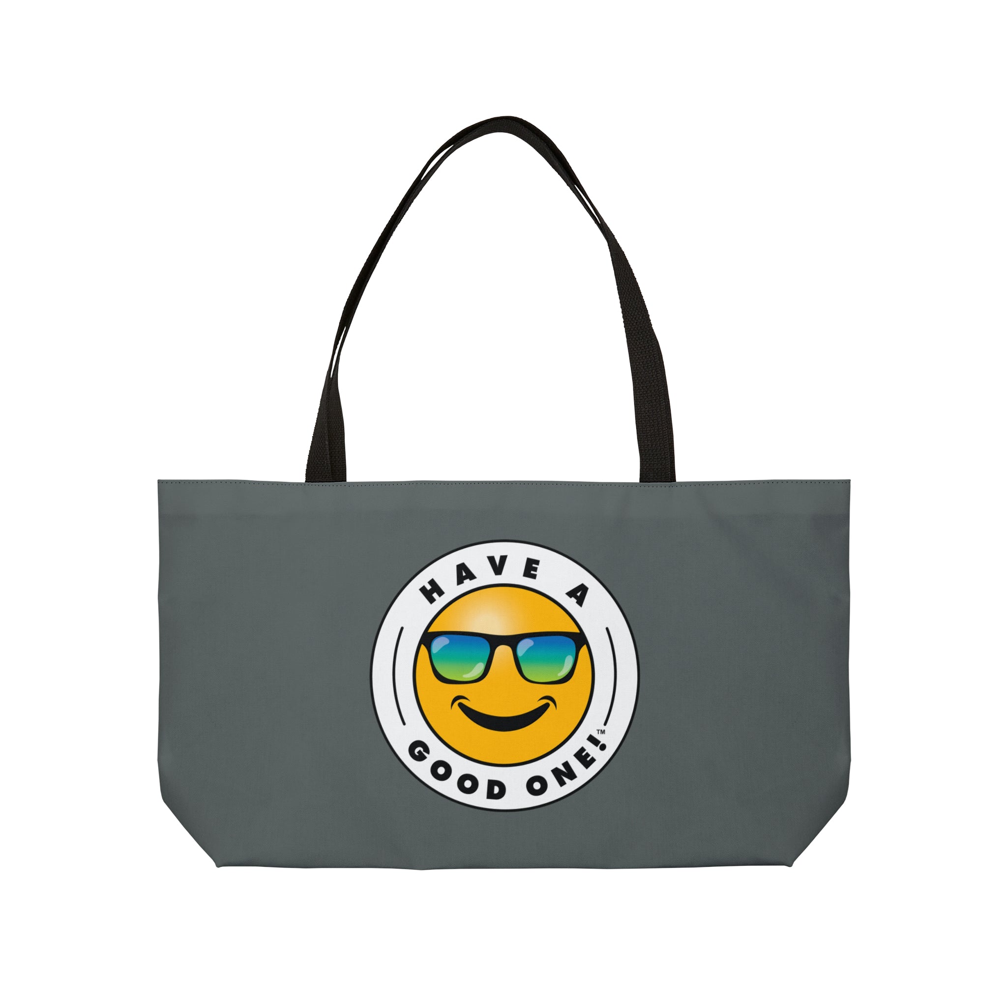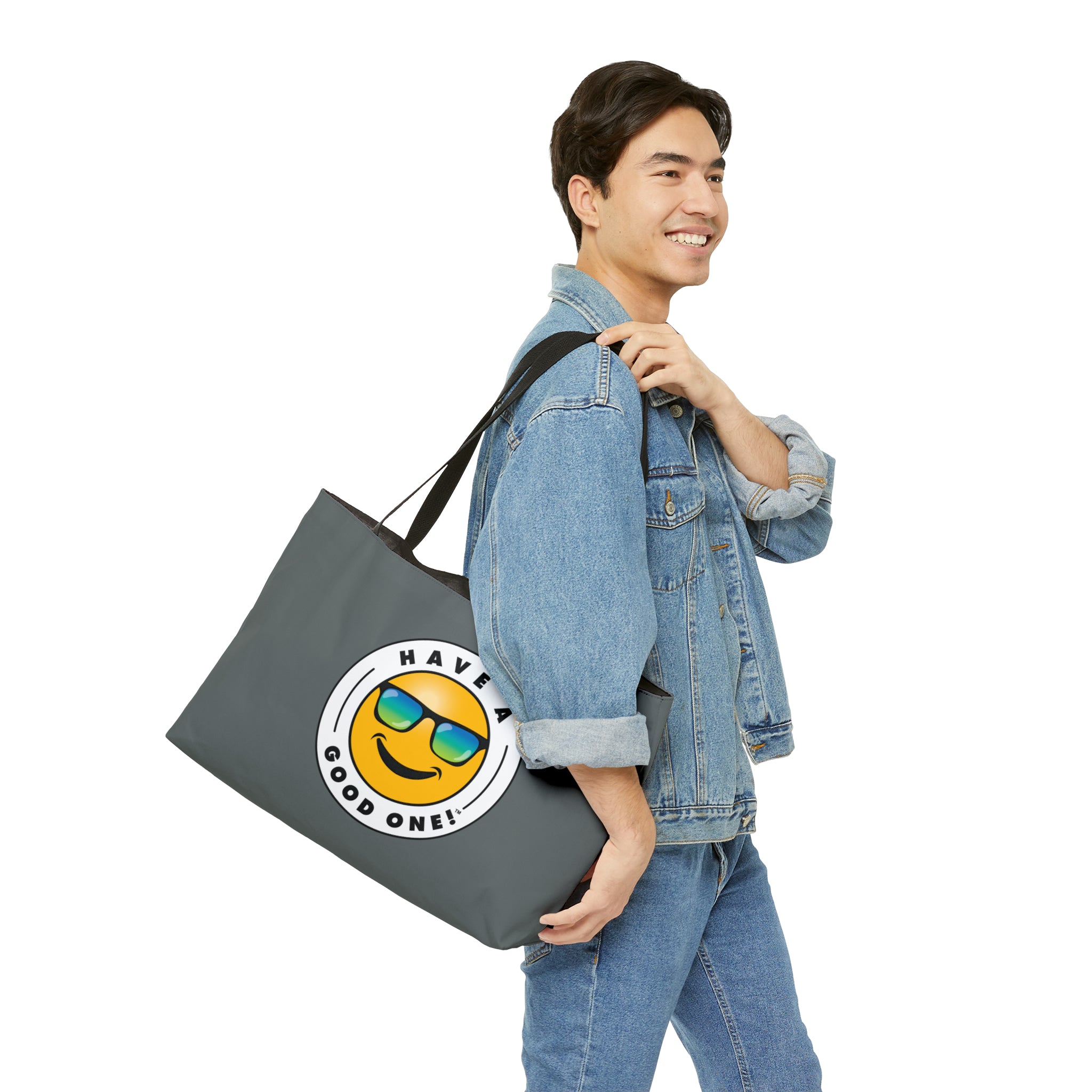 Pack up your belongings and head out to the beach, store, errands, pick up the kids up, head to the gym, travel or go just about anywhere! This versatile bag is light weight and made with very high quality craftsmanship. The logo is on the front and back. This tote bag is made from polyester so it is as durable as it is fun and fashionable. Its t-bottom construction and black handles give it a sleek, classic look. Get packing and go with the Weekender Tote Bag! Wherever you are headed this bag with make it a more memorable and special trip! We know you will Have A Good One wherever life takes you with this fun tote bag!