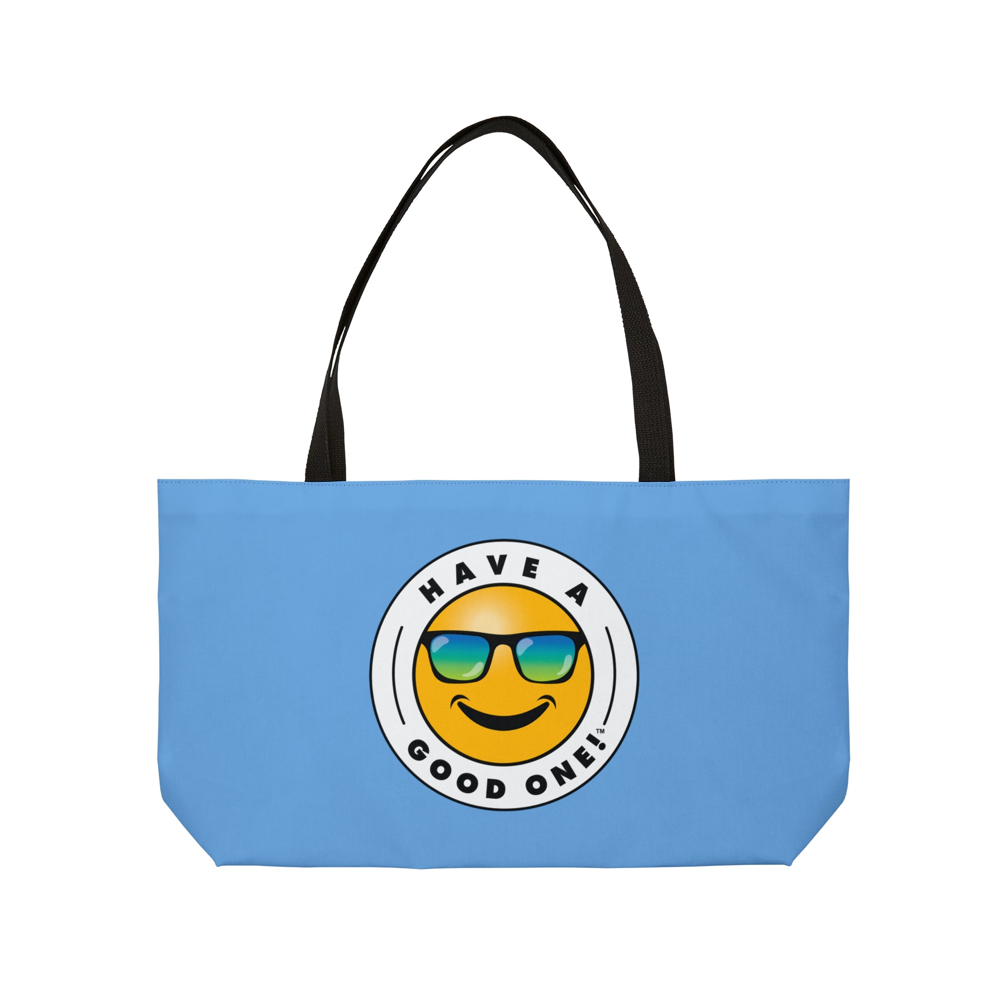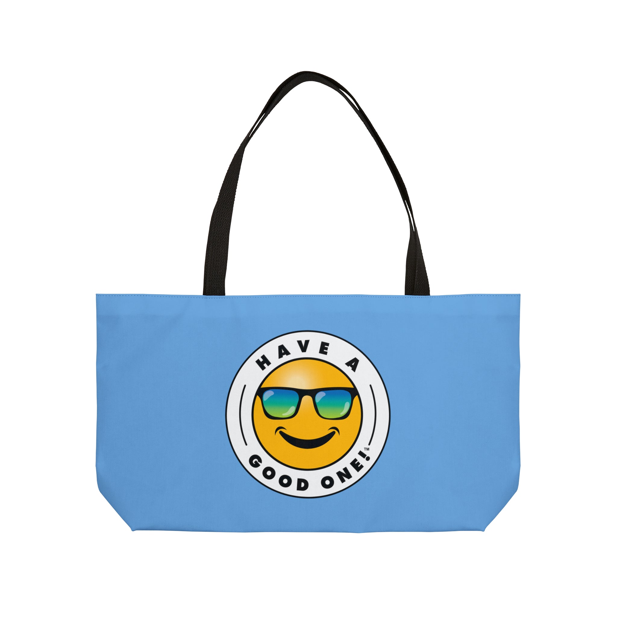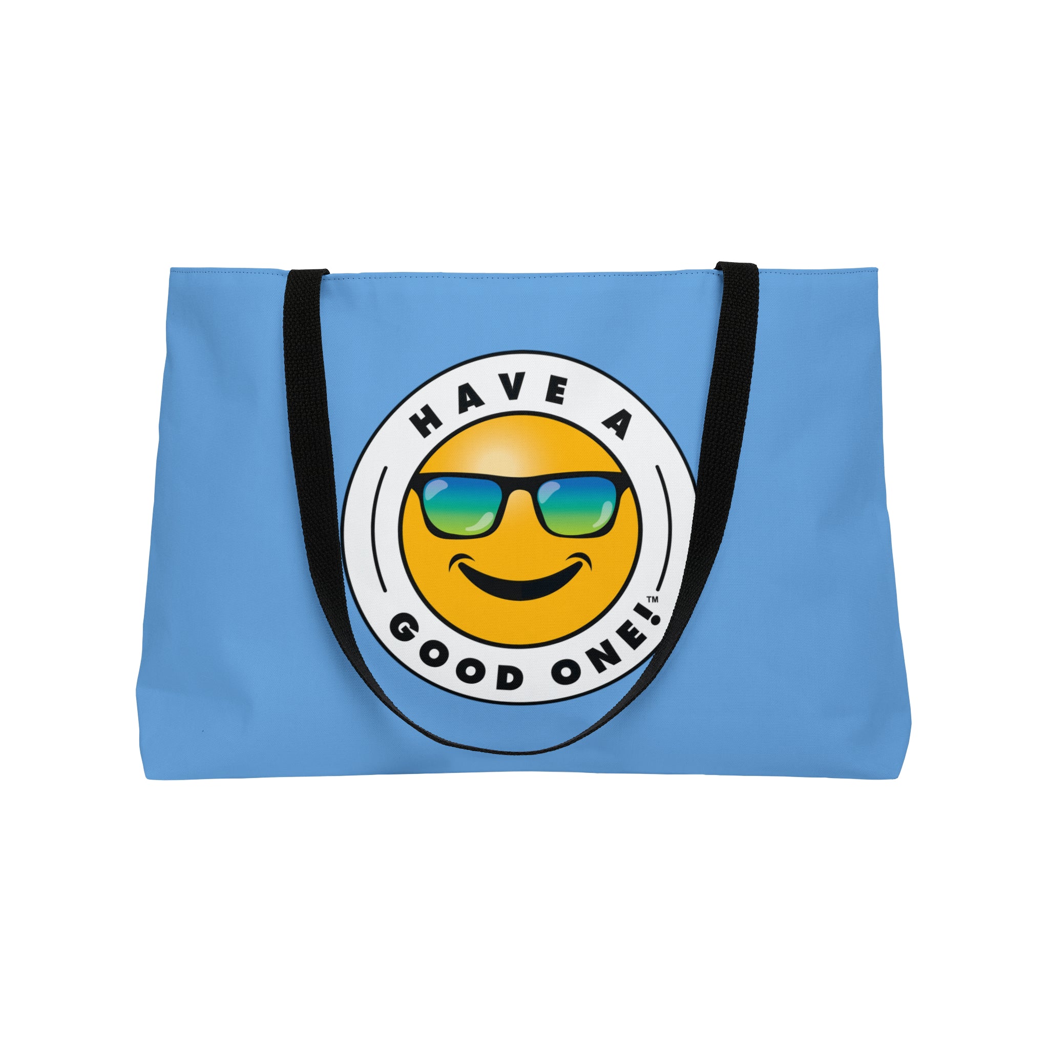 Pack up your belongings and head out to the beach, store, errands, pick up the kids up, head to the gym, travel or go just about anywhere! This versatile bag is light weight and made with very high quality craftsmanship. The logo is on the front and back. This tote bag is made from polyester so it is as durable as it is fun and fashionable. Its t-bottom construction and black handles give it a sleek, classic look. Get packing and go with the Weekender Tote Bag! Wherever you are headed this bag with make it a more memorable and special trip! We know you will Have A Good One wherever life takes you with this fun tote bag!