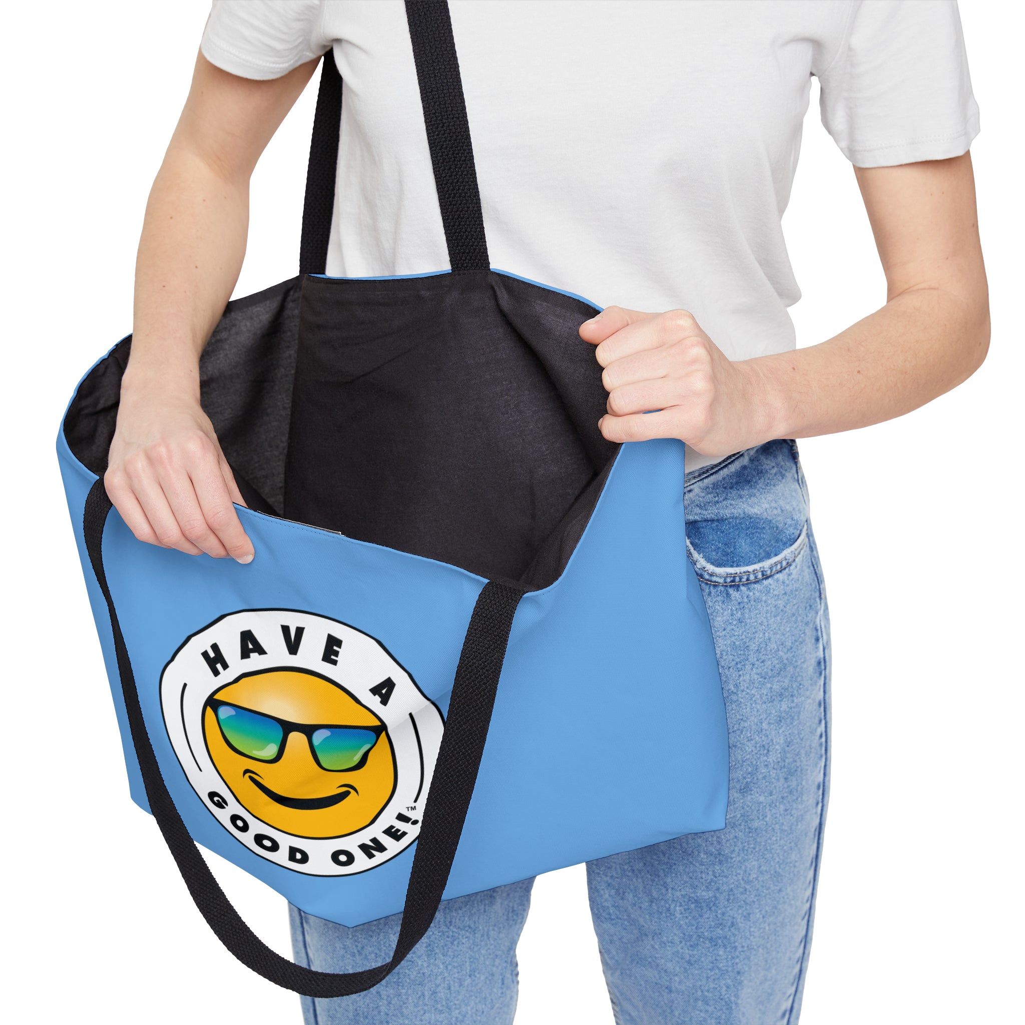 Extra Large Weekender Tote Bag - Light Blue Color with Blue and Green Logo