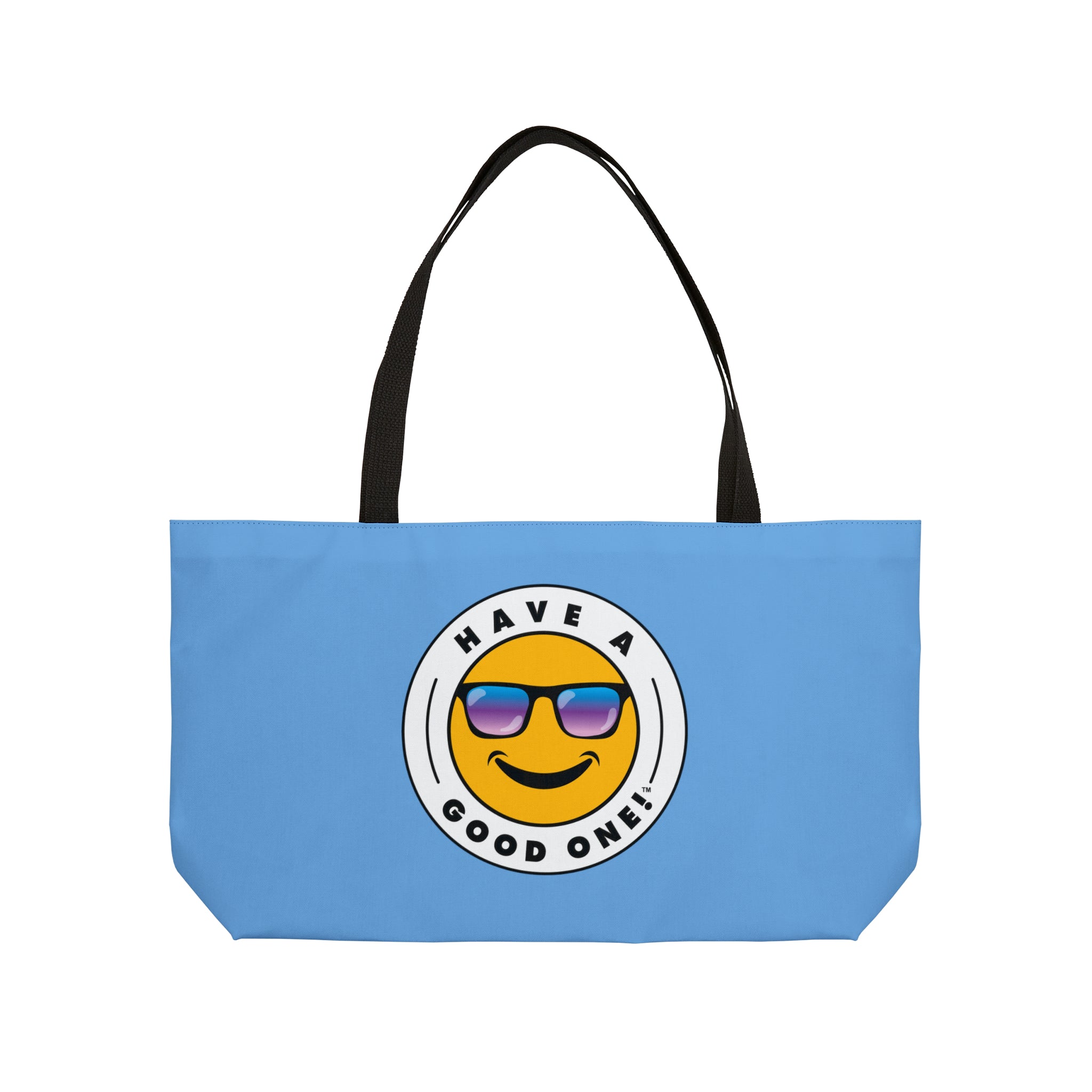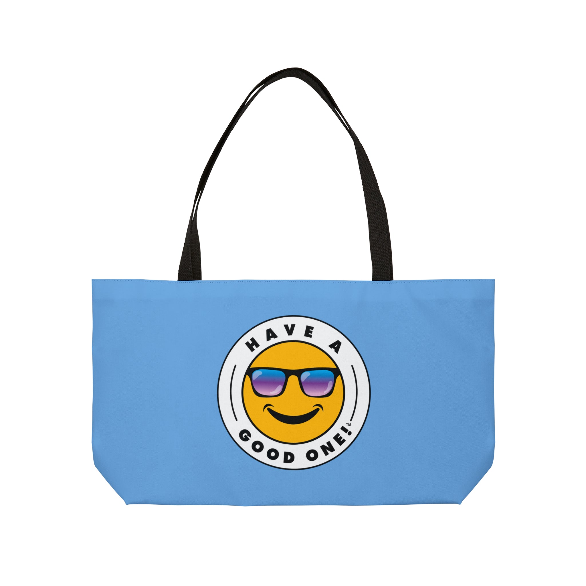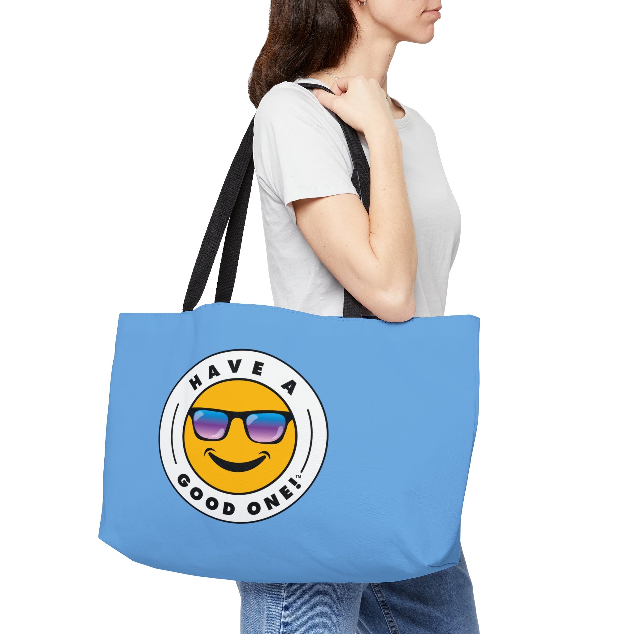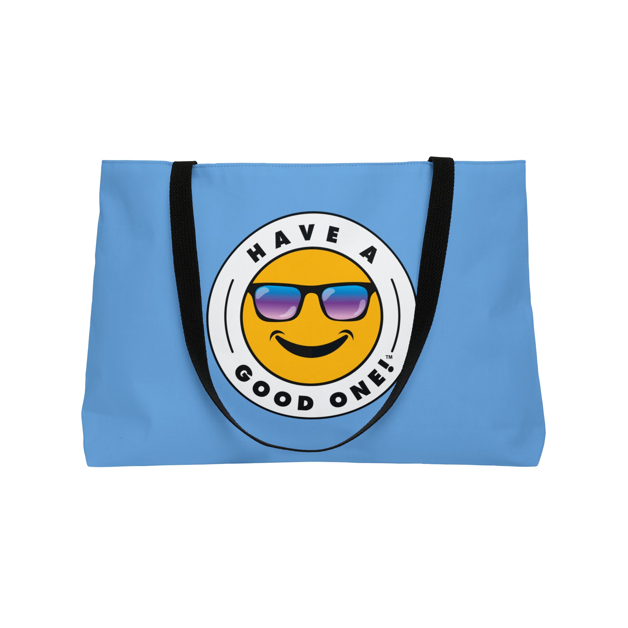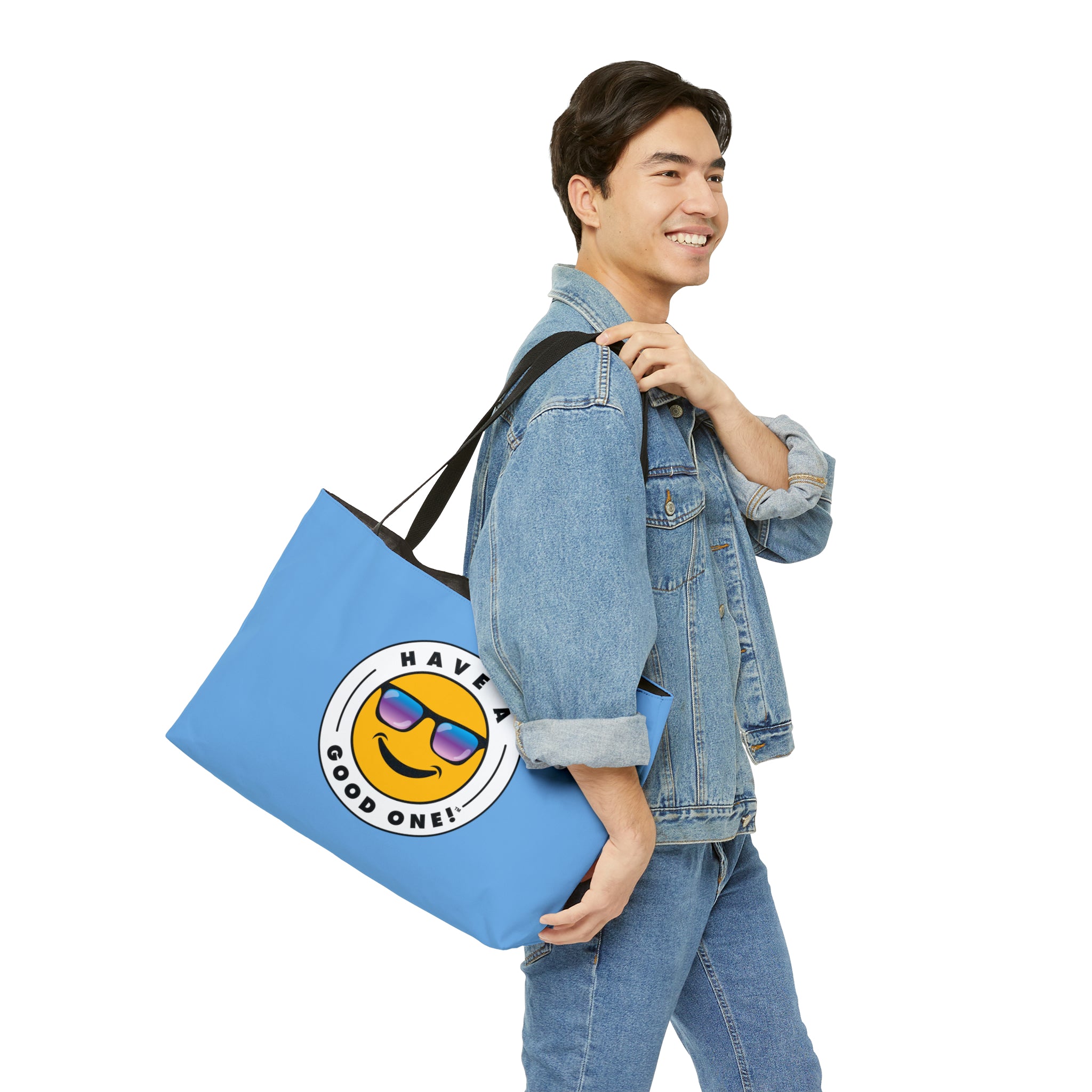 Pack up your belongings and head out to the beach, store, errands, pick up the kids up, head to the gym, travel or go just about anywhere! This versatile bag is light weight and made with very high quality craftsmanship. The logo is on the front and back. This tote bag is made from polyester so it is as durable as it is fun and fashionable. Its t-bottom construction and black handles give it a sleek, classic look. Get packing and go with the Weekender Tote Bag! Wherever you are headed this bag with make it a more memorable and special trip! We know you will Have A Good One wherever life takes you with this fun tote bag!