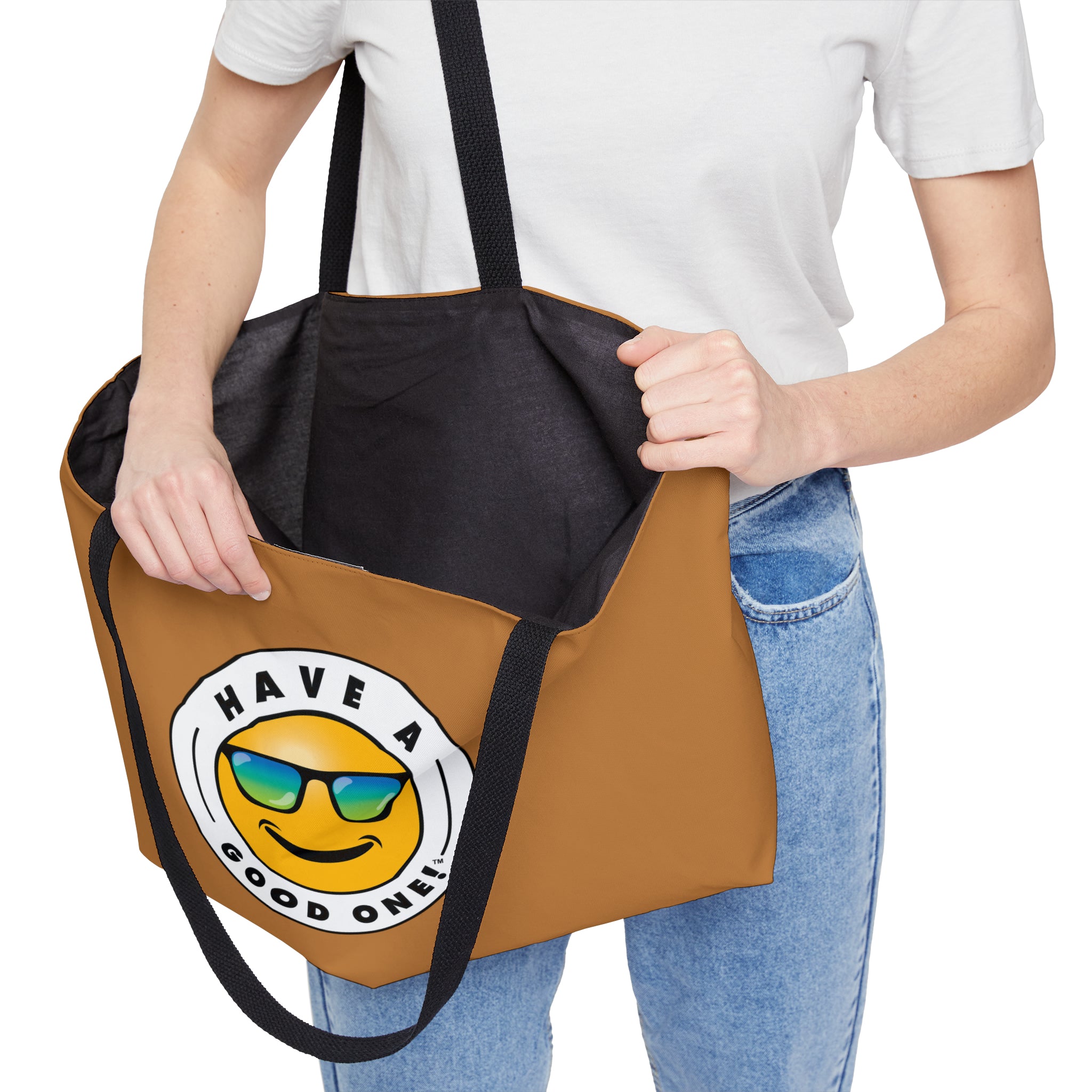 Pack up your belongings and head out to the beach, store, errands, pick up the kids up, head to the gym, travel or go just about anywhere! This versatile bag is light weight and made with very high quality craftsmanship. The logo is on the front and back. This tote bag is made from polyester so it is as durable as it is fun and fashionable. Its t-bottom construction and black handles give it a sleek, classic look. Get packing and go with the Weekender Tote Bag! Wherever you are headed this bag with make it a more memorable and special trip! We know you will Have A Good One wherever life takes you with this fun tote bag!