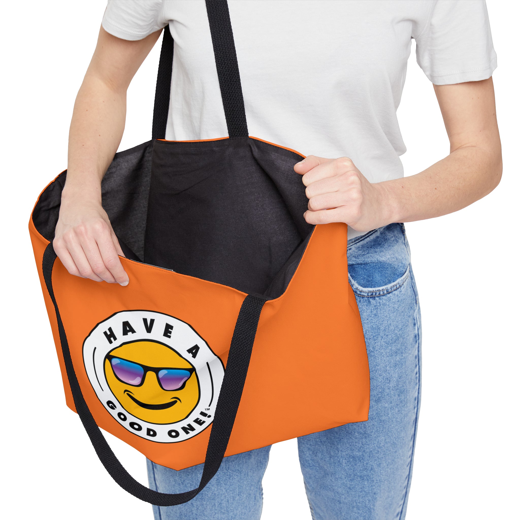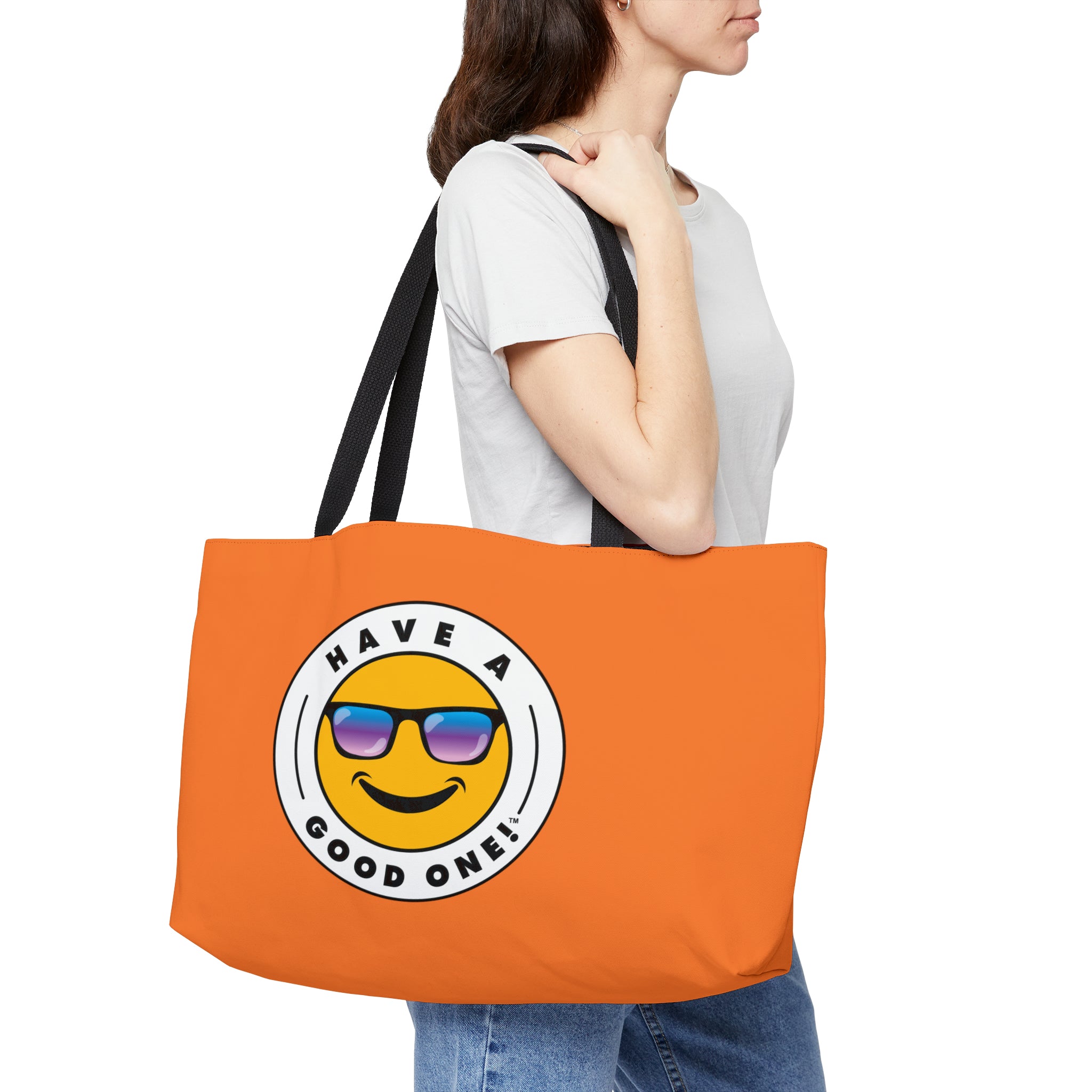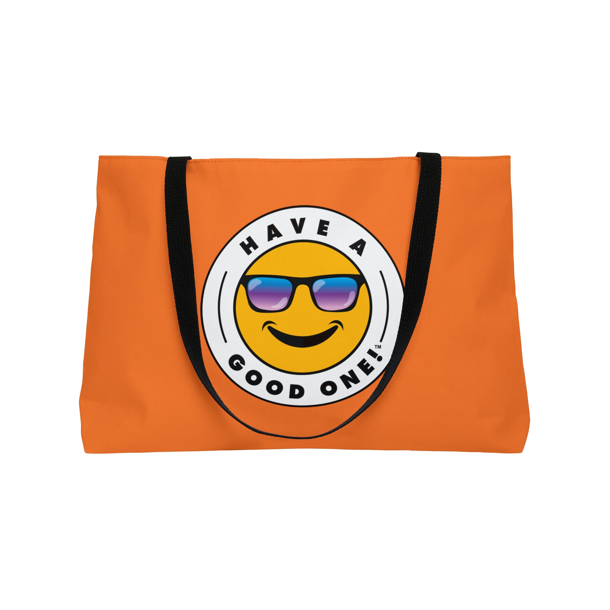 Pack up your belongings and head out to the beach, store, errands, pick up the kids up, head to the gym, travel or go just about anywhere! This versatile bag is light weight and made with very high quality craftsmanship. The logo is on the front and back. This tote bag is made from polyester so it is as durable as it is fun and fashionable. Its t-bottom construction and black handles give it a sleek, classic look. Get packing and go with the Weekender Tote Bag! Wherever you are headed this bag with make it a more memorable and special trip! We know you will Have A Good One wherever life takes you with this fun tote bag!