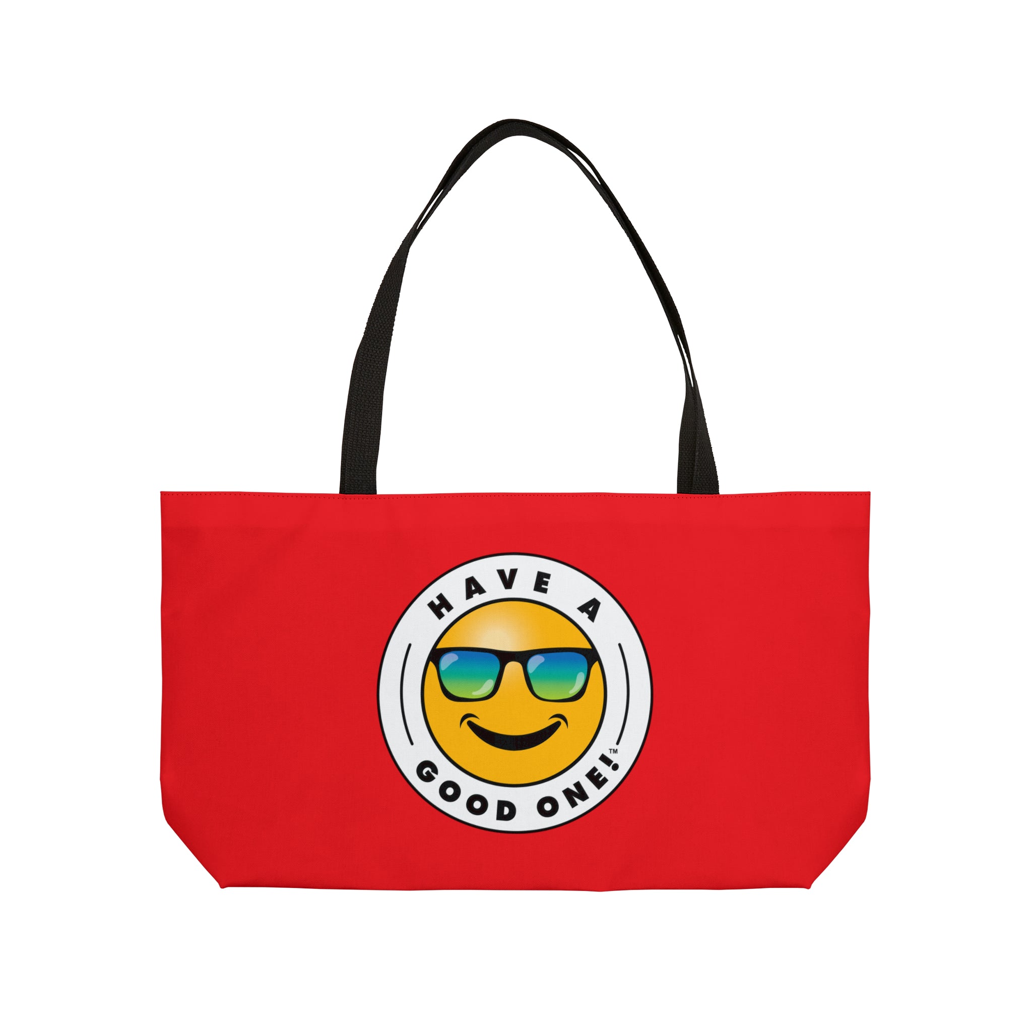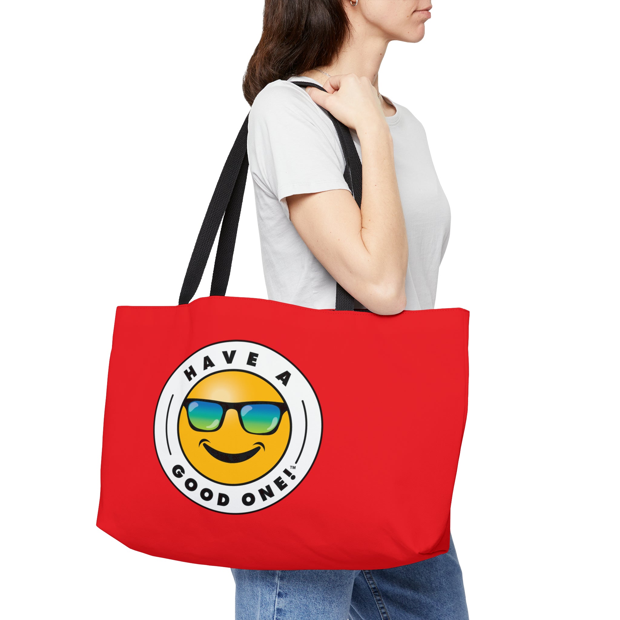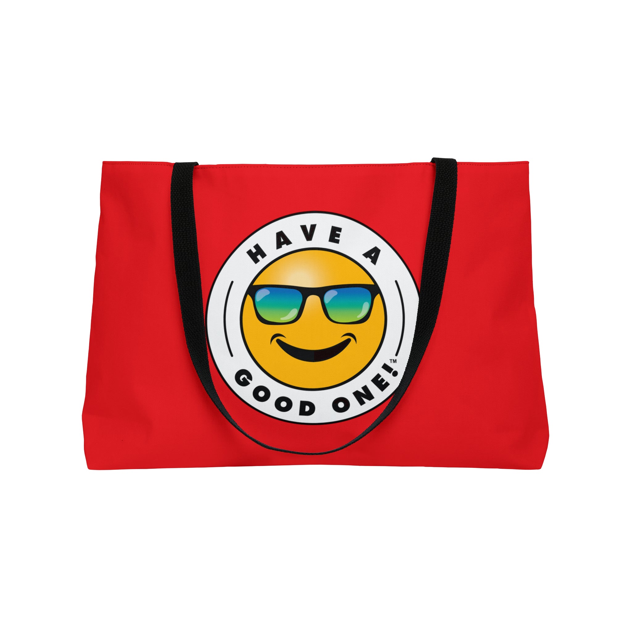 Pack up your belongings and head out to the beach, store, errands, pick up the kids up, head to the gym, travel or go just about anywhere! This versatile bag is light weight and made with very high quality craftsmanship. The logo is on the front and back. This tote bag is made from polyester so it is as durable as it is fun and fashionable. Its t-bottom construction and black handles give it a sleek, classic look. Get packing and go with the Weekender Tote Bag! Wherever you are headed this bag with make it a more memorable and special trip! We know you will Have A Good One wherever life takes you with this fun tote bag!