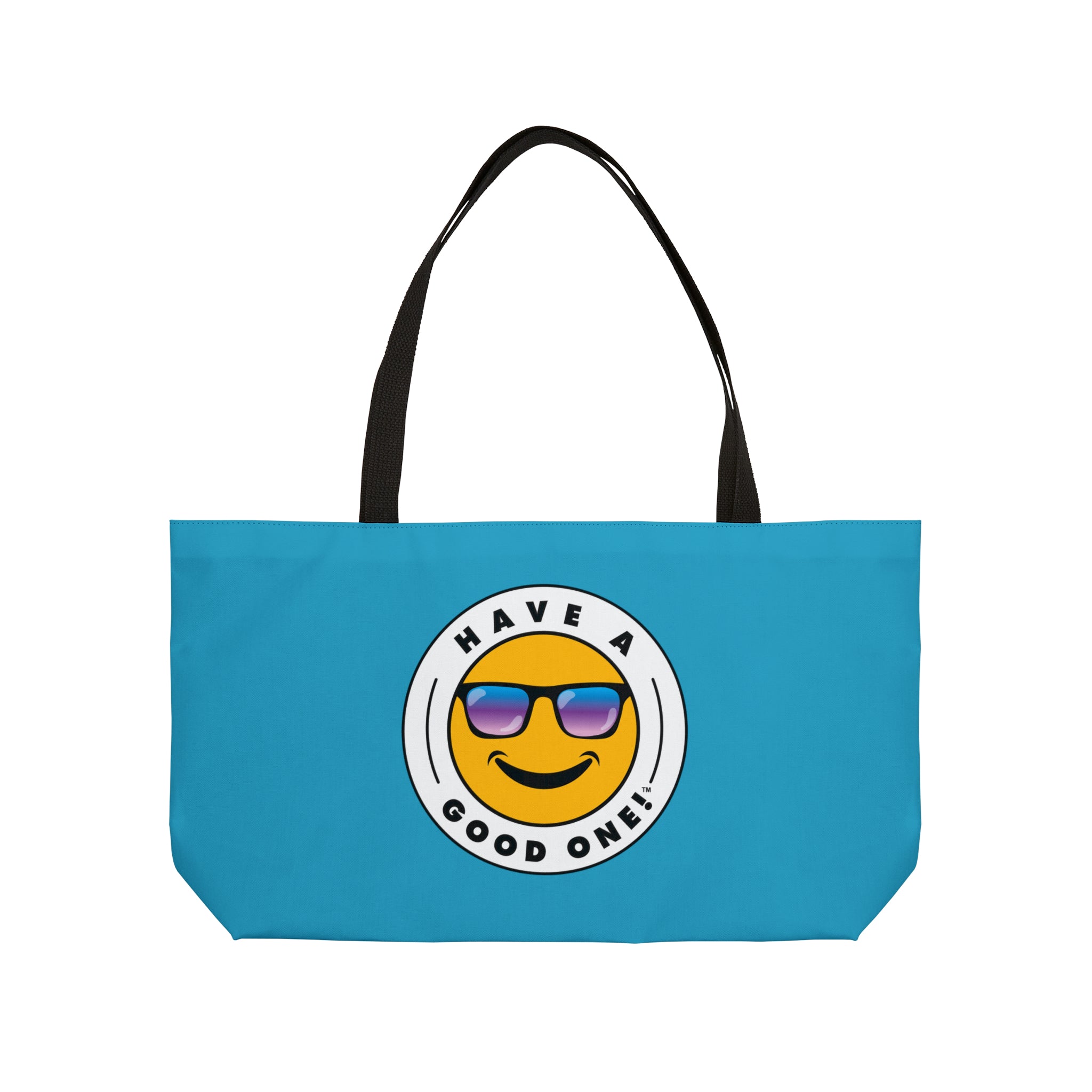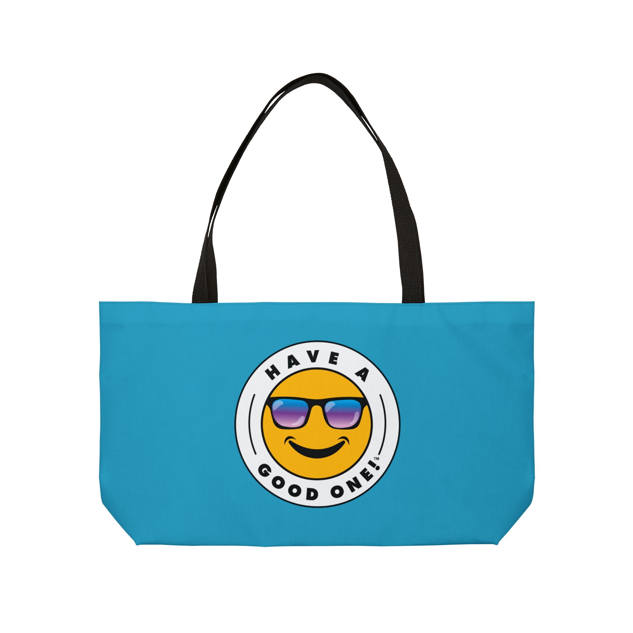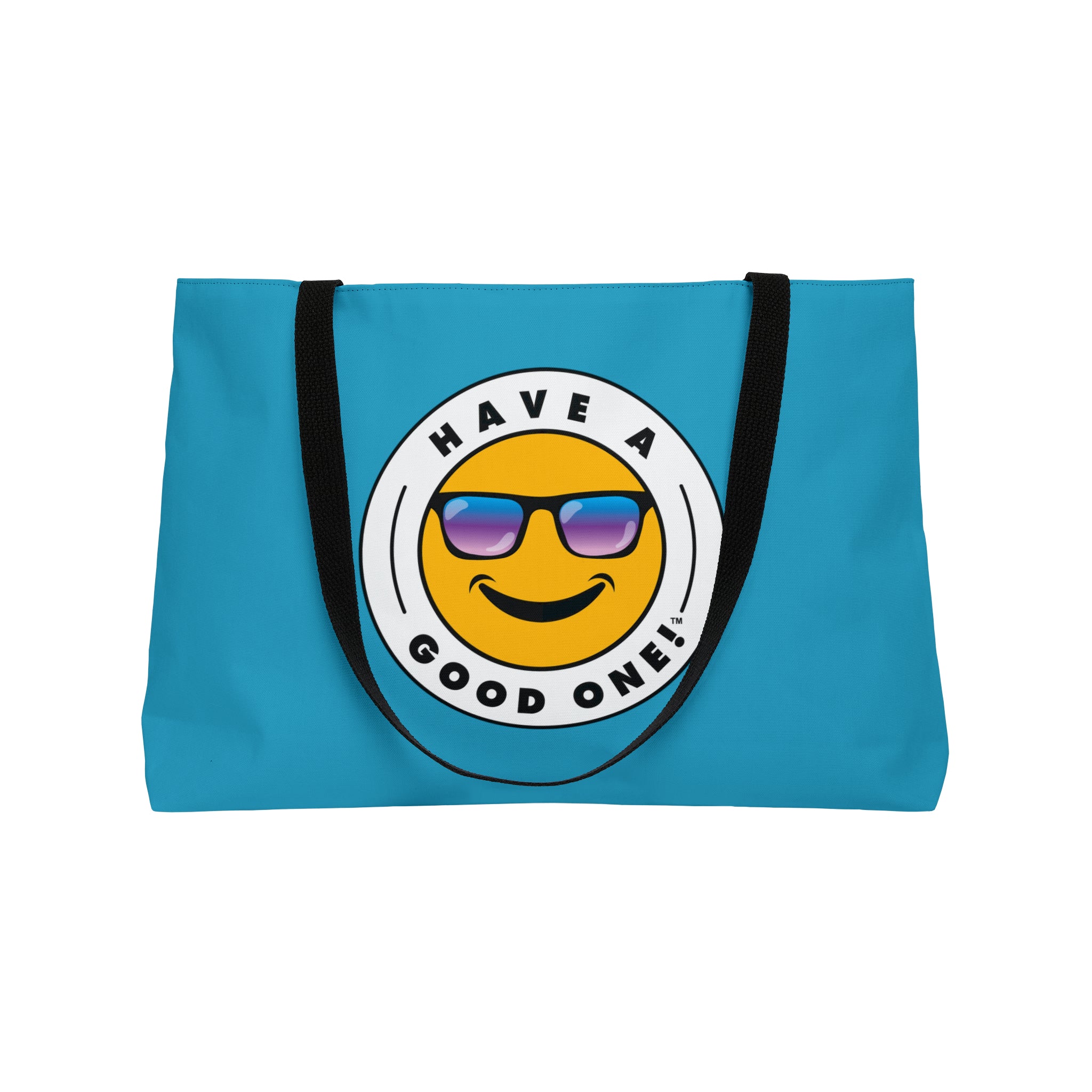 Pack up your belongings and head out to the beach, store, errands, pick up the kids up, head to the gym, travel or go just about anywhere! This versatile bag is light weight and made with very high quality craftsmanship. The logo is on the front and back. This tote bag is made from polyester so it is as durable as it is fun and fashionable. Its t-bottom construction and black handles give it a sleek, classic look. Get packing and go with the Weekender Tote Bag! Wherever you are headed this bag with make it a more memorable and special trip! We know you will Have A Good One wherever life takes you with this fun tote bag!