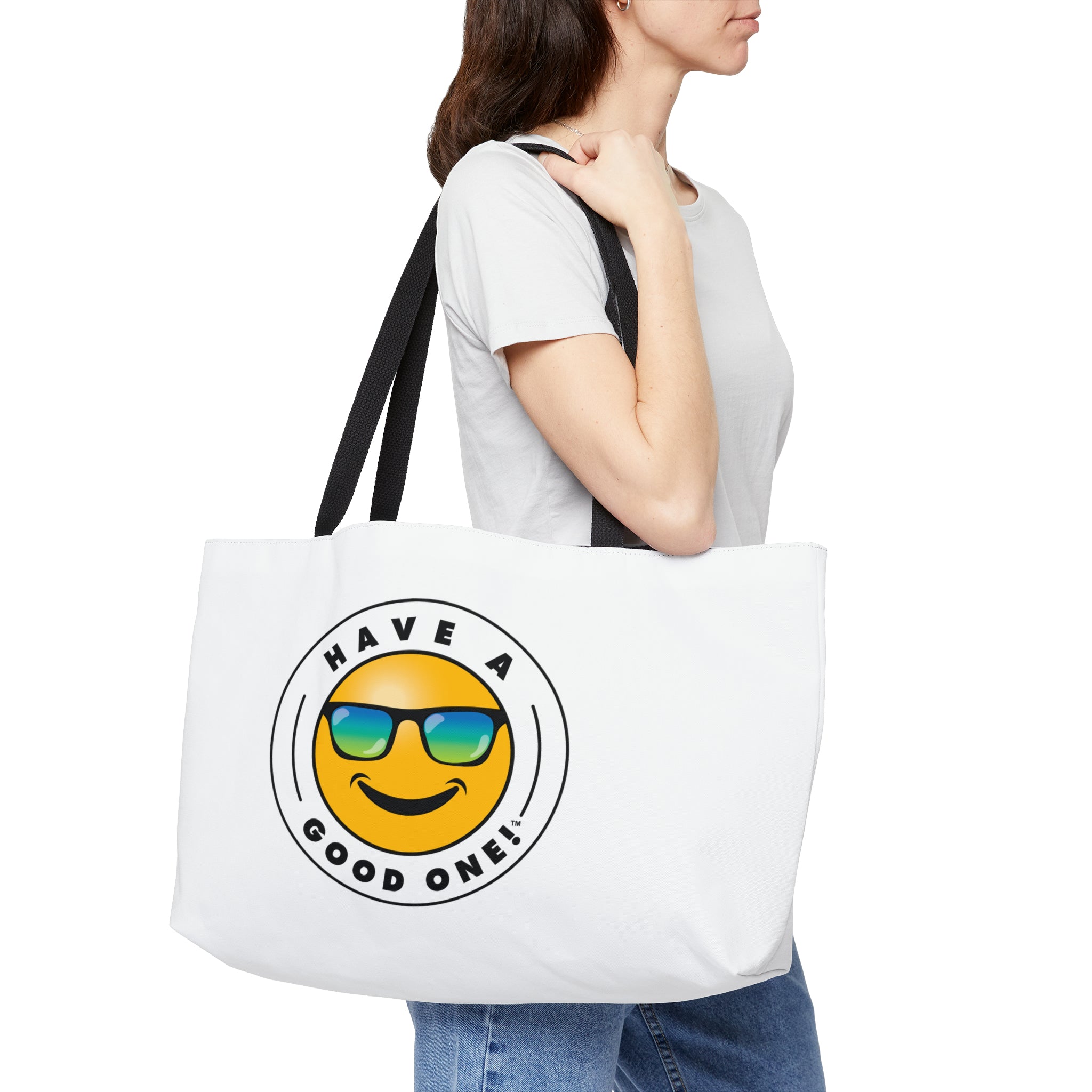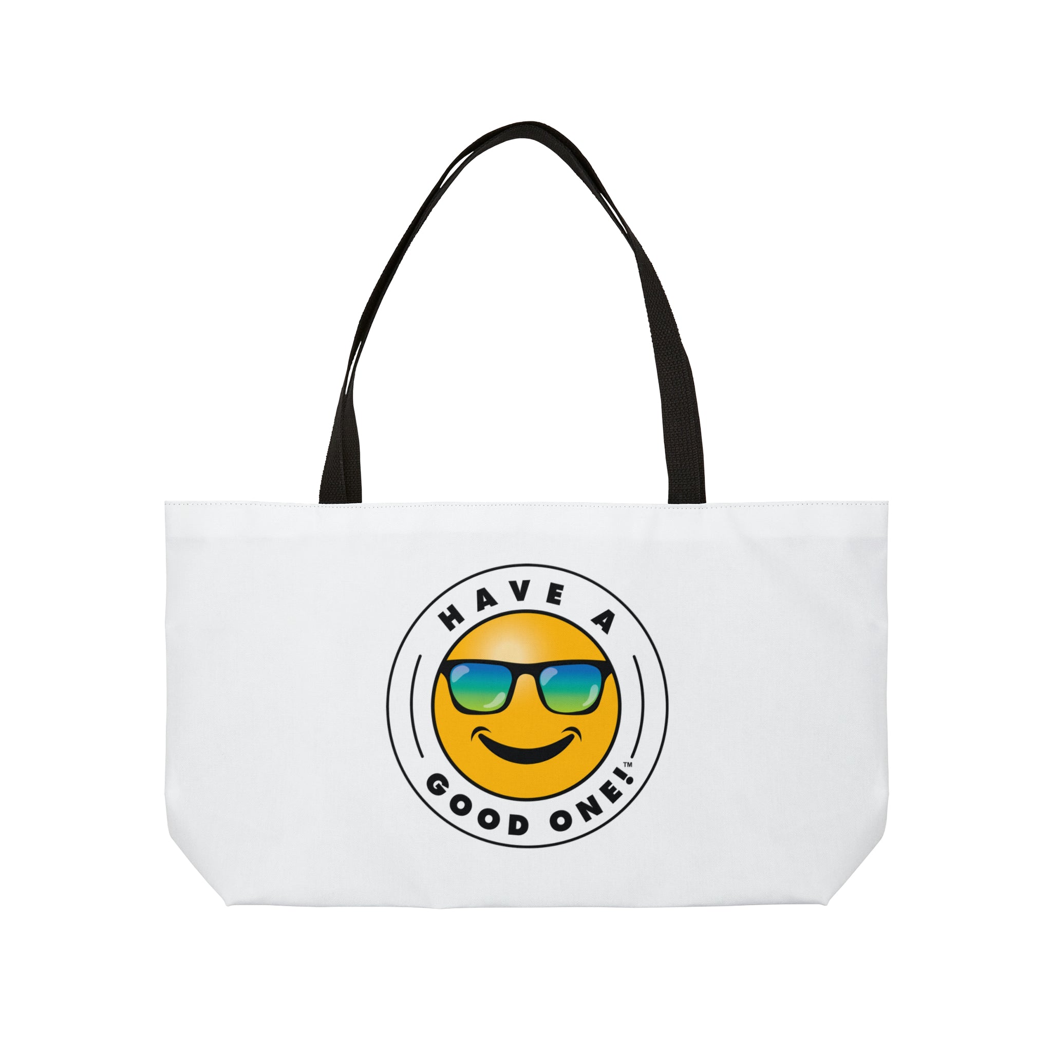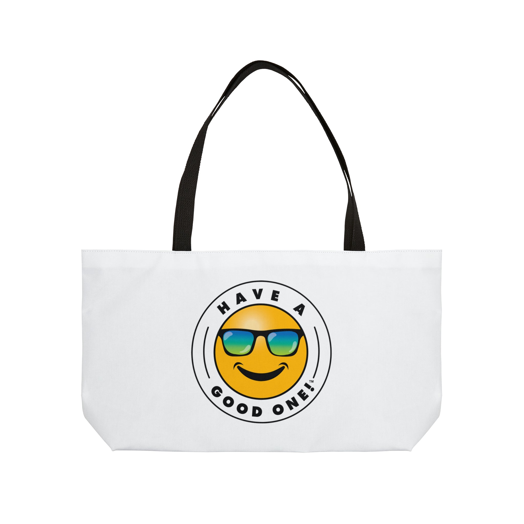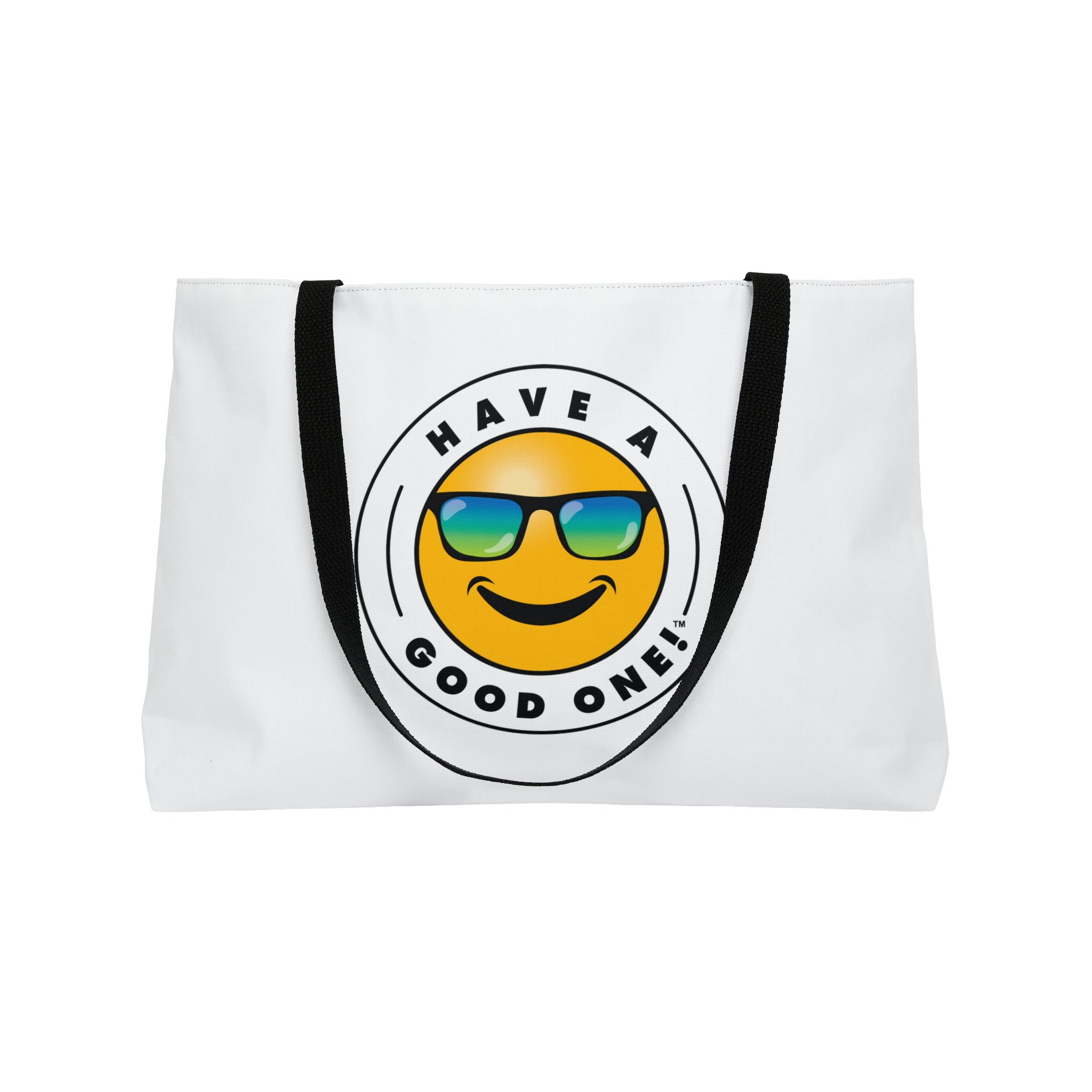 Pack up your belongings and head out to the beach, store, errands, pick up the kids up, head to the gym, travel or go just about anywhere! This versatile bag is light weight and made with very high quality craftsmanship. The logo is on the front and back. This tote bag is made from polyester so it is as durable as it is fun and fashionable. Its t-bottom construction and black handles give it a sleek, classic look. Get packing and go with the Weekender Tote Bag! Wherever you are headed this bag with make it a more memorable and special trip! We know you will Have A Good One wherever life takes you with this fun tote bag!