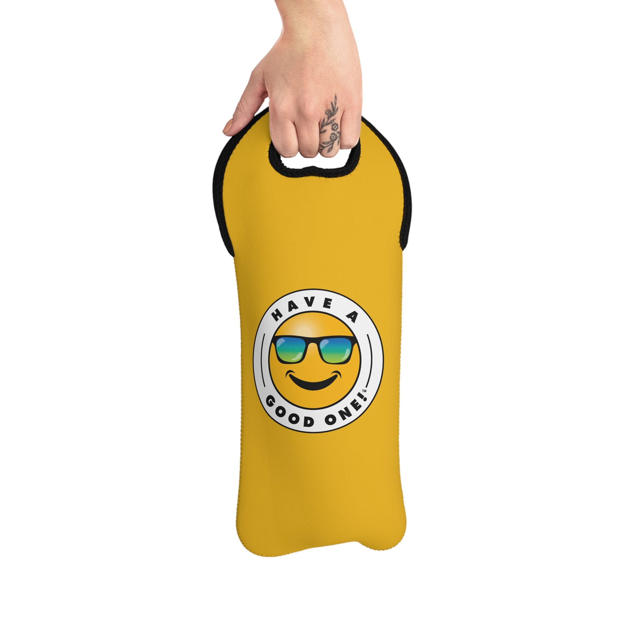 Our Have A Good One wine tote bag brings cheer and good fun to any event! The tote bag will keep your wine insulated for hours. The built-in carrying handle along with the soft grip make transportation a breeze. The logo is printed on both sides of the tote bag giving it a whole lot of personality. The bag is 100% neoprene and fits any standard size wine bottle. The elegant black trim gives it a beautiful finishing touch. The fabric is stain resistant with soft grip handles which make it easy to grab-and-go. These make great gifts with our matching wine tumblers! No matter what you are celebrating this fun wine tote is sure to make your experience more enjoyable and memorable! Get one today and be sure Have A Good One!