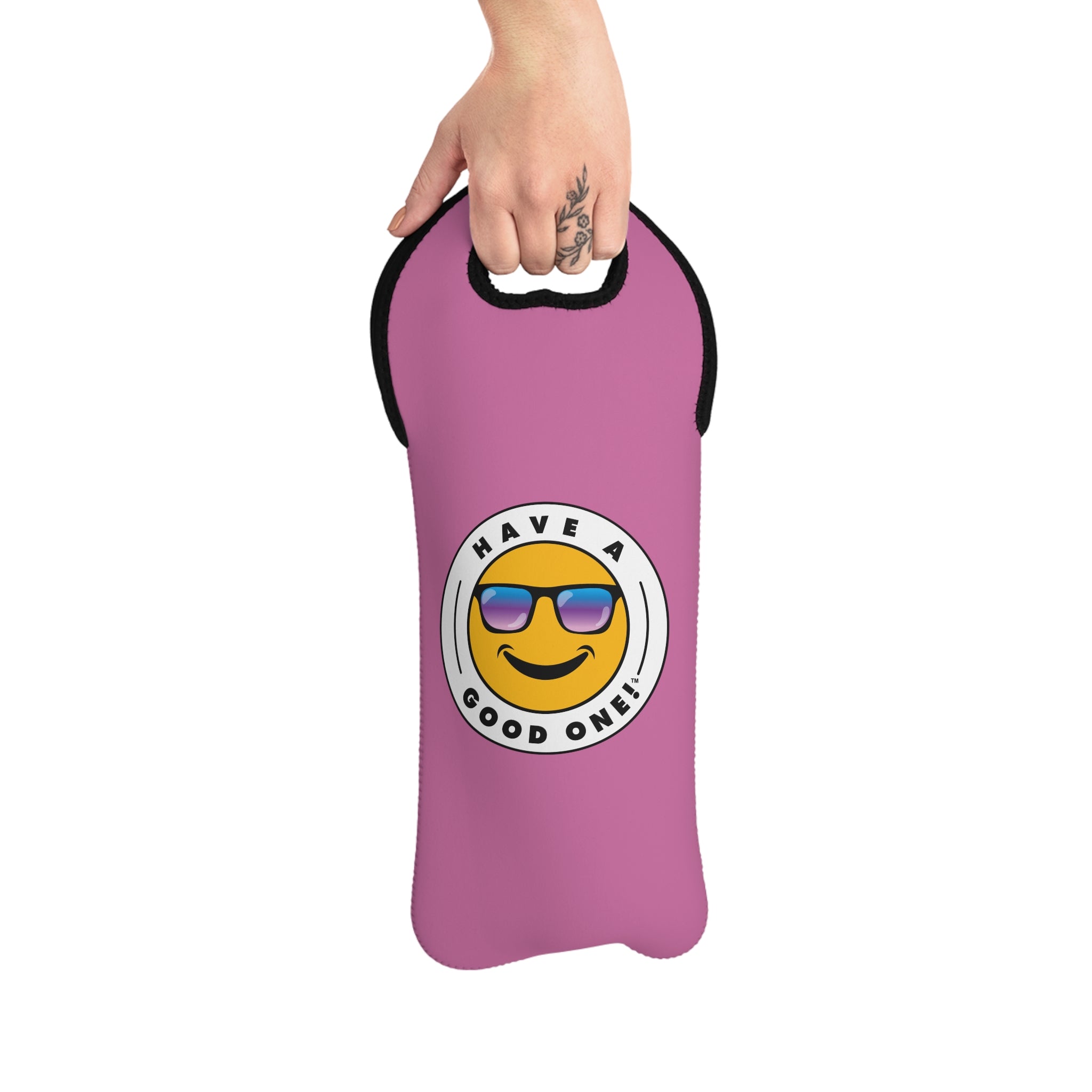 Our Have A Good One wine tote bag brings cheer and good fun to any event! The tote bag will keep your wine insulated for hours. The built-in carrying handle along with the soft grip make transportation a breeze. The logo is printed on both sides of the tote bag giving it a whole lot of personality. The bag is 100% neoprene and fits any standard size wine bottle. The elegant black trim gives it a beautiful finishing touch. The fabric is stain resistant with soft grip handles which make it easy to grab-and-go. These make great gifts with our matching wine tumblers! No matter what you are celebrating this fun wine tote is sure to make your experience more enjoyable and memorable! Get one today and be sure Have A Good One!