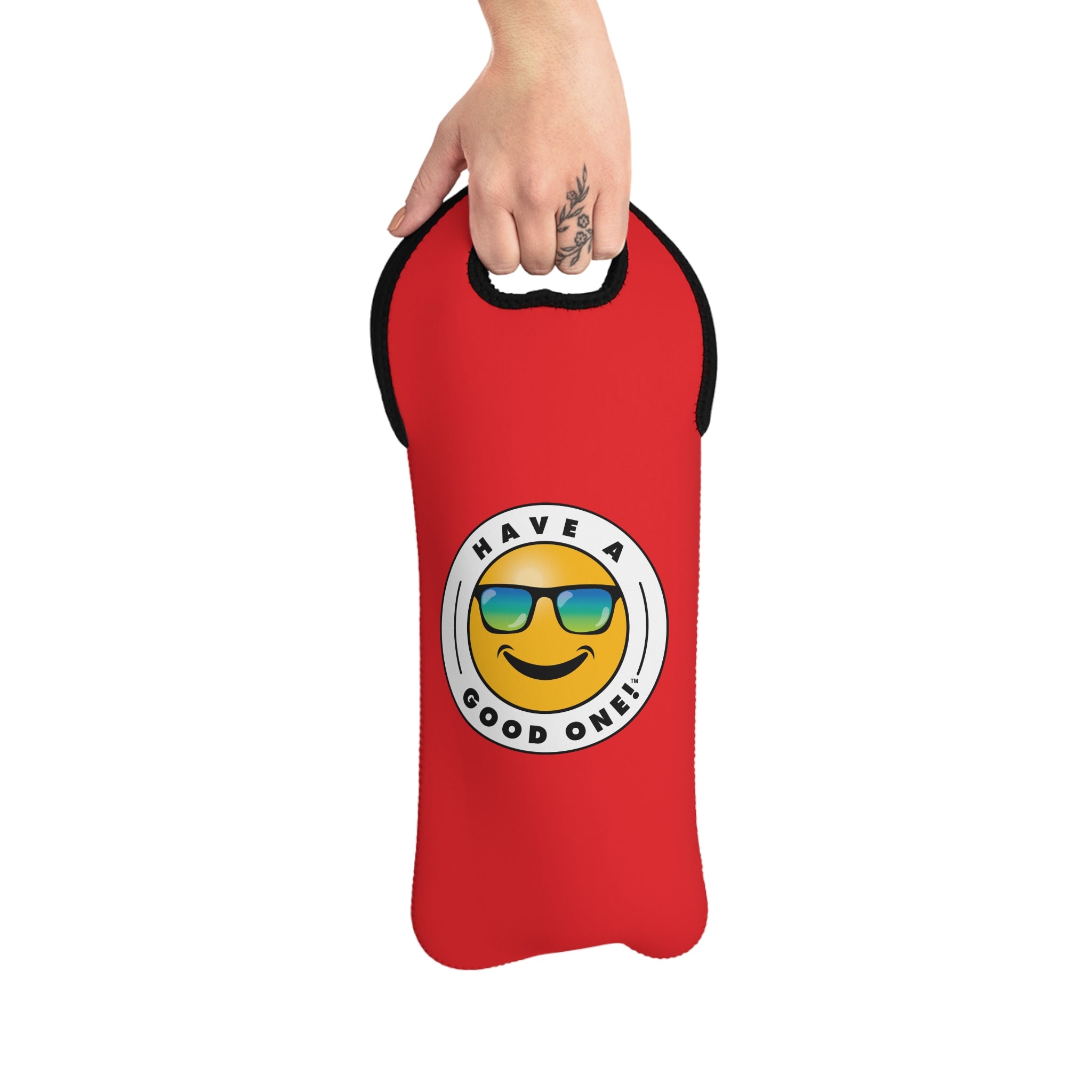 Our Have A Good One wine tote bag brings cheer and good fun to any event! The tote bag will keep your wine insulated for hours. The built-in carrying handle along with the soft grip make transportation a breeze. The logo is printed on both sides of the tote bag giving it a whole lot of personality. The bag is 100% neoprene and fits any standard size wine bottle. The elegant black trim gives it a beautiful finishing touch. The fabric is stain resistant with soft grip handles which make it easy to grab-and-go. These make great gifts with our matching wine tumblers! No matter what you are celebrating this fun wine tote is sure to make your experience more enjoyable and memorable! Get one today and be sure Have A Good One!