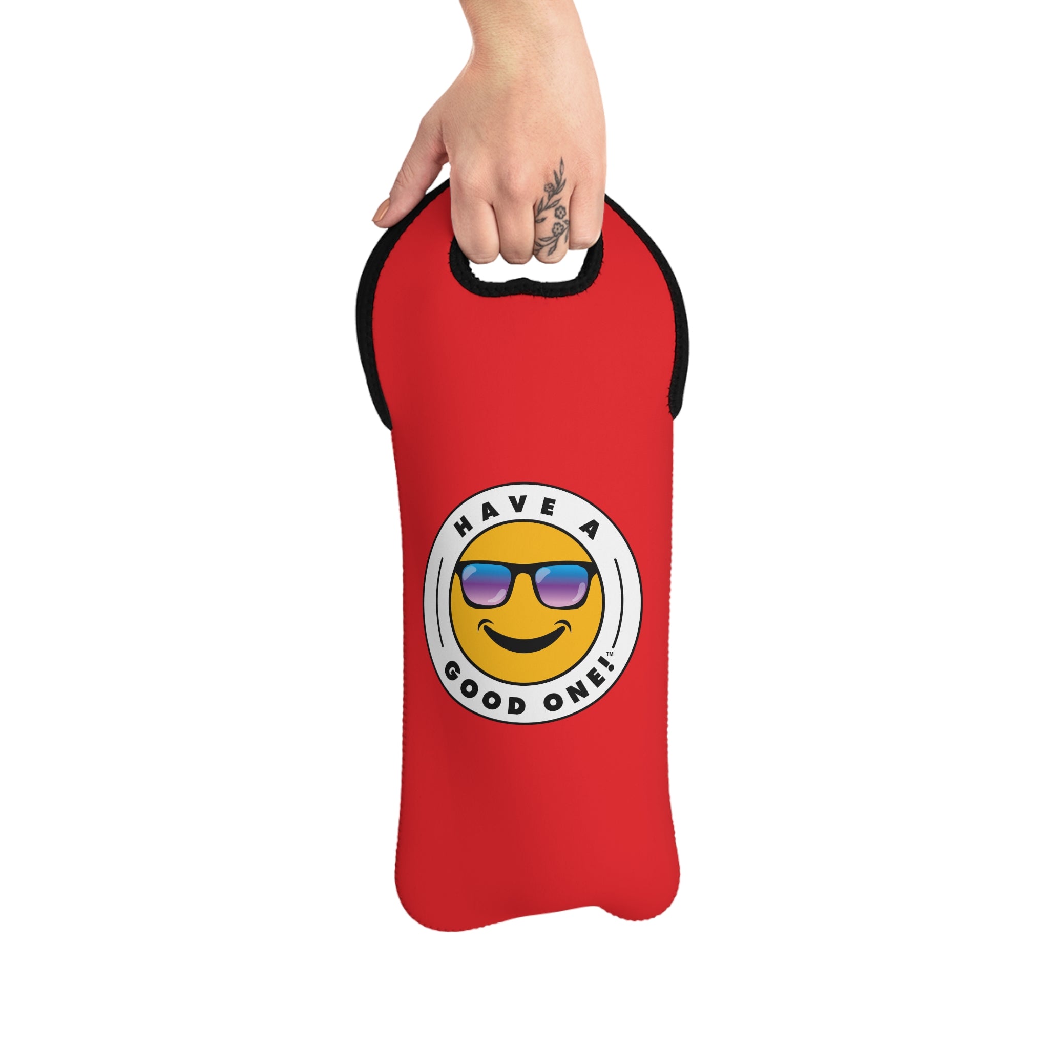 Our Have A Good One wine tote bag brings cheer and good fun to any event! The tote bag will keep your wine insulated for hours. The built-in carrying handle along with the soft grip make transportation a breeze. The logo is printed on both sides of the tote bag giving it a whole lot of personality. The bag is 100% neoprene and fits any standard size wine bottle. The elegant black trim gives it a beautiful finishing touch. The fabric is stain resistant with soft grip handles which make it easy to grab-and-go. These make great gifts with our matching wine tumblers! No matter what you are celebrating this fun wine tote is sure to make your experience more enjoyable and memorable! Get one today and be sure Have A Good One!