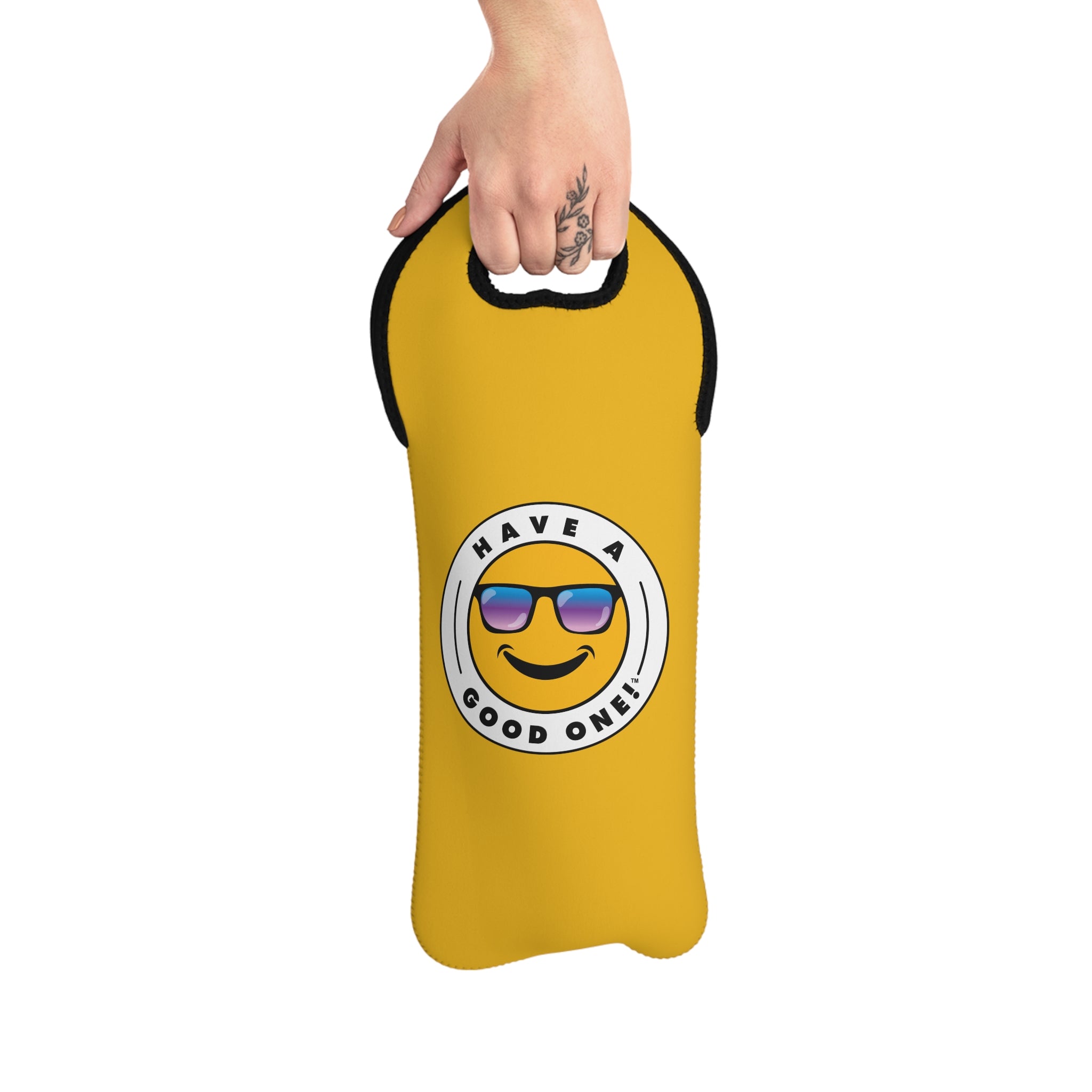 Our Have A Good One wine tote bag brings cheer and good fun to any event! The tote bag will keep your wine insulated for hours. The built-in carrying handle along with the soft grip make transportation a breeze. The logo is printed on both sides of the tote bag giving it a whole lot of personality. The bag is 100% neoprene and fits any standard size wine bottle. The elegant black trim gives it a beautiful finishing touch. The fabric is stain resistant with soft grip handles which make it easy to grab-and-go. These make great gifts with our matching wine tumblers! No matter what you are celebrating this fun wine tote is sure to make your experience more enjoyable and memorable! Get one today and be sure Have A Good One!