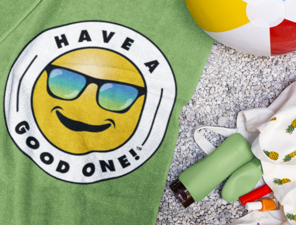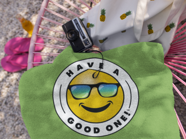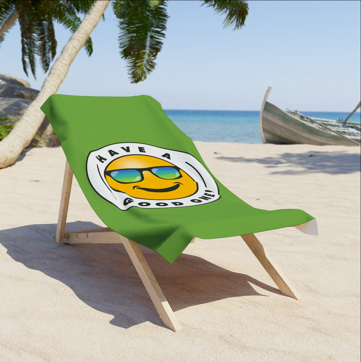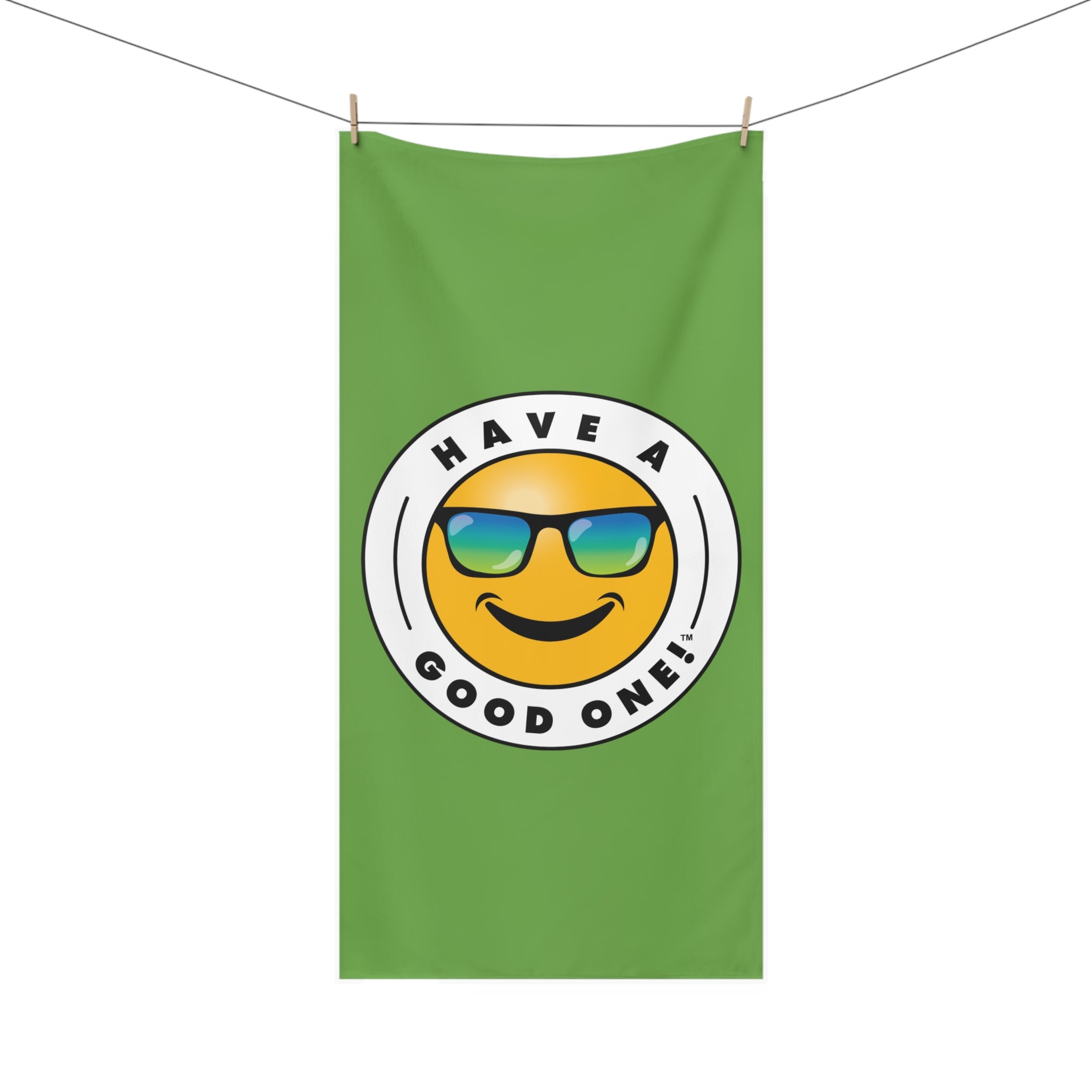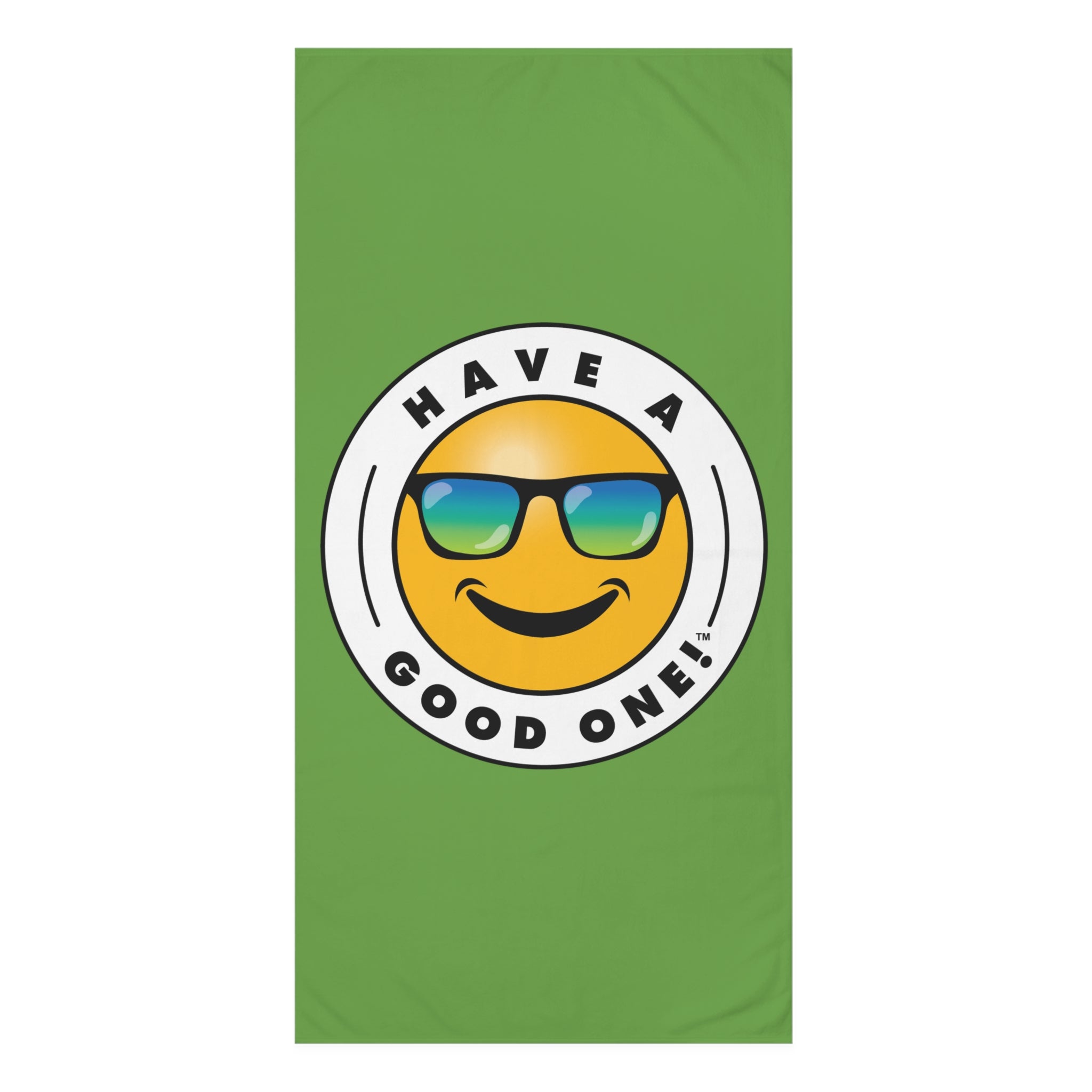 Fun Beach Towel With Have A Good One! Vibe - Green Color with Blue Green Logo
