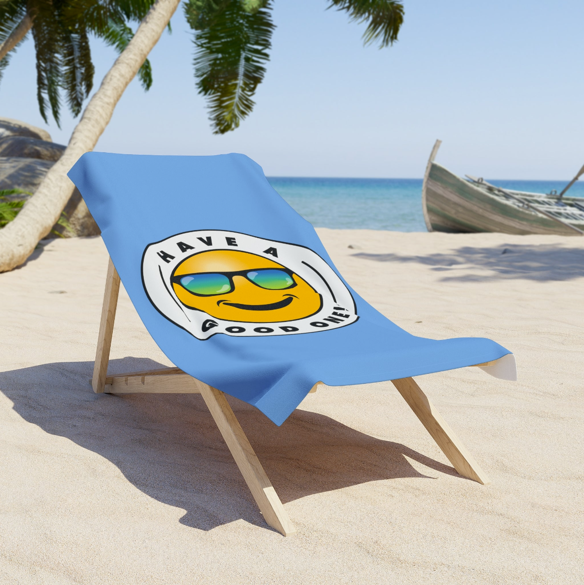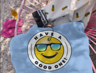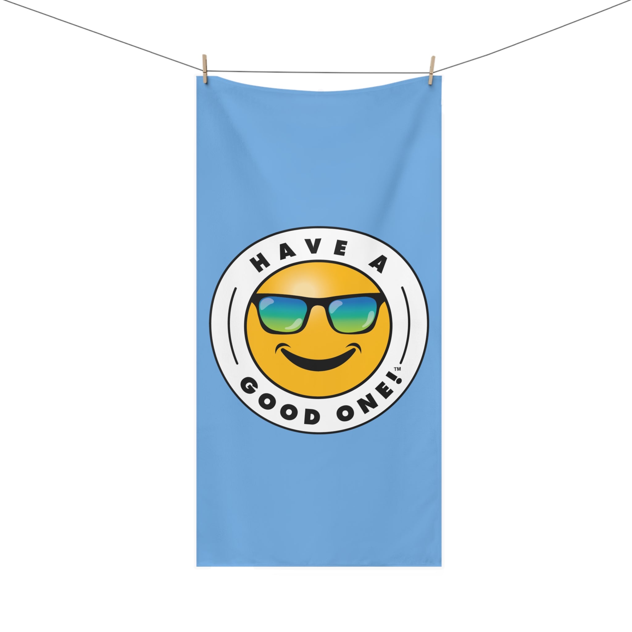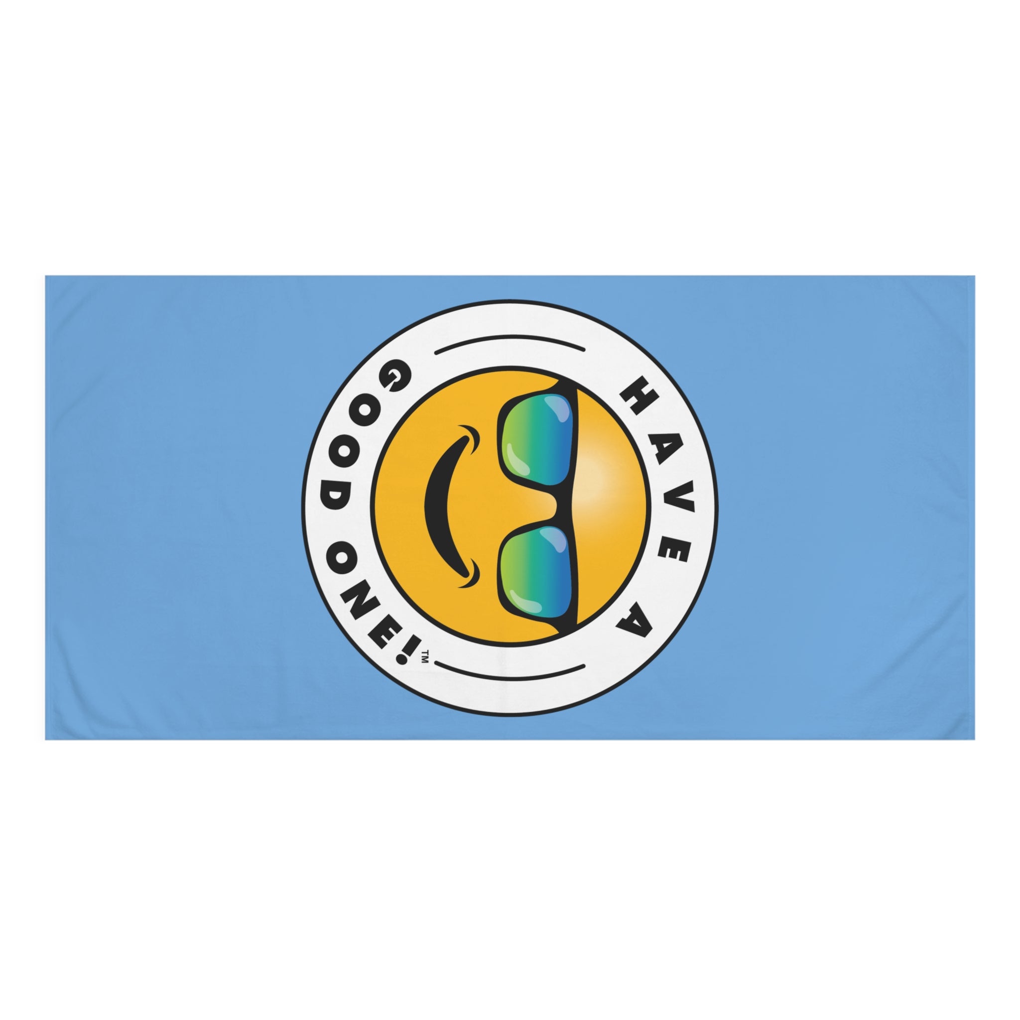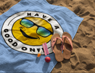 Fun Beach Towel With Have A Good One! Vibe - Light Blue Color with Blue Green Logo