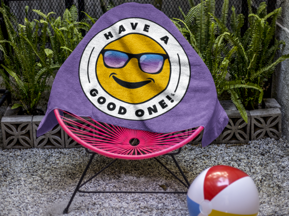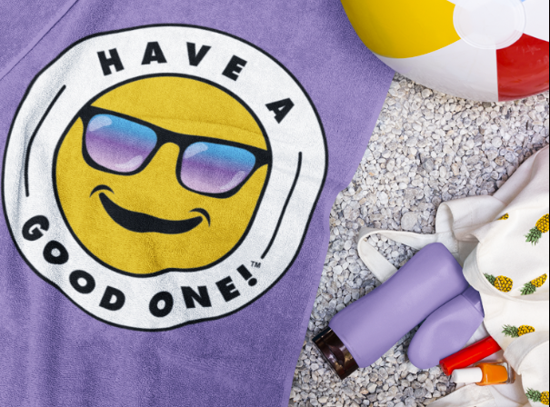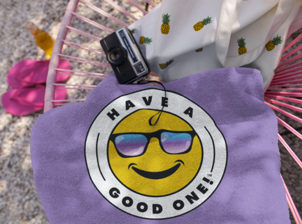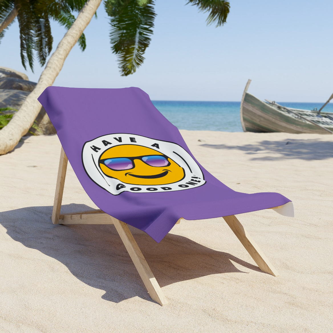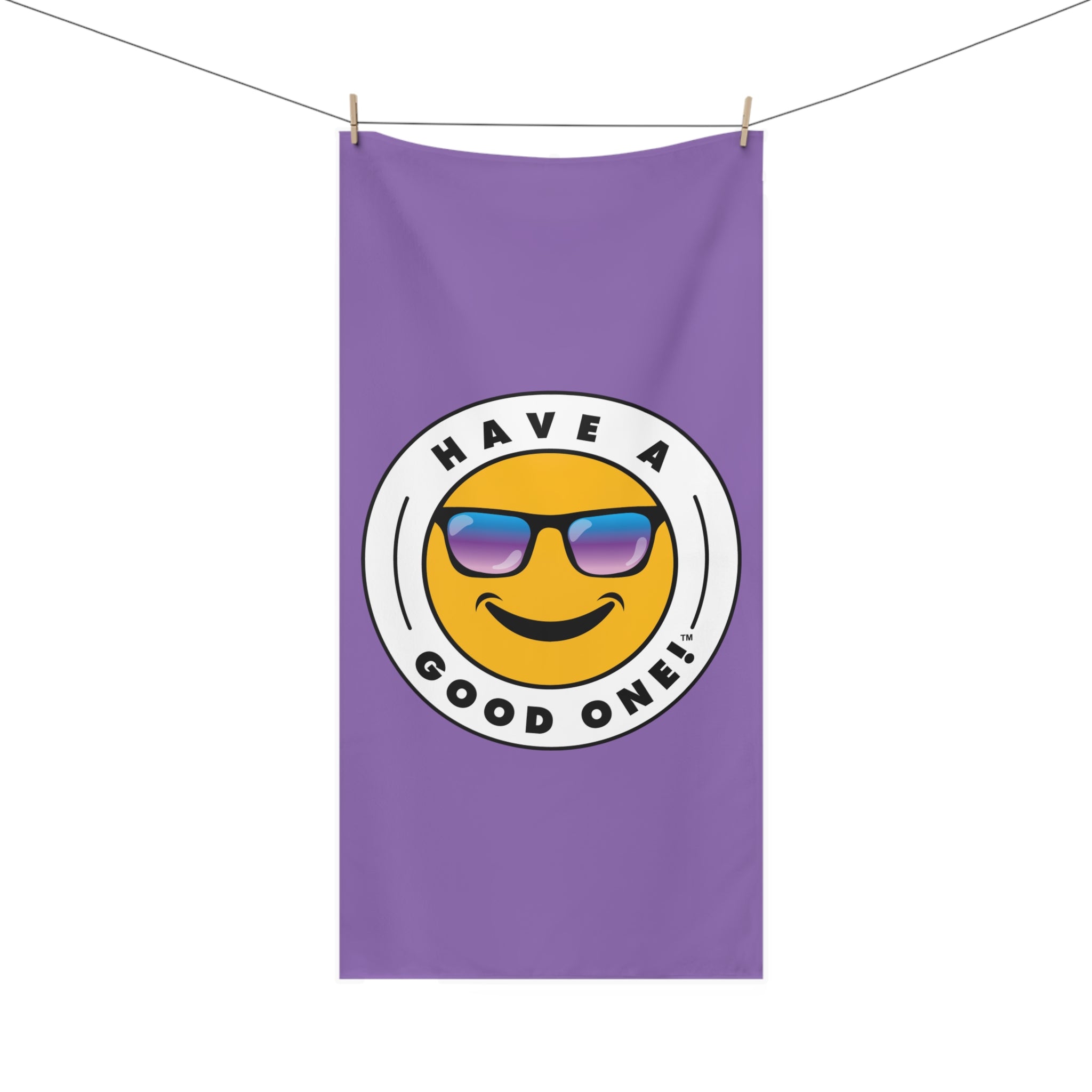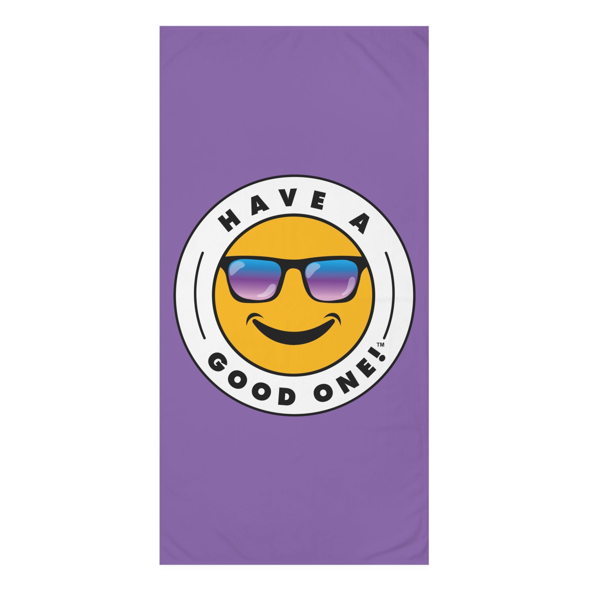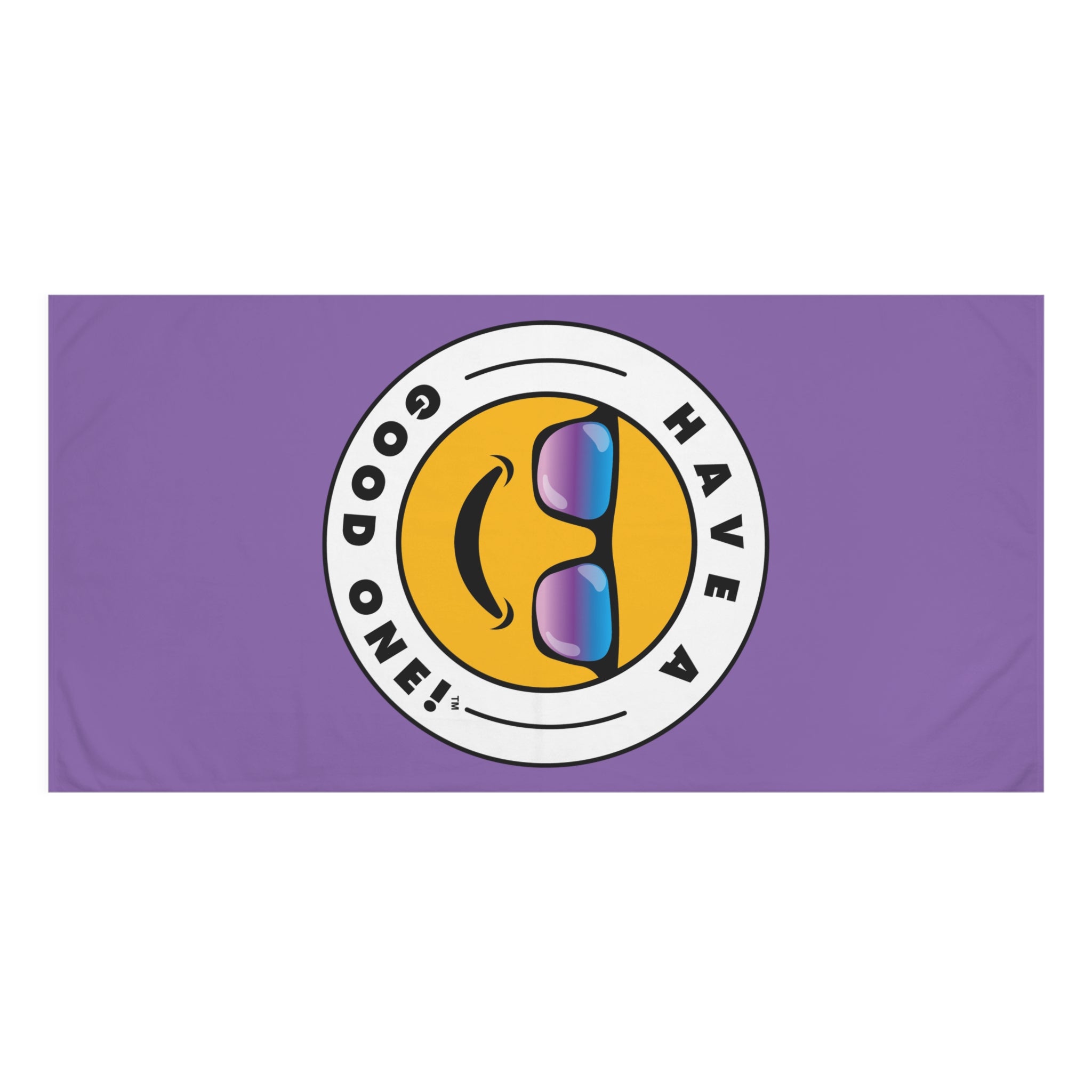 Fun Beach Towel With Have A Good One! Vibe - Light Purple Color with Blue Purple Logo