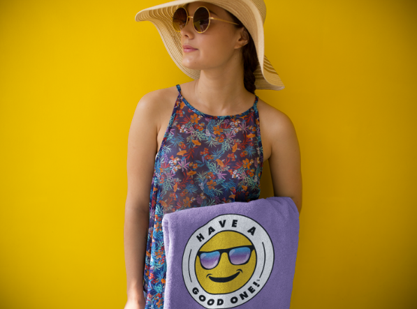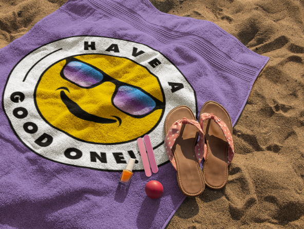 Have fun with this beach vibe towel while enjoying the sunshine and be sure to Have a Good One! Beach days are always relaxing and showing up with a luxuriously soft and customized beach towel can add a bit more sunshine to your day! This heavyweight towel feels extra lush to the touch yet smooth and soft since it is made from a luxuriously soft polyester mink. Head to the beach or pool with this festive towel to soak up the sun! This beach towel is a must have for all beach and water lovers whether on a summer vacation, honeymoon, cruise ship, pool party or just sun bathing in the back yard. No matter where you are going to catch some rays this towel will be sure to make it more special and fun!