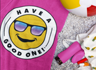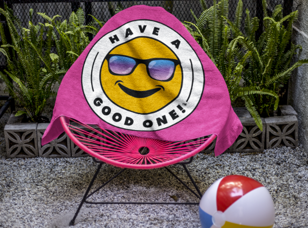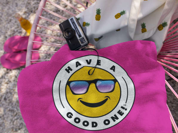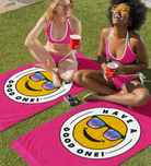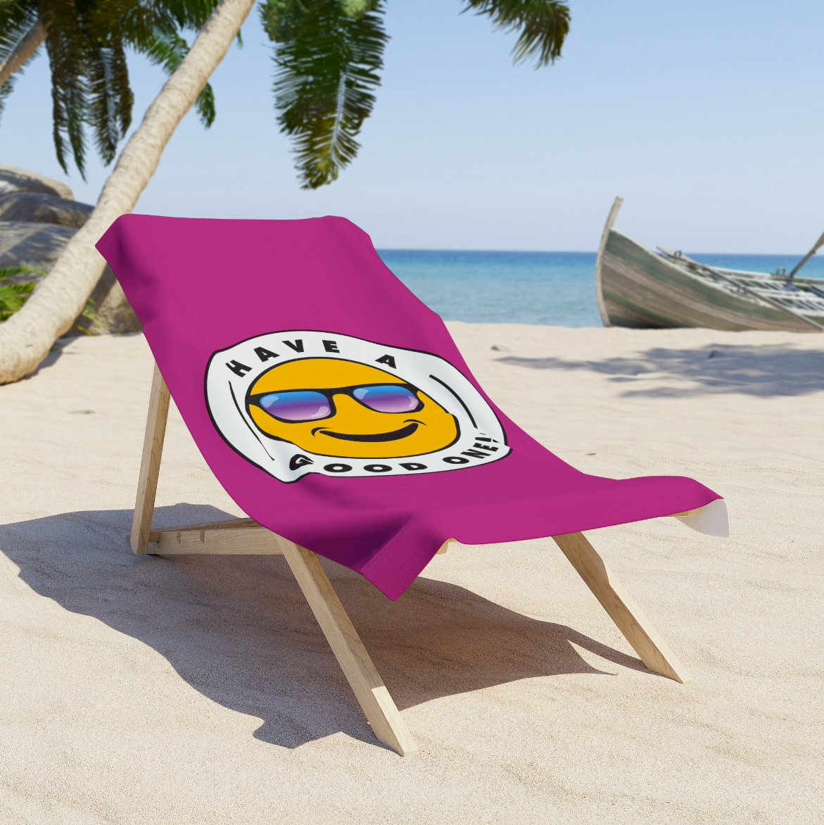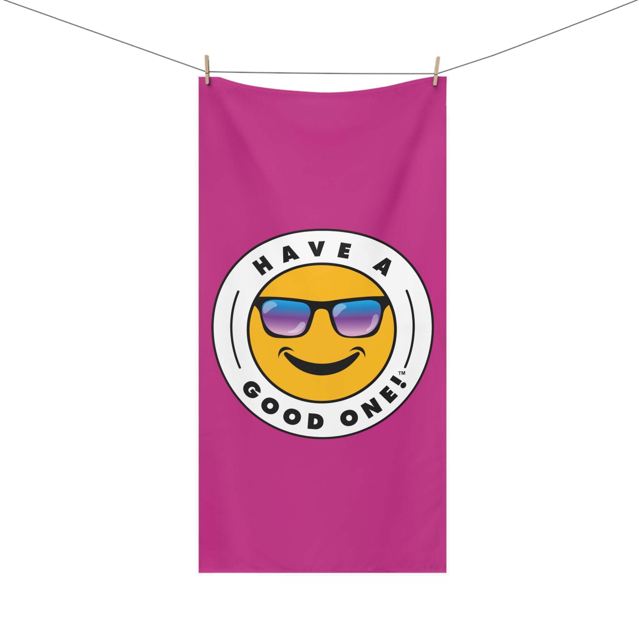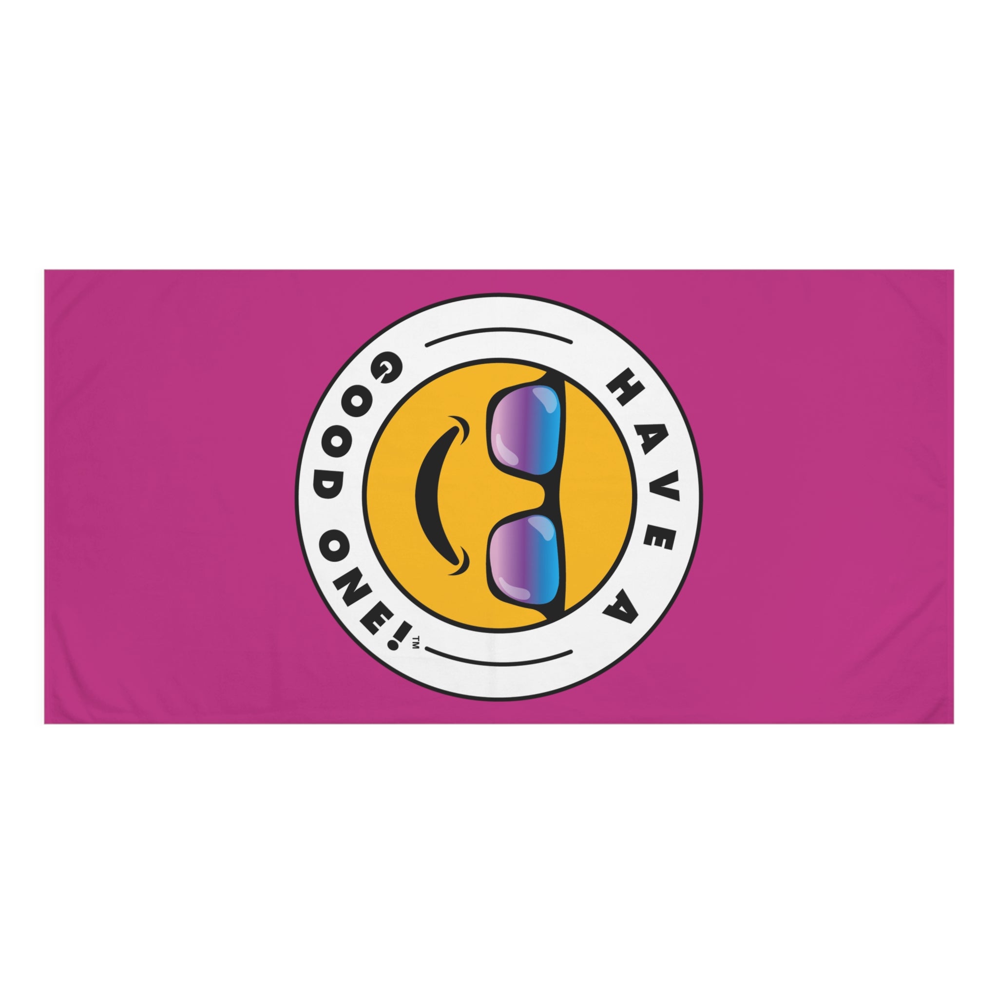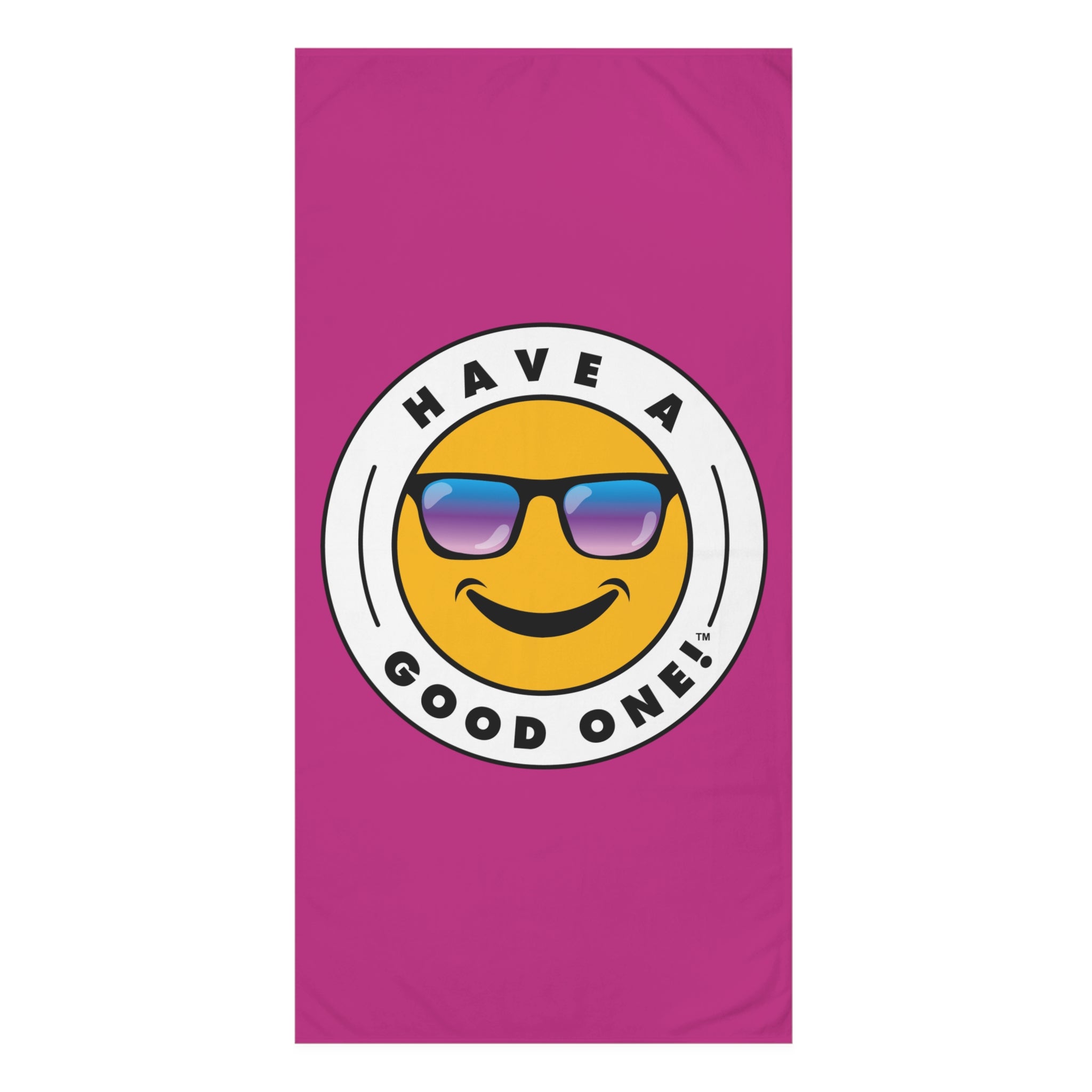 Fun Beach Towel With Have A Good One! Vibe - Pink Color with Blue Purple Logo