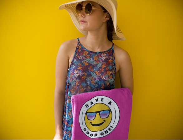 Have fun with this beach vibe towel while enjoying the sunshine and be sure to Have a Good One! Beach days are always relaxing and showing up with a luxuriously soft and customized beach towel can add a bit more sunshine to your day! This heavyweight towel feels extra lush to the touch yet smooth and soft since it is made from a luxuriously soft polyester mink. Head to the beach or pool with this festive towel to soak up the sun! This beach towel is a must have for all beach and water lovers whether on a summer vacation, honeymoon, cruise ship, pool party or just sun bathing in the back yard. No matter where you are going to catch some rays this towel will be sure to make it more special and fun!