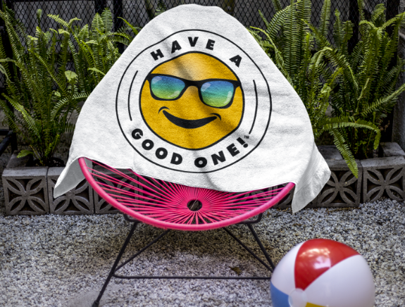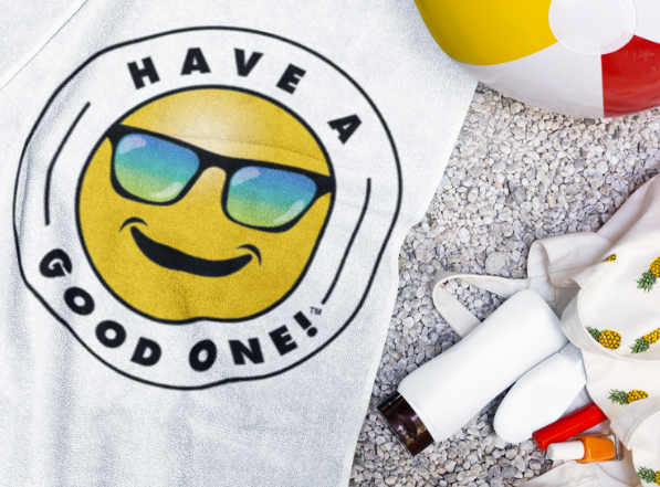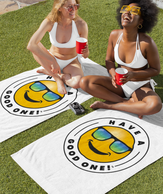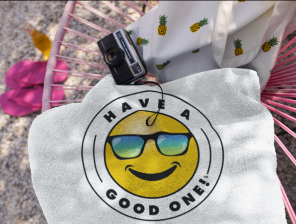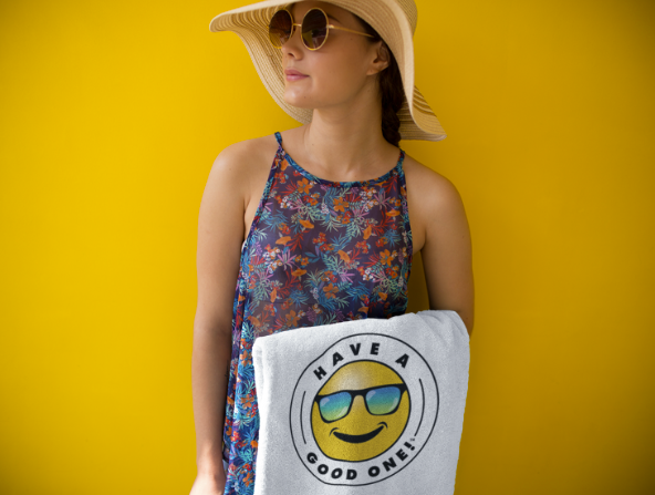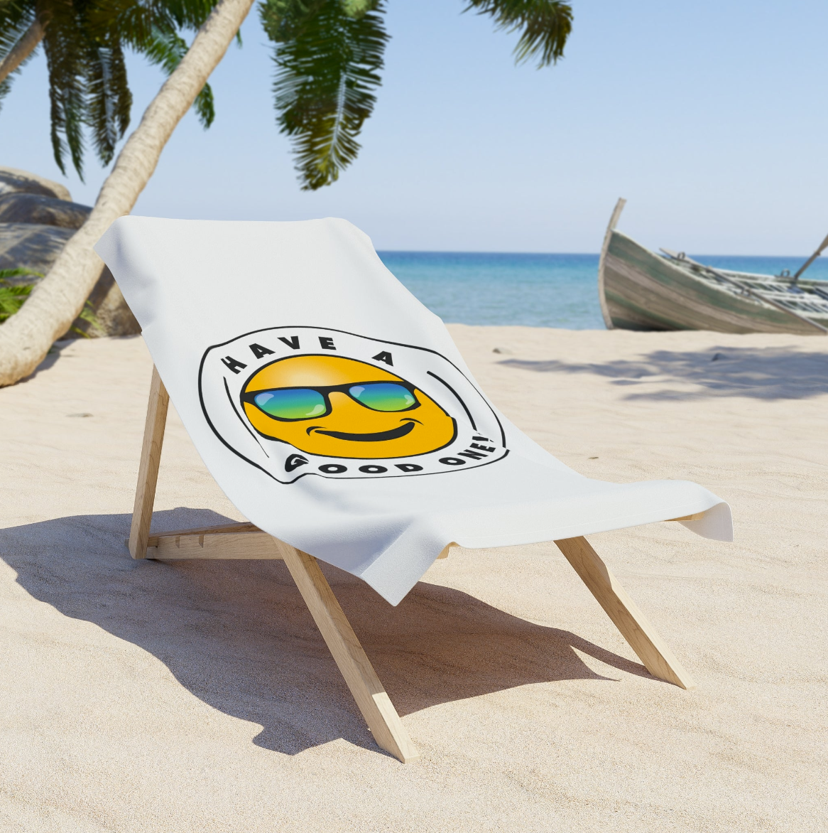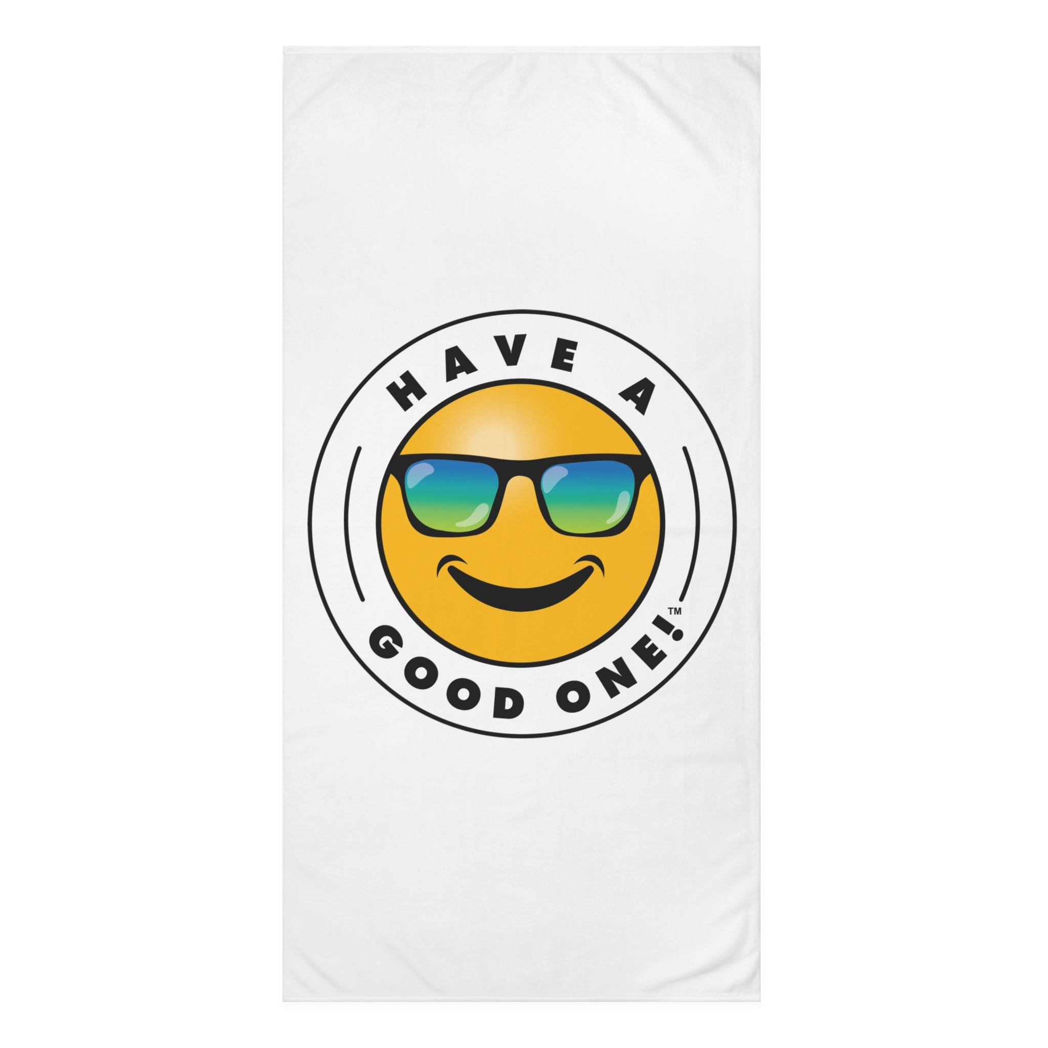 Fun Beach Towel With Have A Good One! Vibe - White Color with Blue Green Logo
