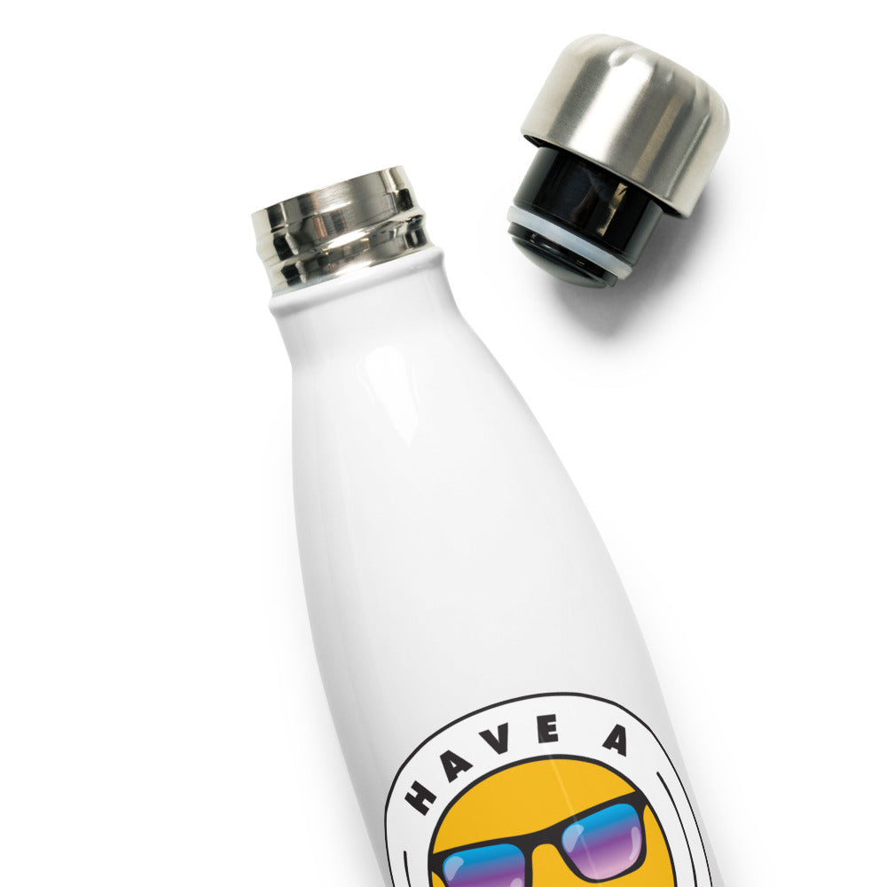 Stainless Steel Water Bottle - White Color With Blue and Purple Have A Good One! Logo