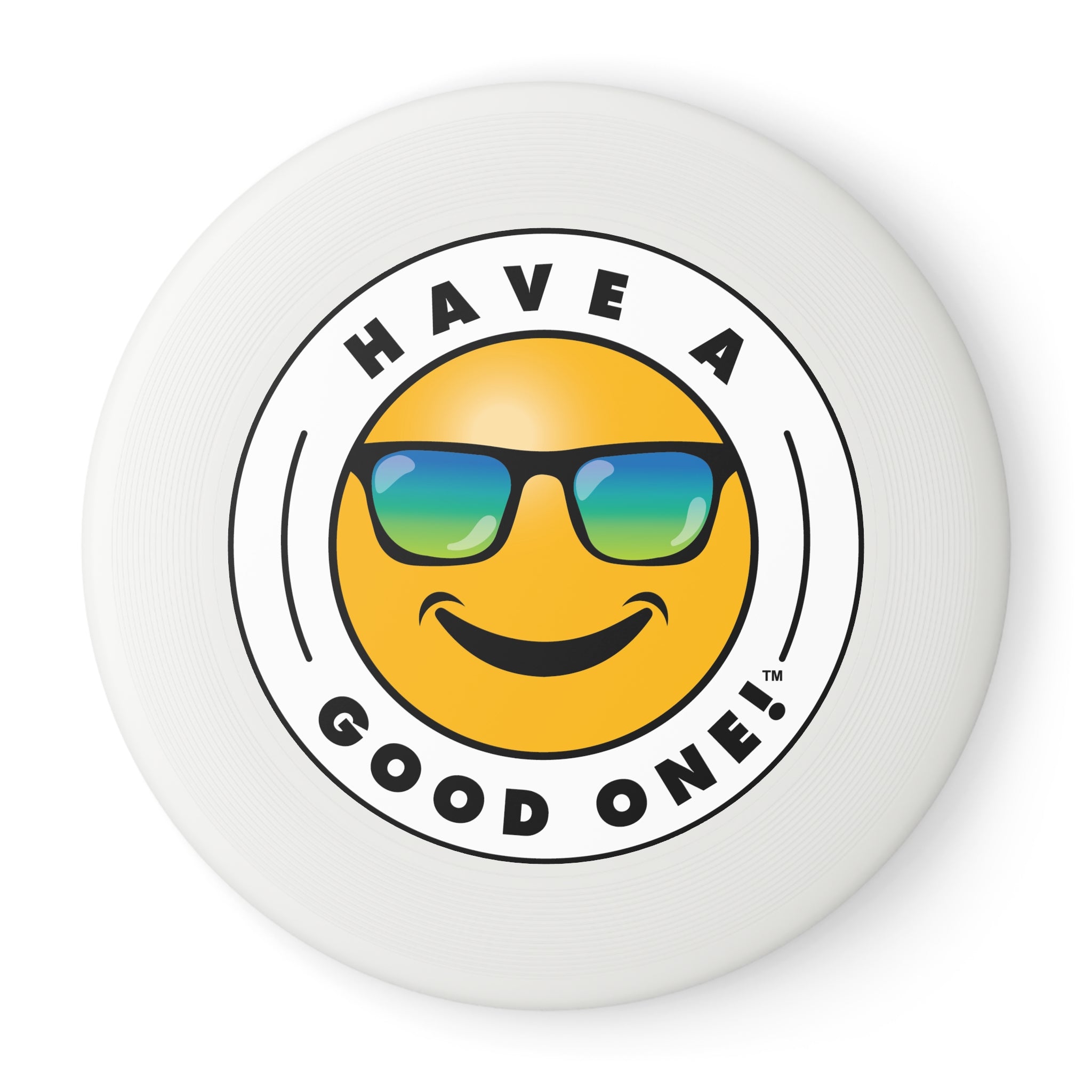 This is the iconic Wham-O frisbee with our Have A Good One! logo on it for some extra fun! Thanks to its advanced design, you can count on Wham-O's excellent performance under any weather conditions, while its floating ability makes the perfect choice for serious Ultimate Frisbee action or casual fun. Take it to the beach, the park, your yard, football games and sporting events. Playing frisbee is enjoyable for all ages and this frisbee with our Have A Good One! logo is sure to make you smile!