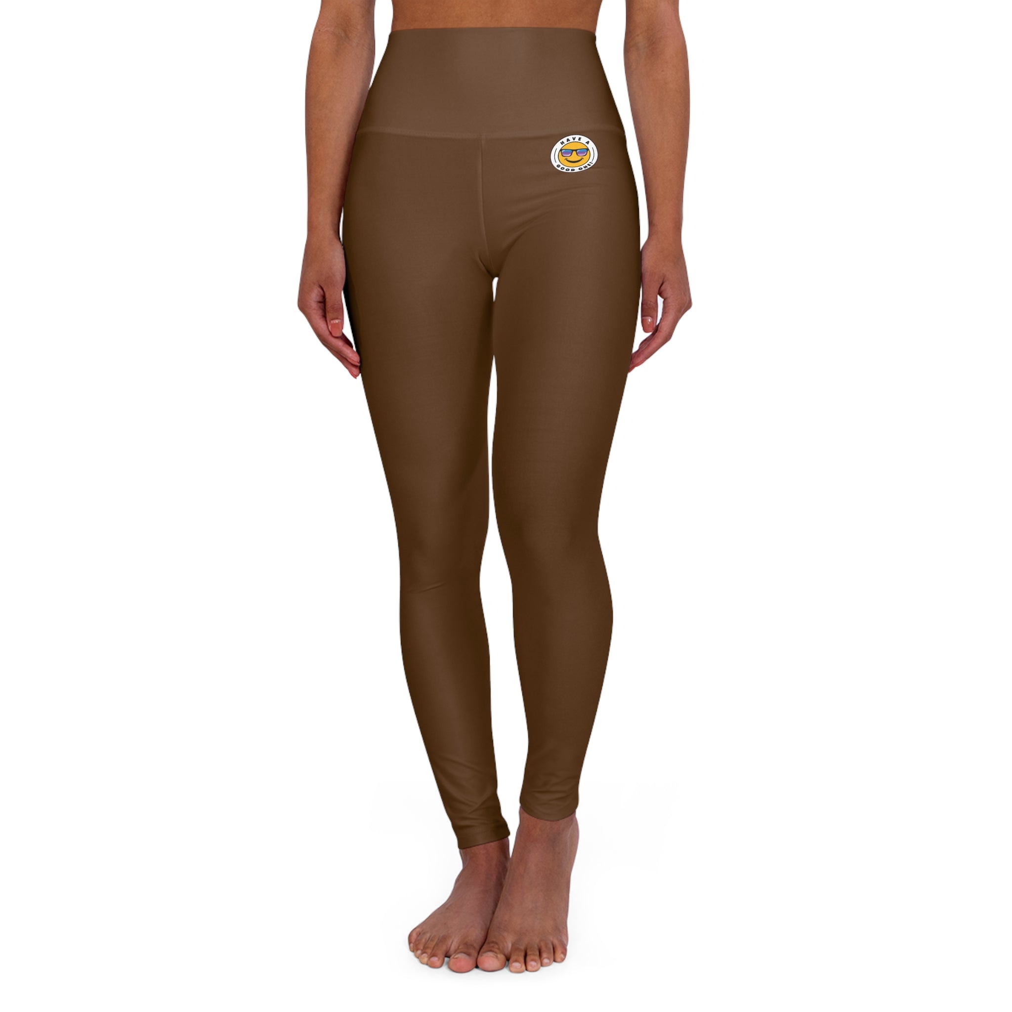 High Waisted Have A Good One! Yoga Leggings - Brown Color With Blue Purple Have A Good One Logo