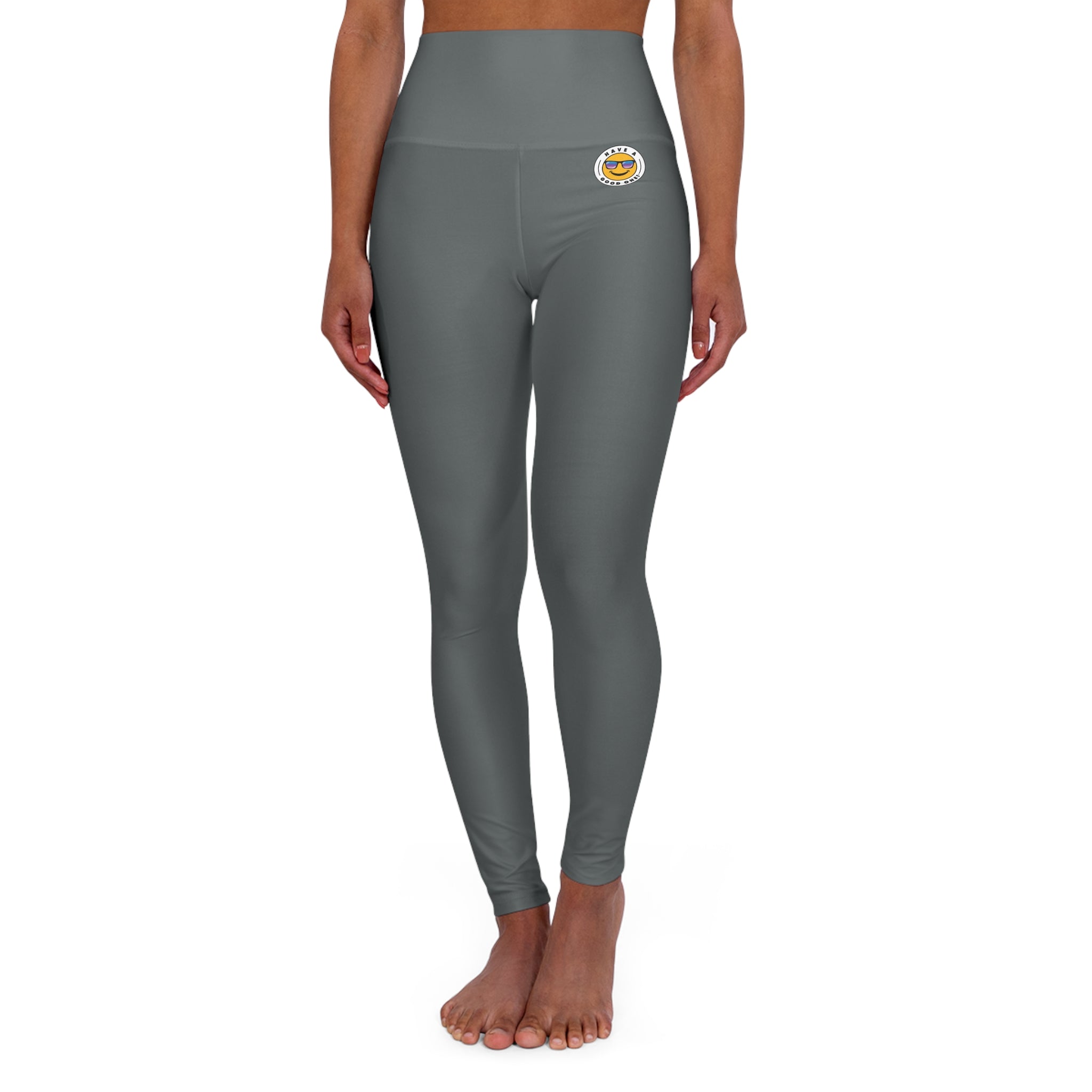 High Waisted Have A Good One! Yoga Leggings - Dark Grey Color With Blue Purple Have A Good One Logo