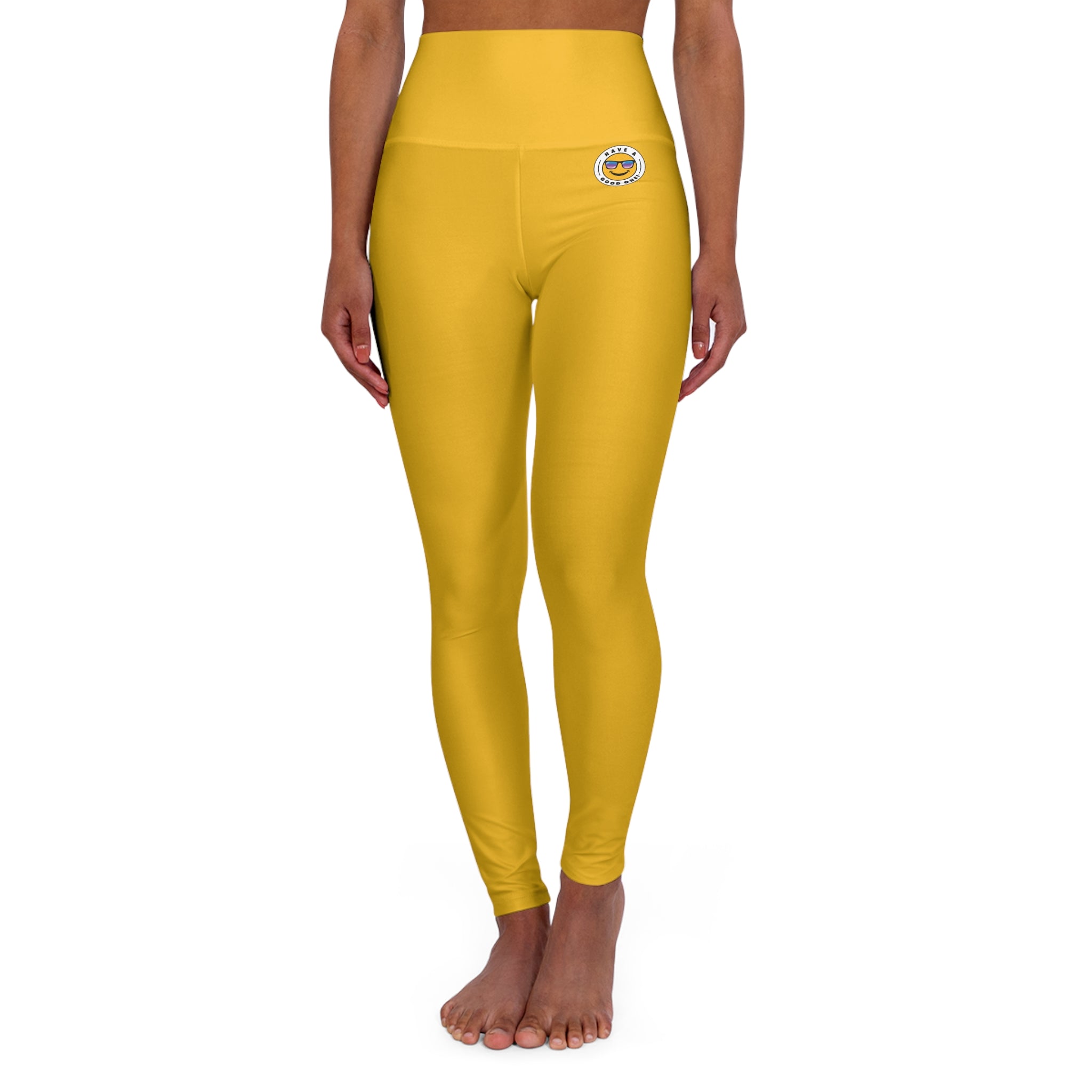 High Waisted Have A Good One! Yoga Leggings - Yellow Color With Blue Purple Have A Good One Logo